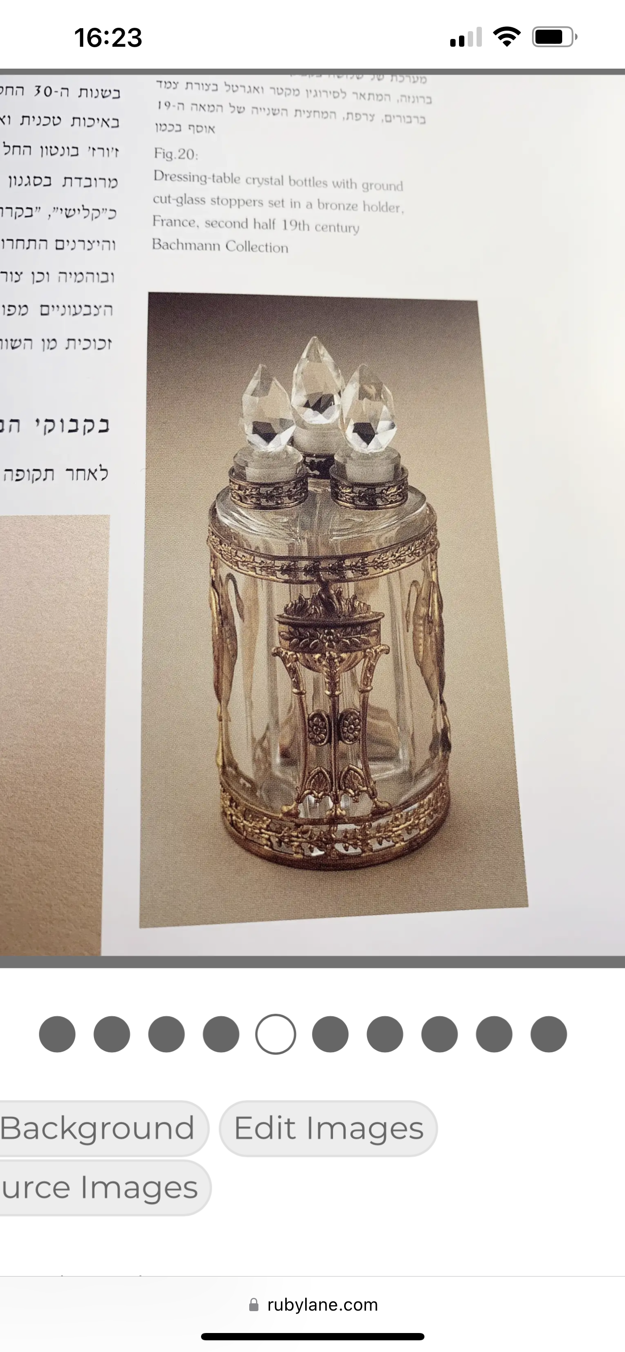 Wonderful Victorian crystal glass perfume bottles in a bronze stand. Made in France c 1870. From the Bachmann Collection, exhibited at Eretz Museum, the glass pavilion, Tel-Aviv, Israel spring 2003.