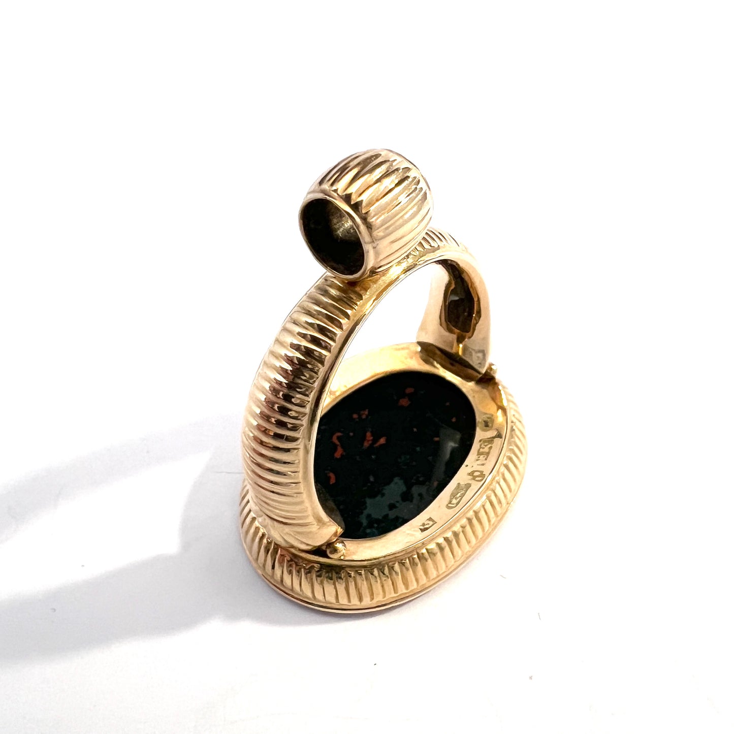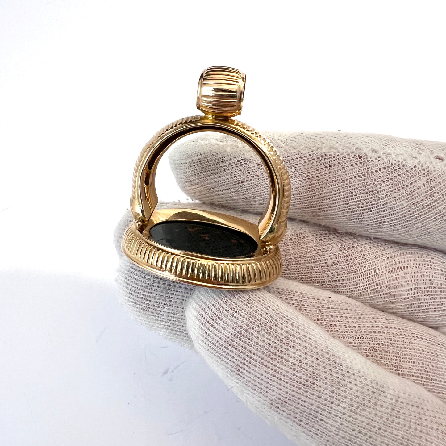 Stockholm c 1810s. Large Georgian 18k Gold Bloodstone Seal Fob Pendant. 16.7gram