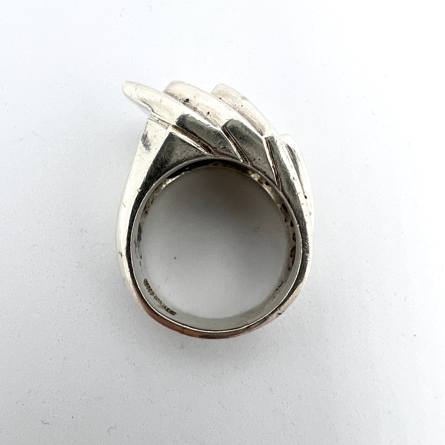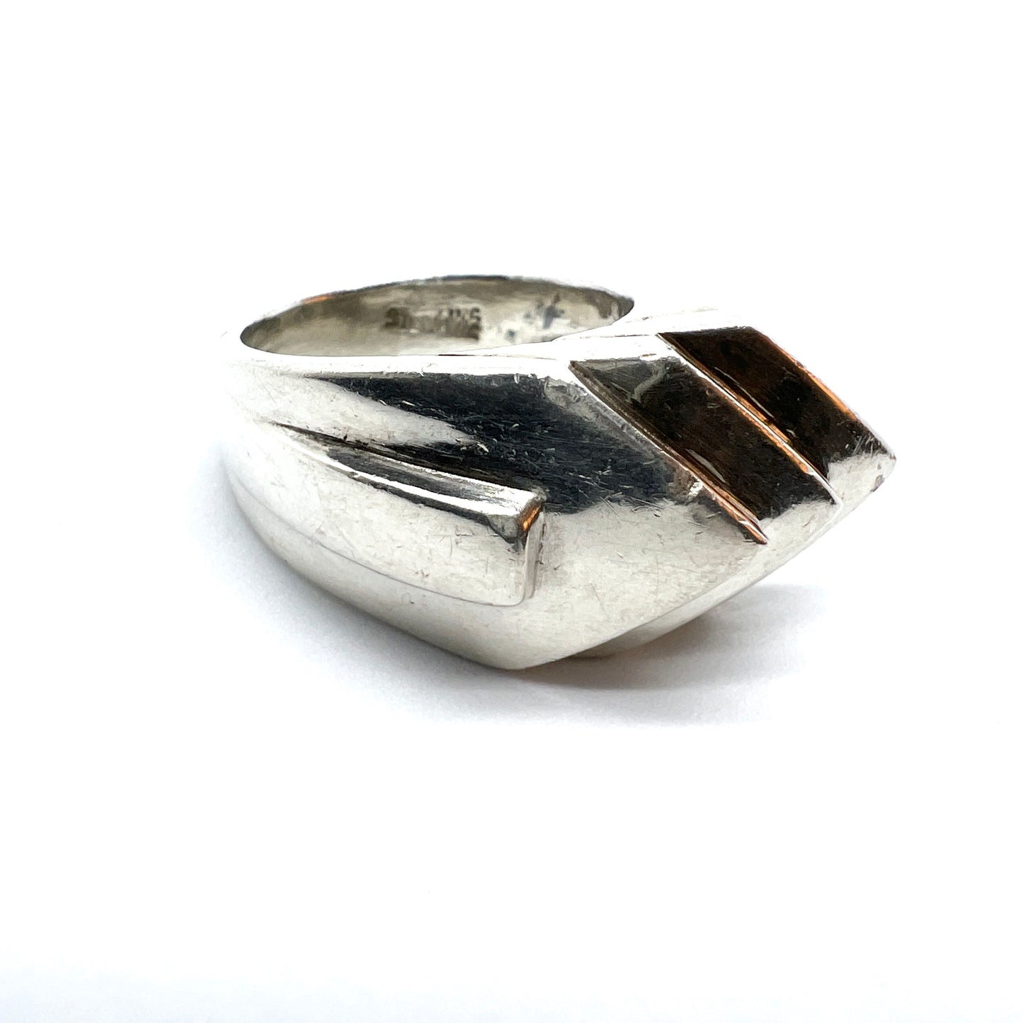 Signed VAHAN, Chunky Vintage Modernist Sterling Silver Ring.