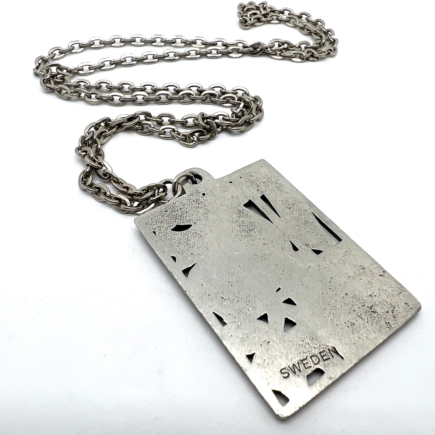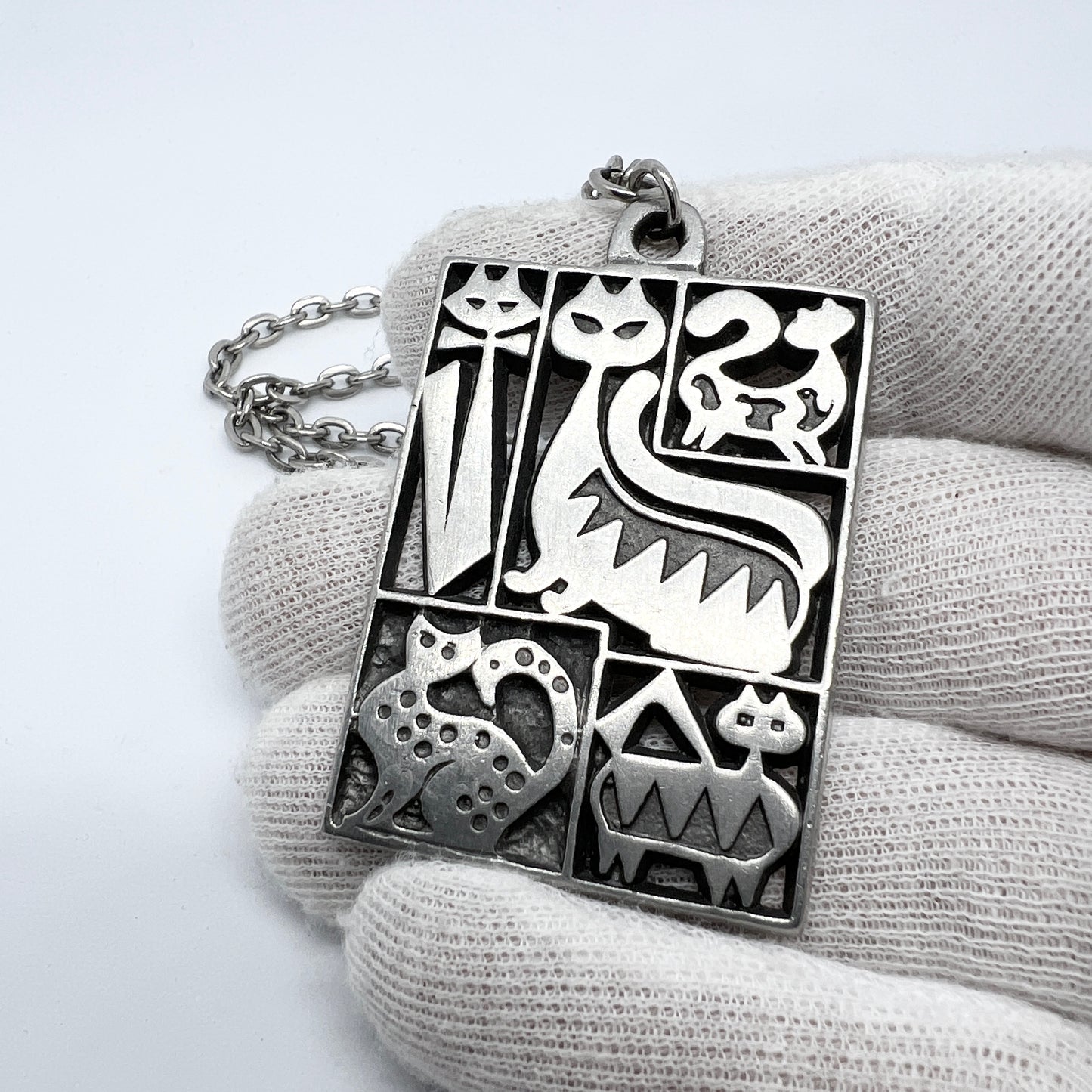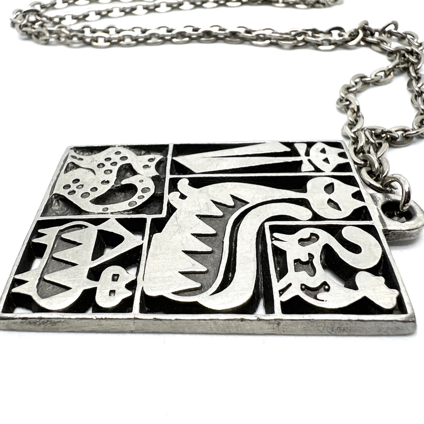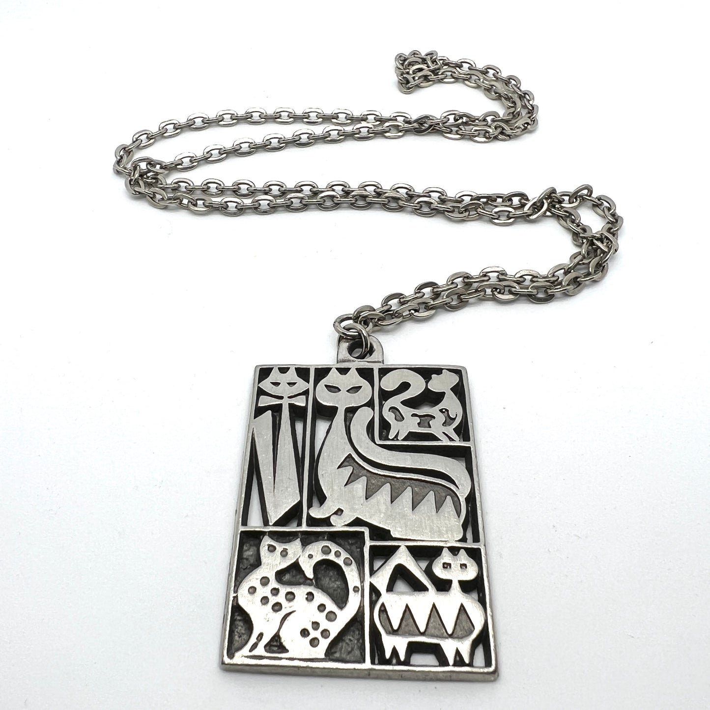 Sweden 1960-70s. Chunky Pewter Cats Pendant Necklace.