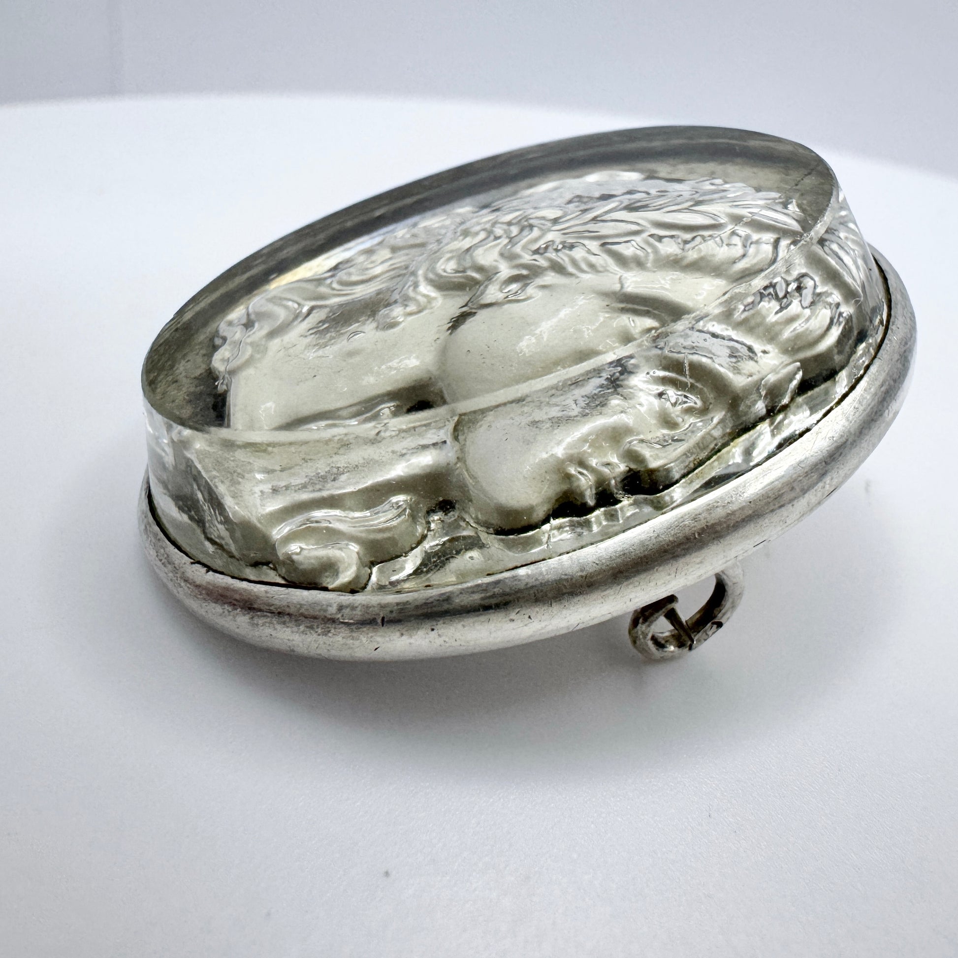 Wonderful and very rare antique solid silver reversed carved glass portrait brooch. Hallmarked for Anna Östergren, Sweden 1911.