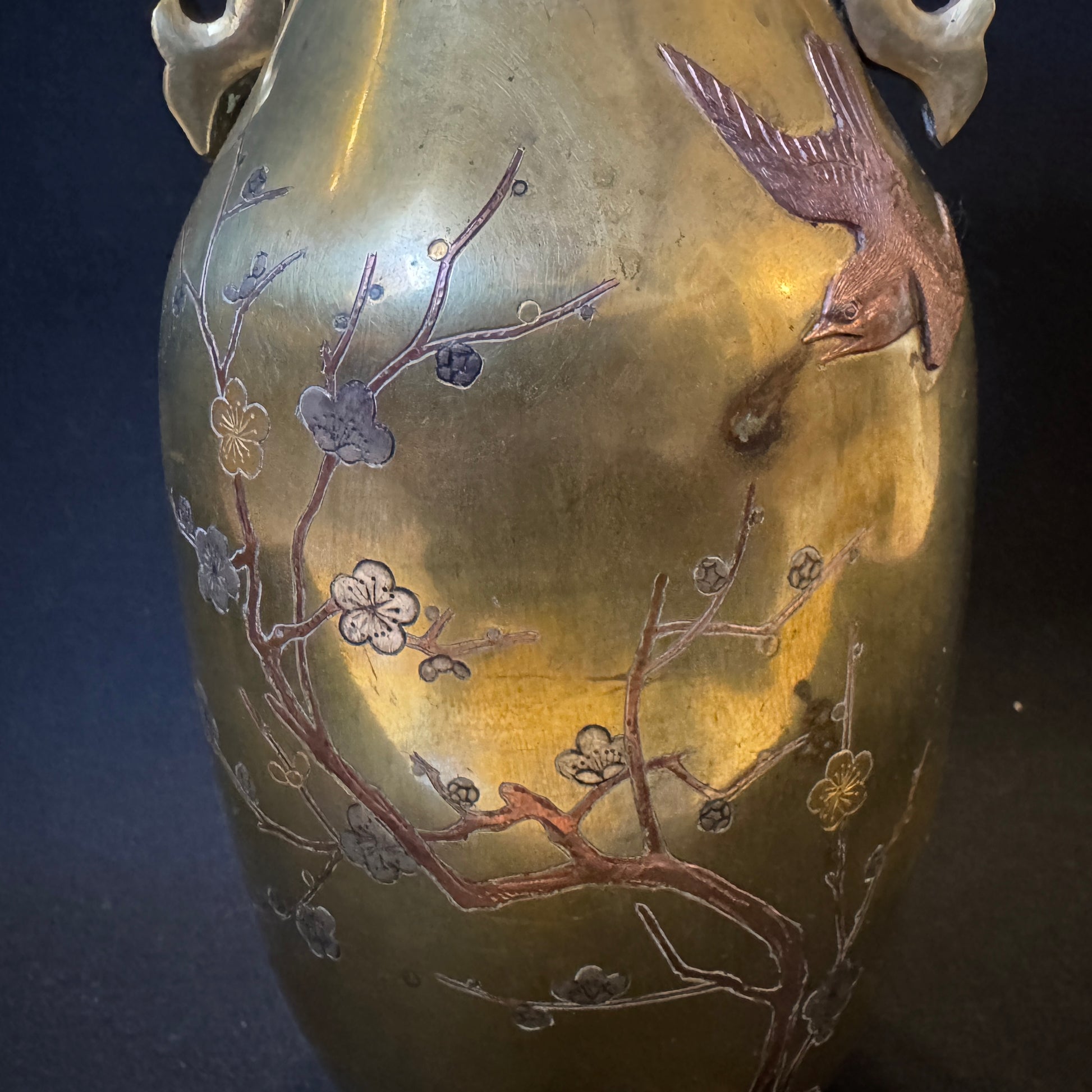 Antique early 1900s Japanese Meiji Mixed Metal Bronze Large Vase.