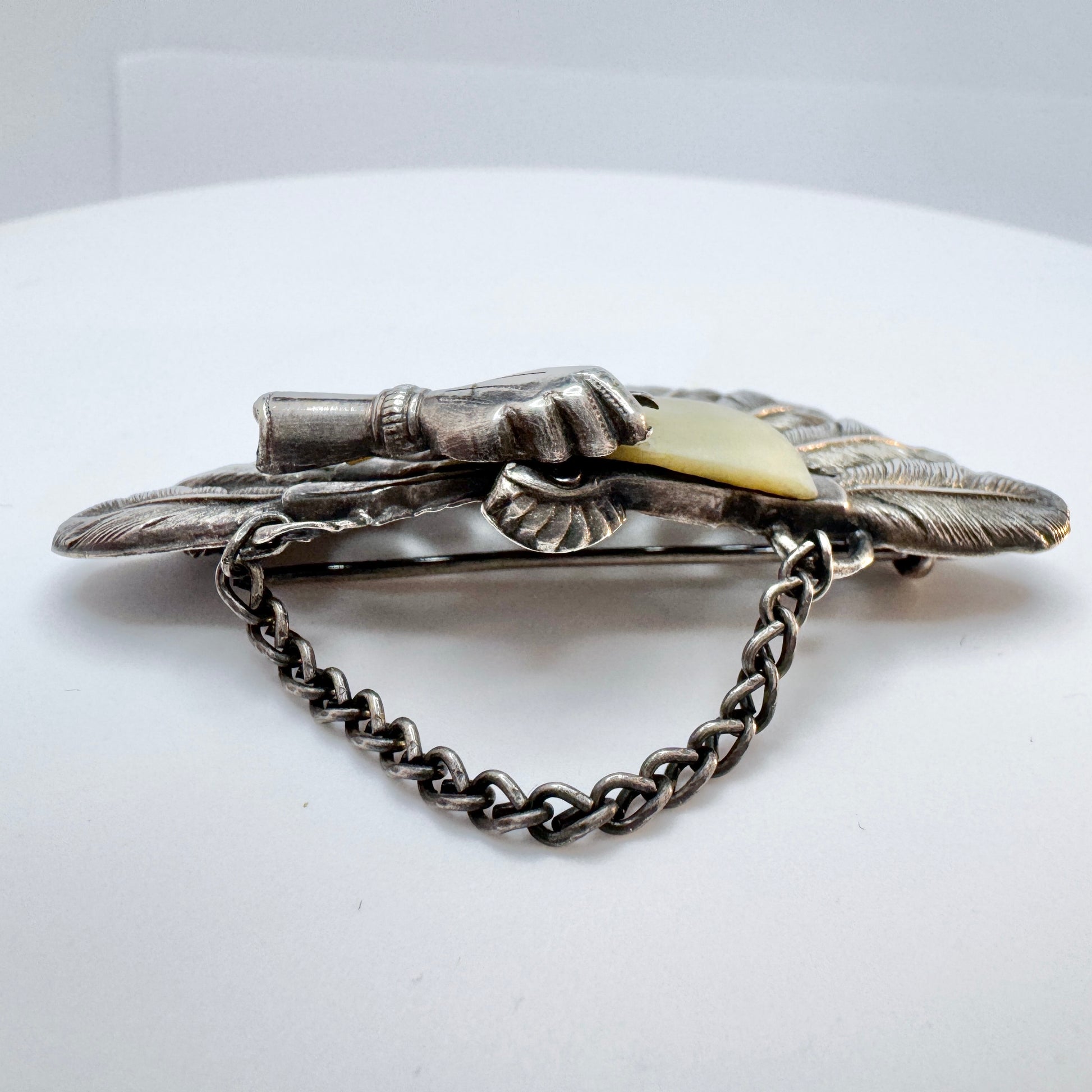 Antique Victorian Solid Silver MoP Fan Brooch.
