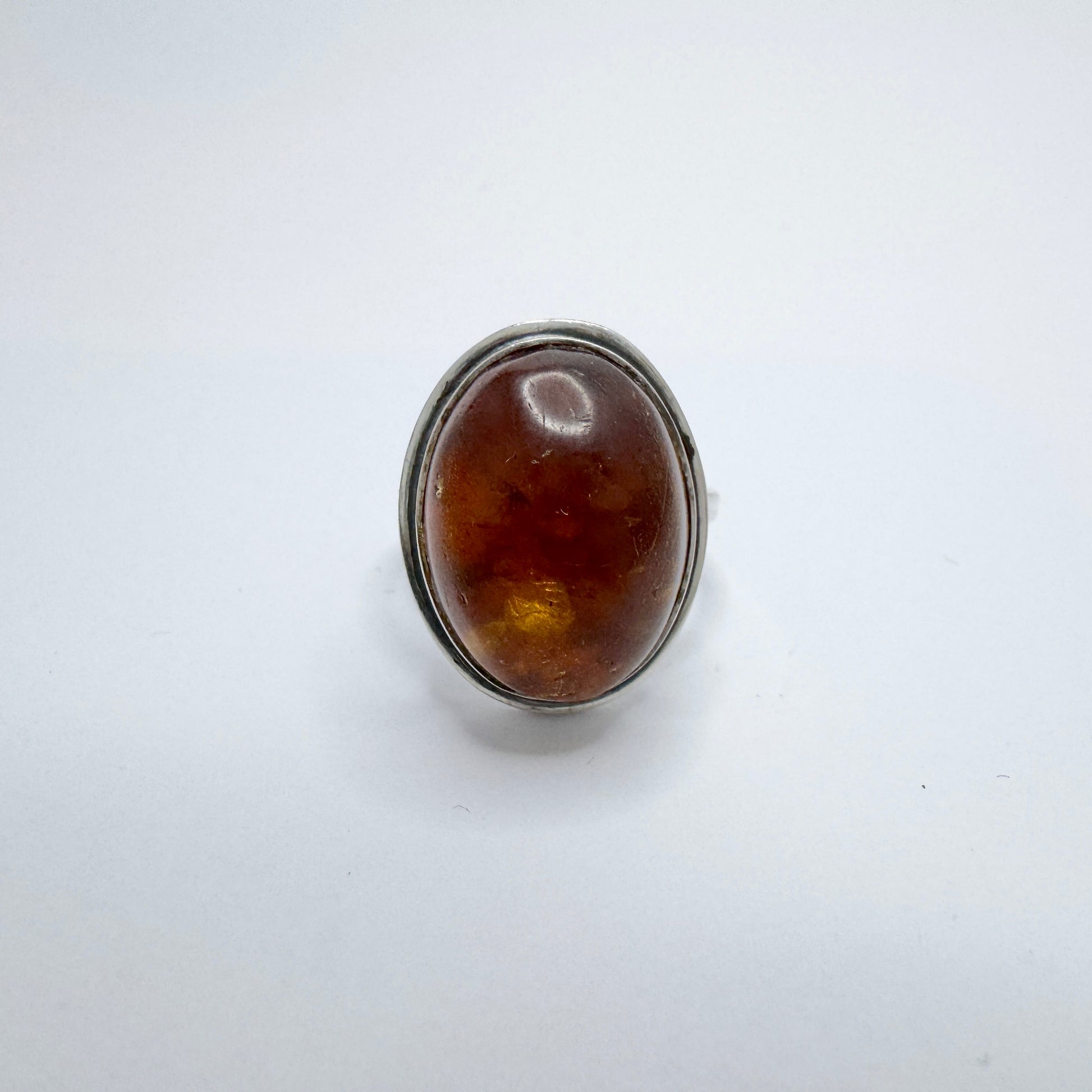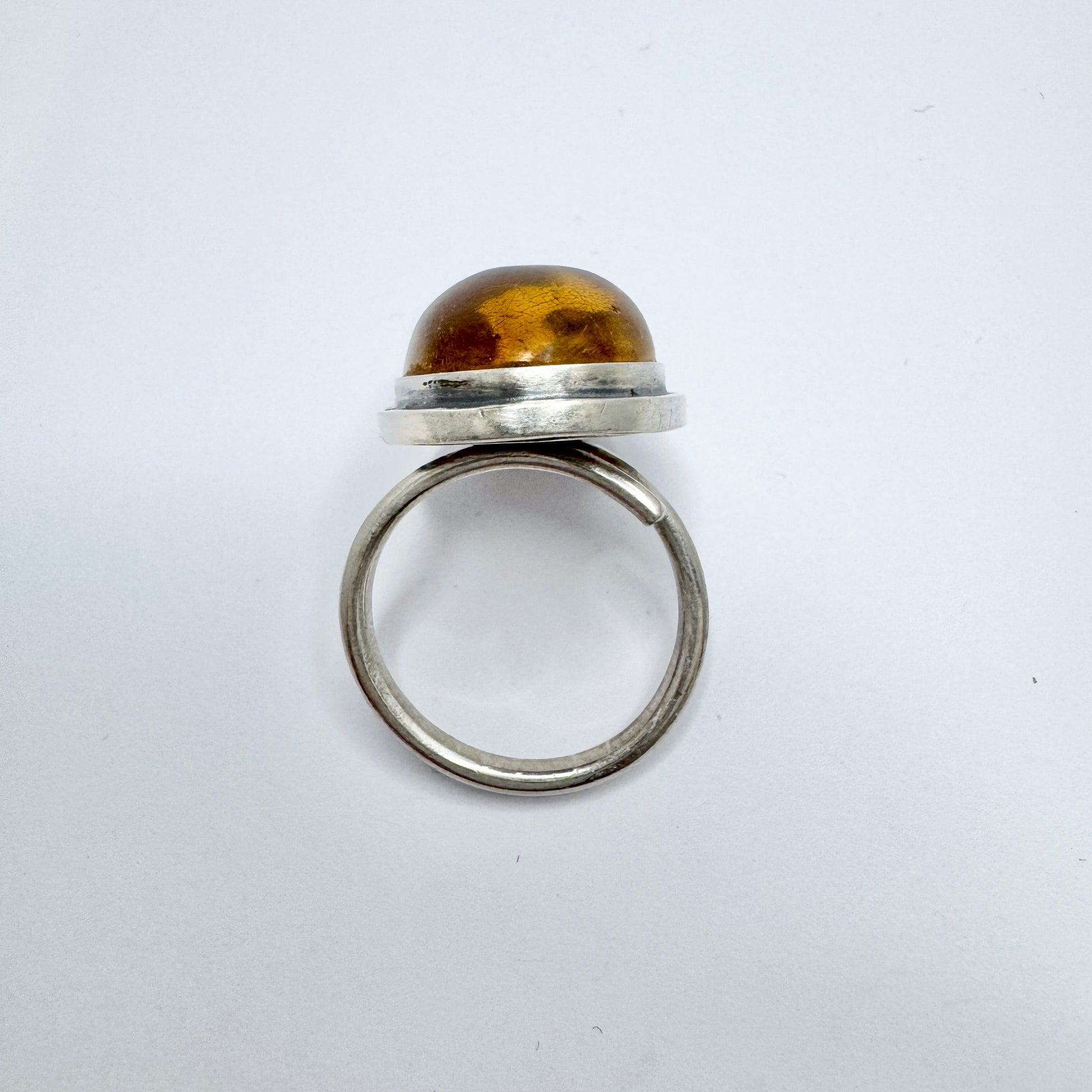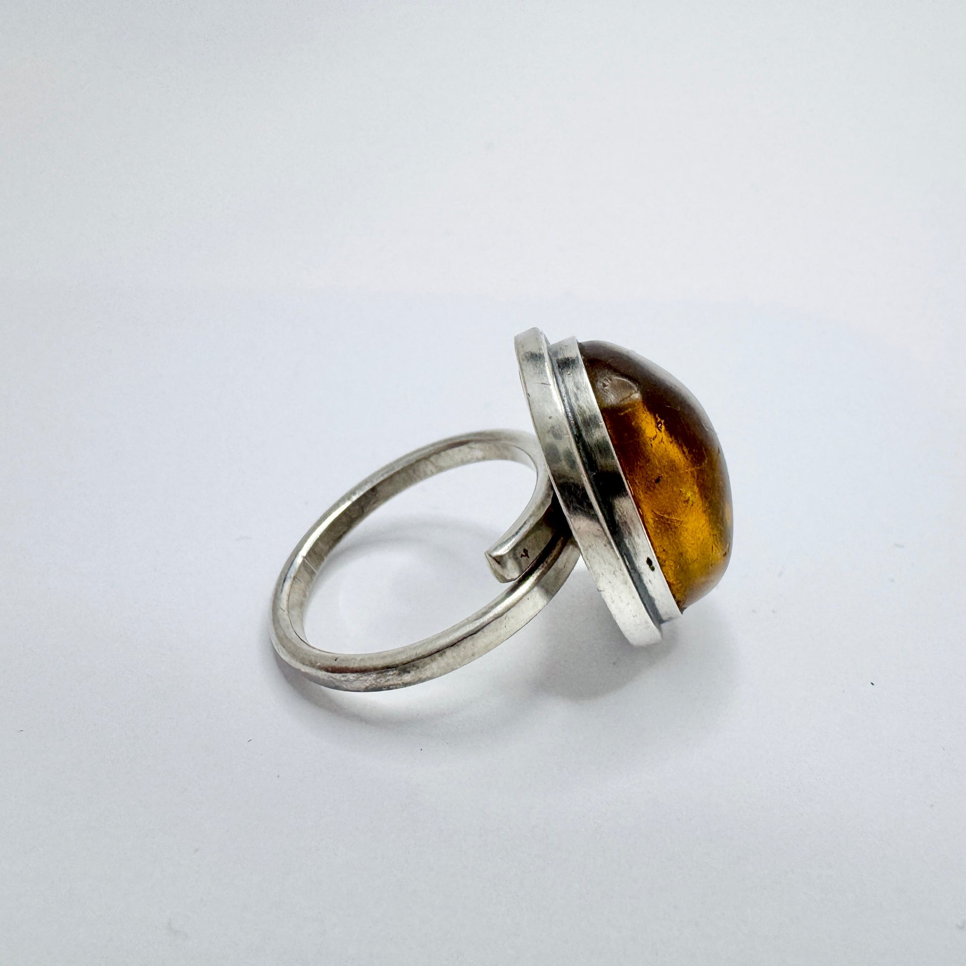 CGH Sørensen, Denmark ca 1970. Vintage Sterling Silver Amber Ring.