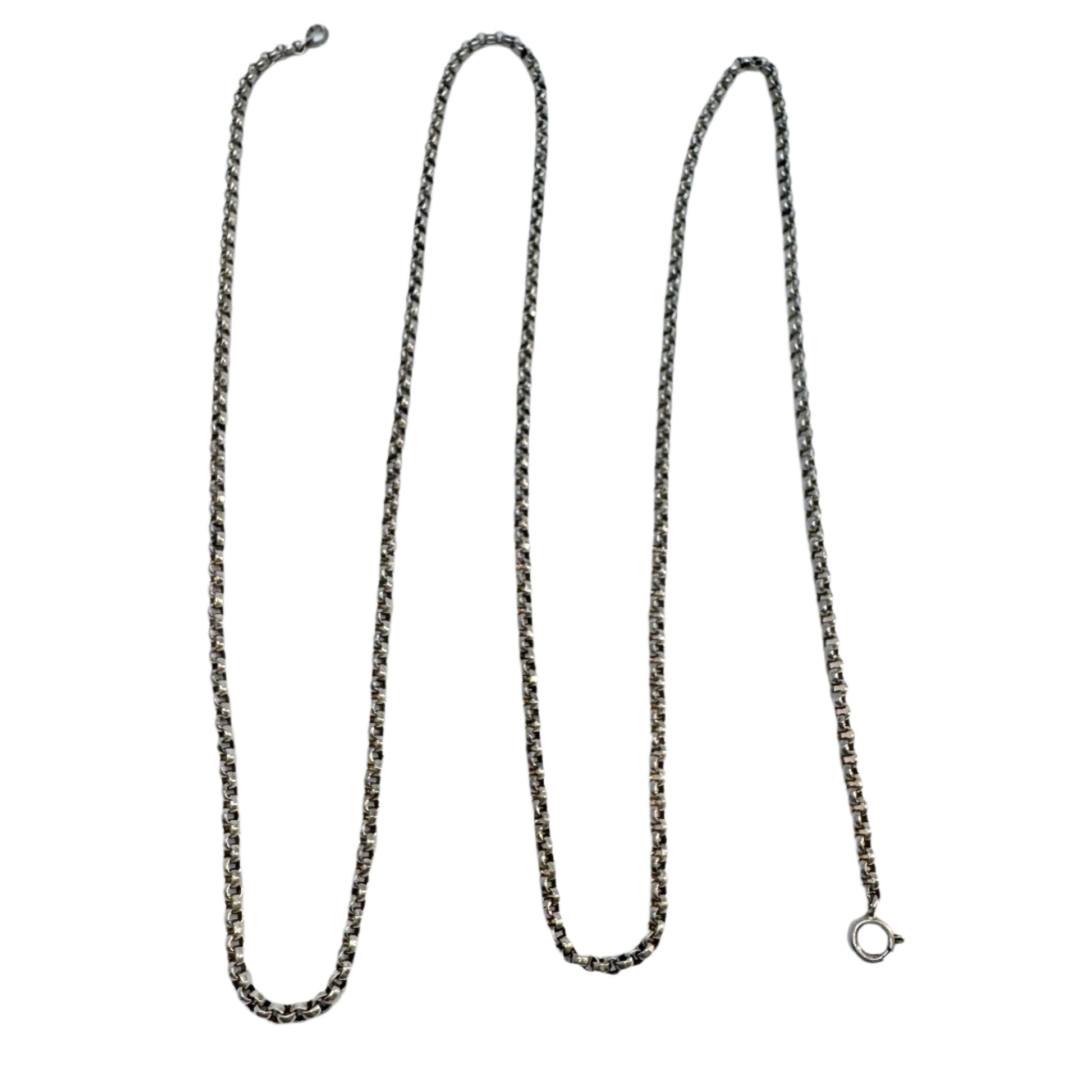 Denmark c 1920-30s. Vintage Solid Silver 35inch Belcher Chain Necklace.