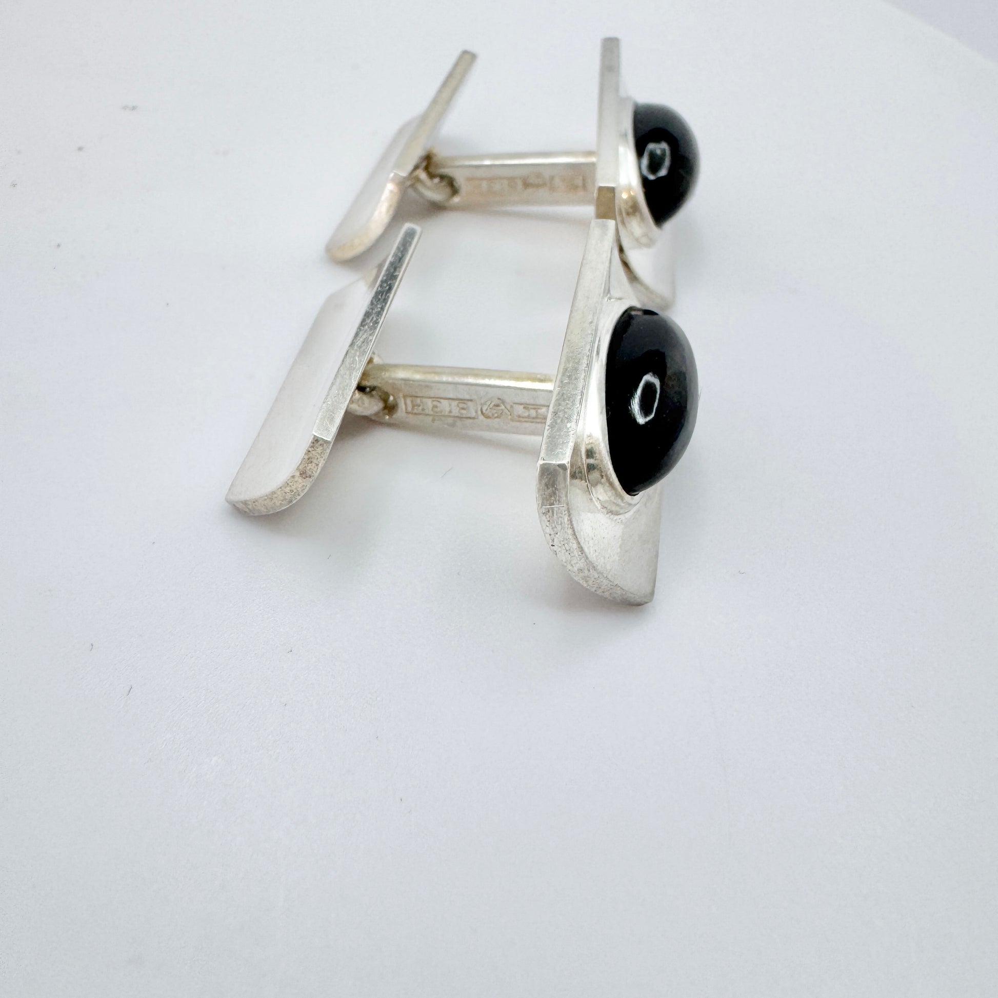 Elis Kauppi, Kupittaan Kulta Finland 1965. Vintage Solid Silver Obsidian Cufflinks