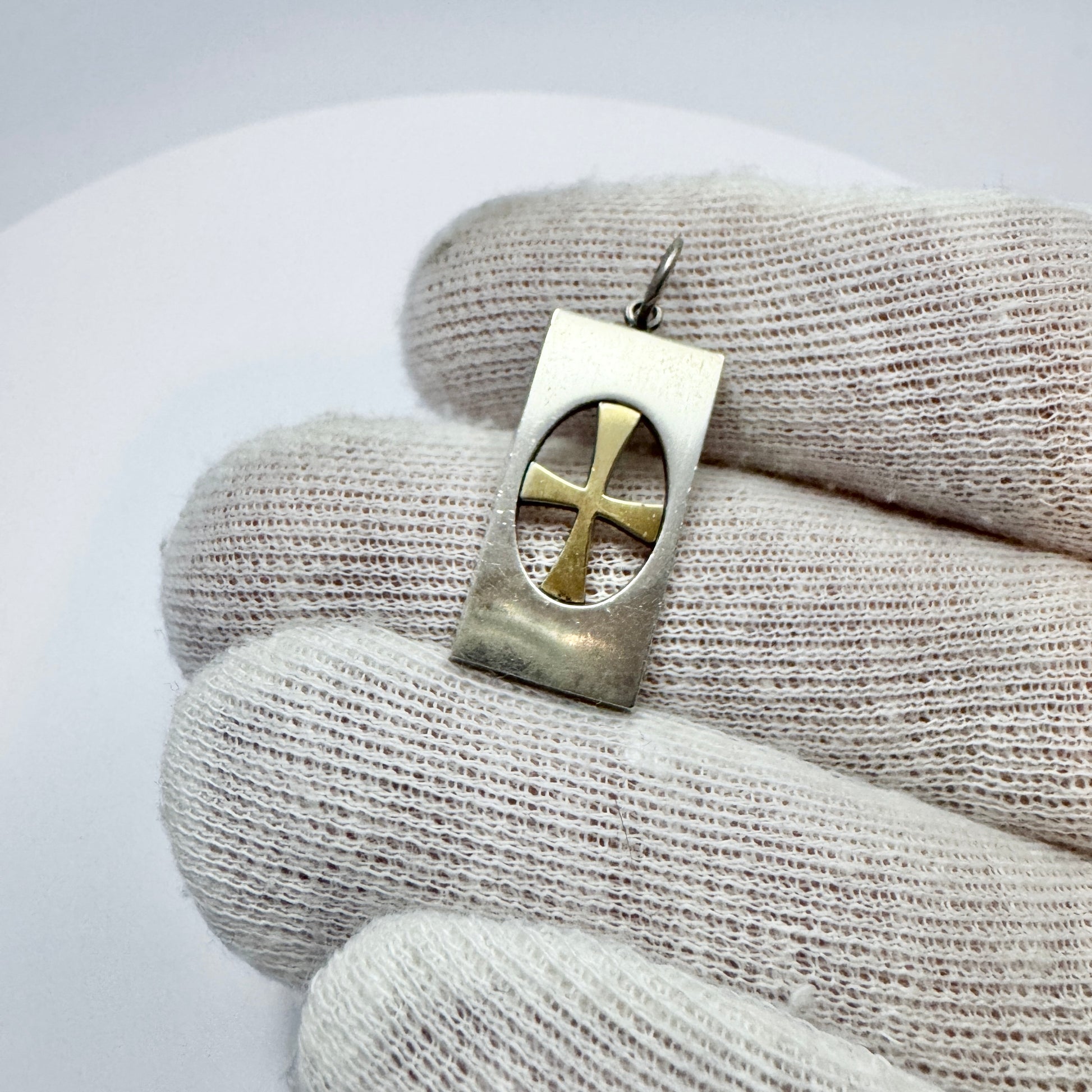 Charming vintage solid silver (partly gold gilt) cross pendant. Hallmarked for Elis Kauppi, Kupittaan Kulta Finland.