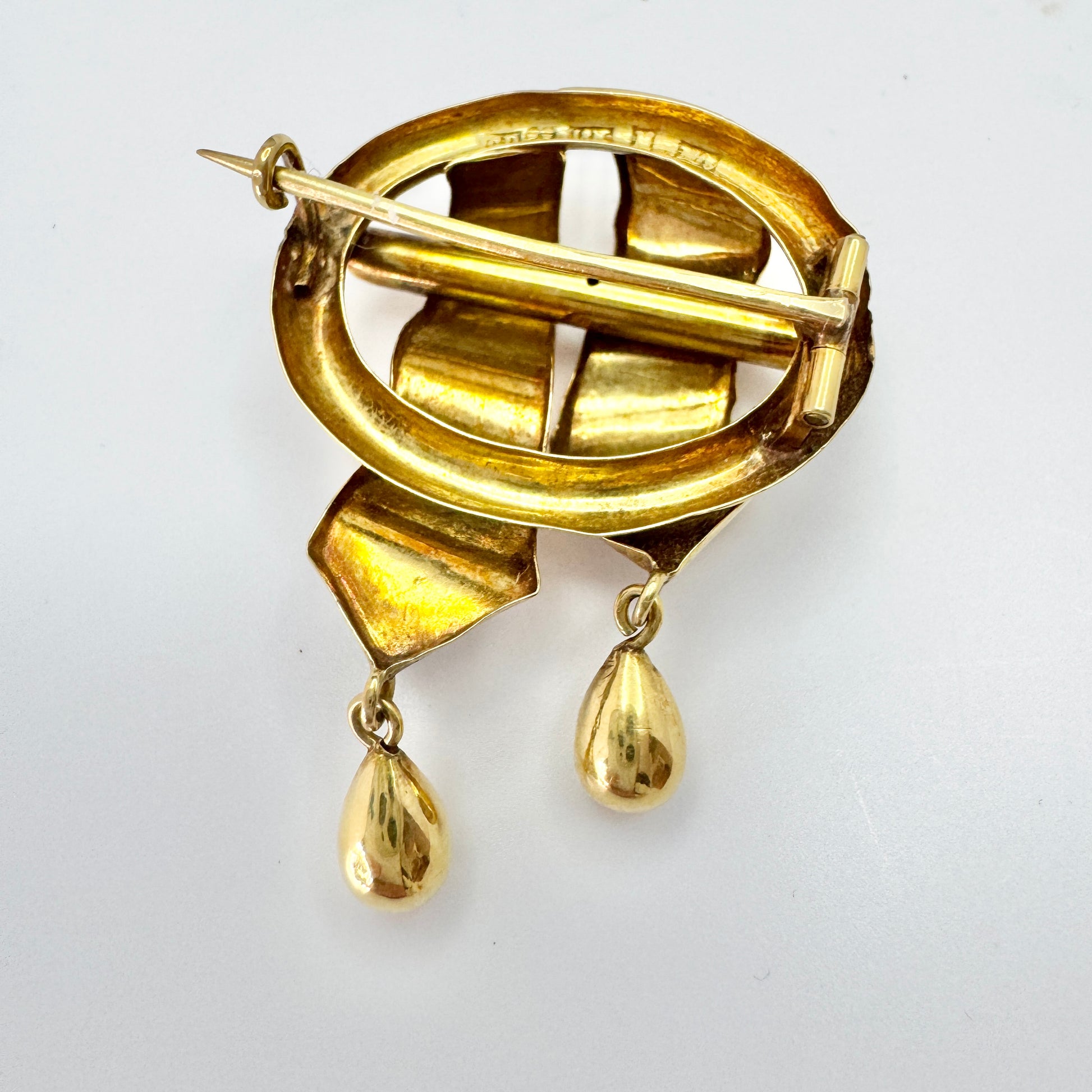Wonderful and rare antique 18k gold brooch. Fully hallmarked for 18k gold, G Dahlgren, Sweden year 1866.