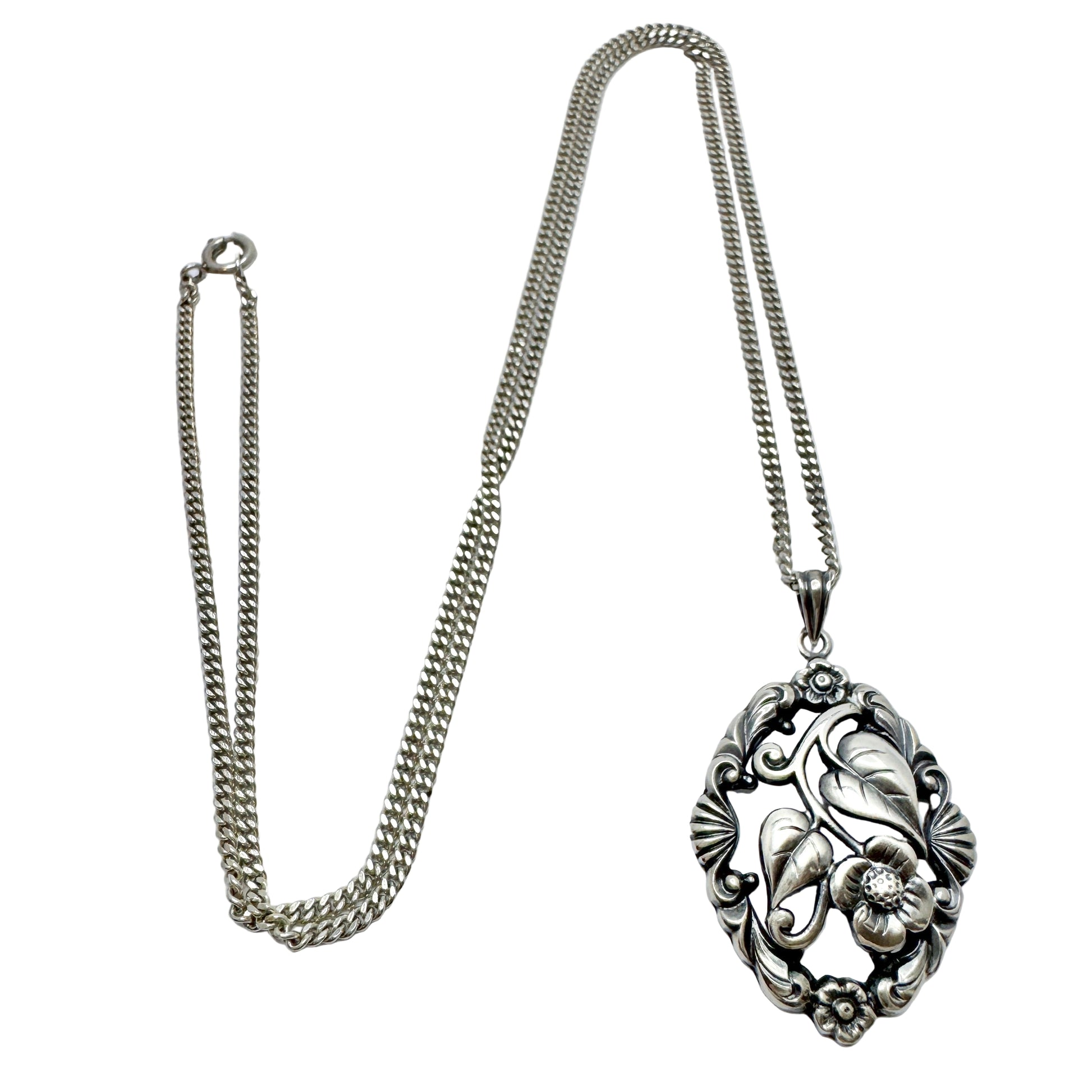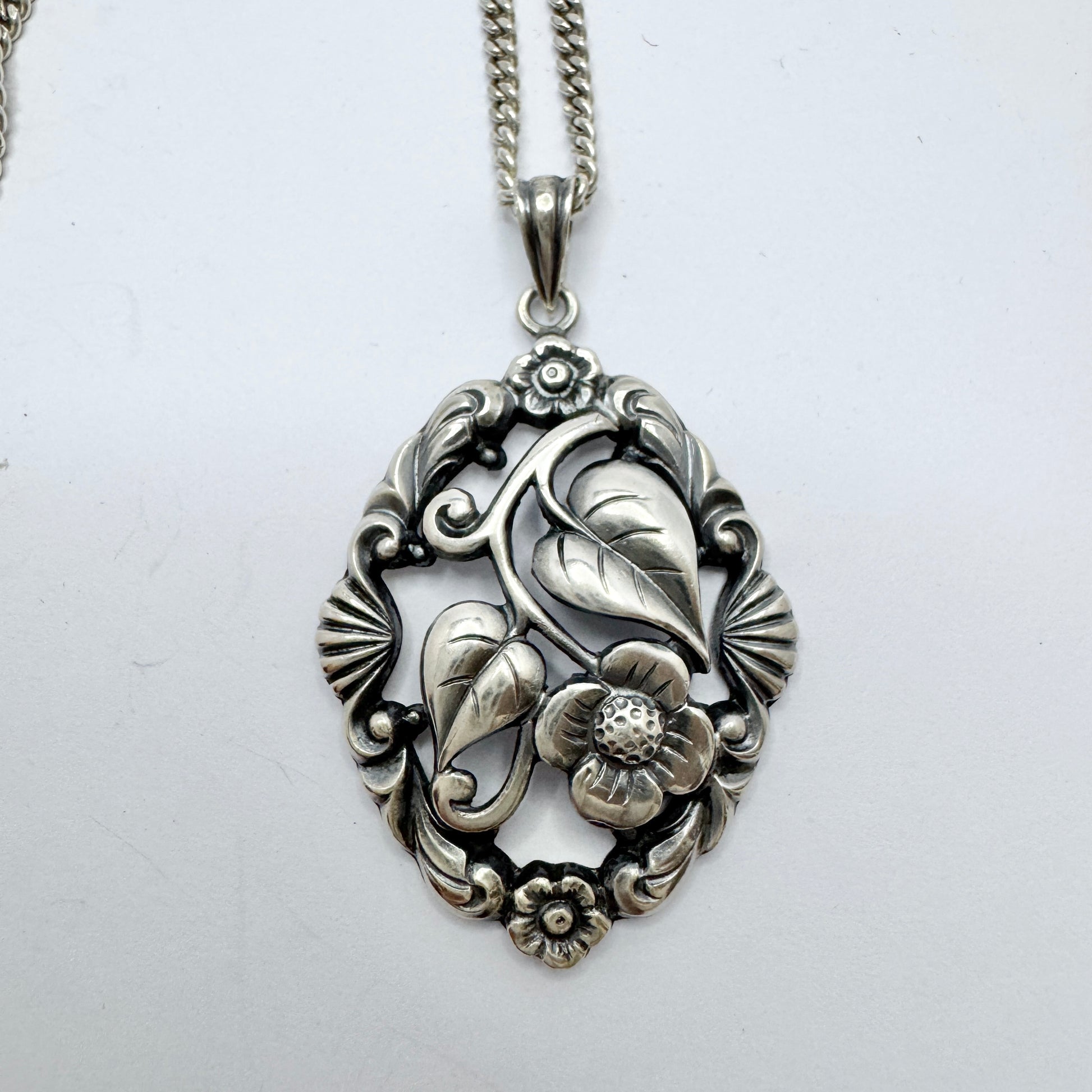 Beautiful vintage sterling silver floral pendant necklace. Hallmarked for G Dahlgren, Sweden year 1947.