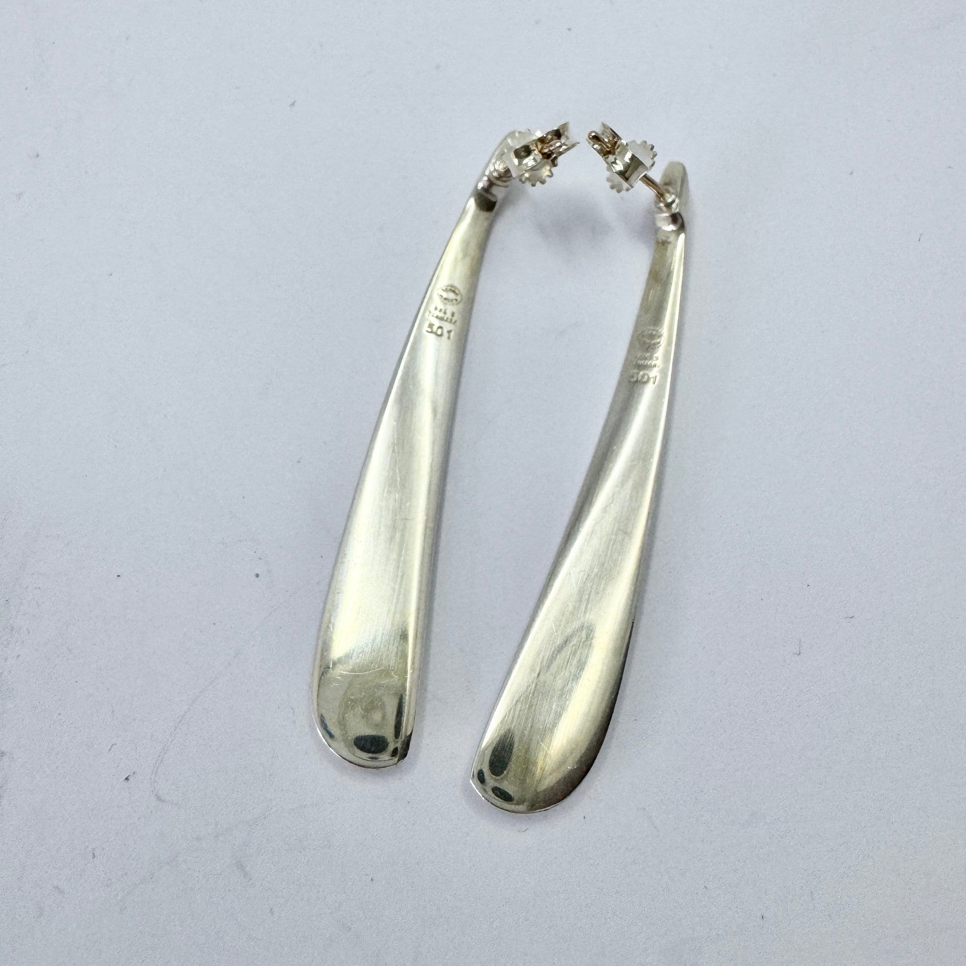 Wonderful vintage sterling silver designer earrings. Hallmarked for Georg Jensen, Denmark. Design #501 by renowned Regitze Overgaard.