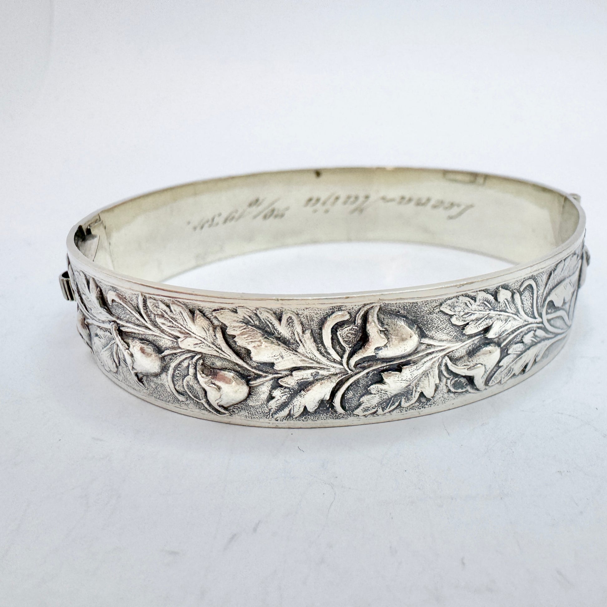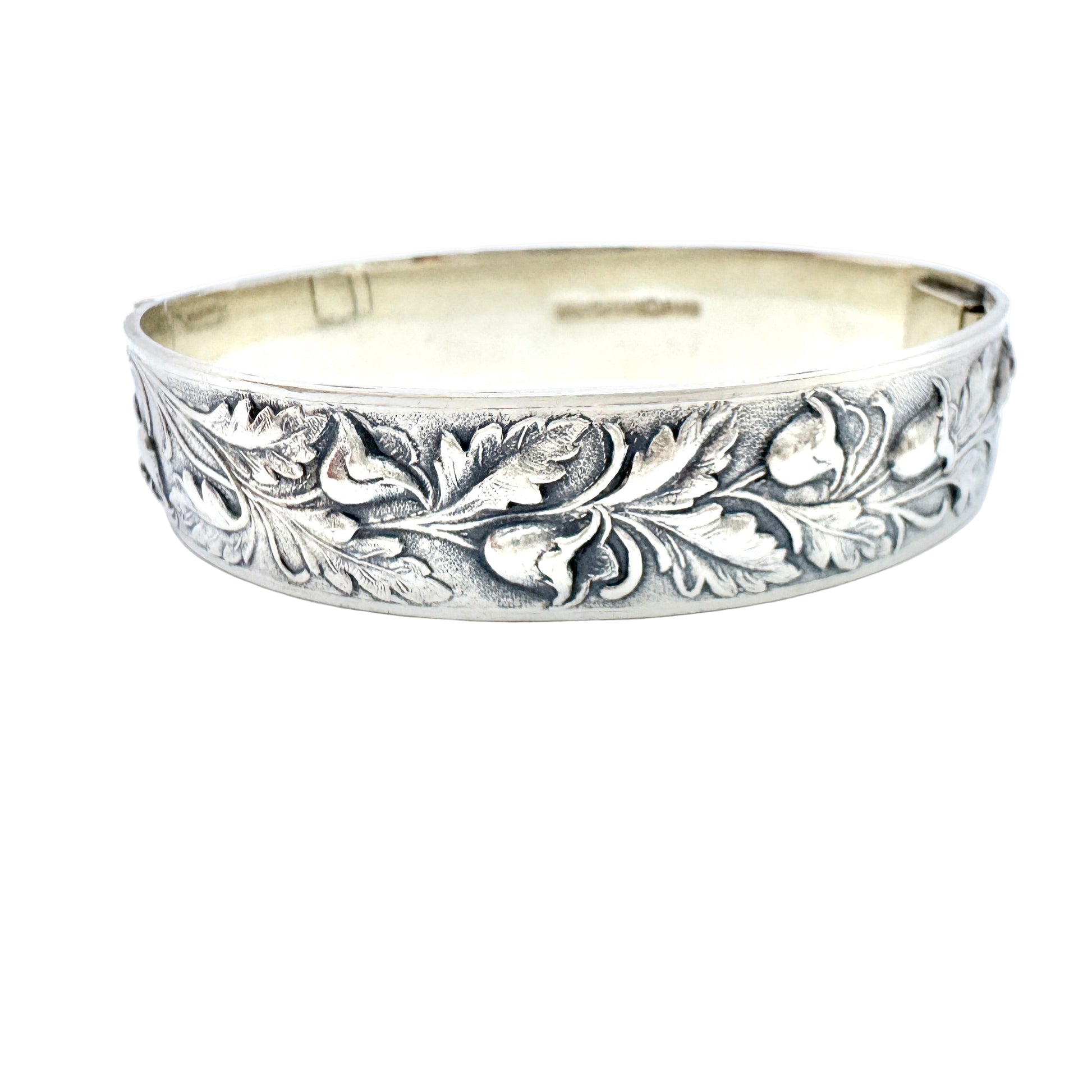 Herman Wist, Finland 1934. Vintage Solid Silver Floral Hinged Bangle Bracelet.