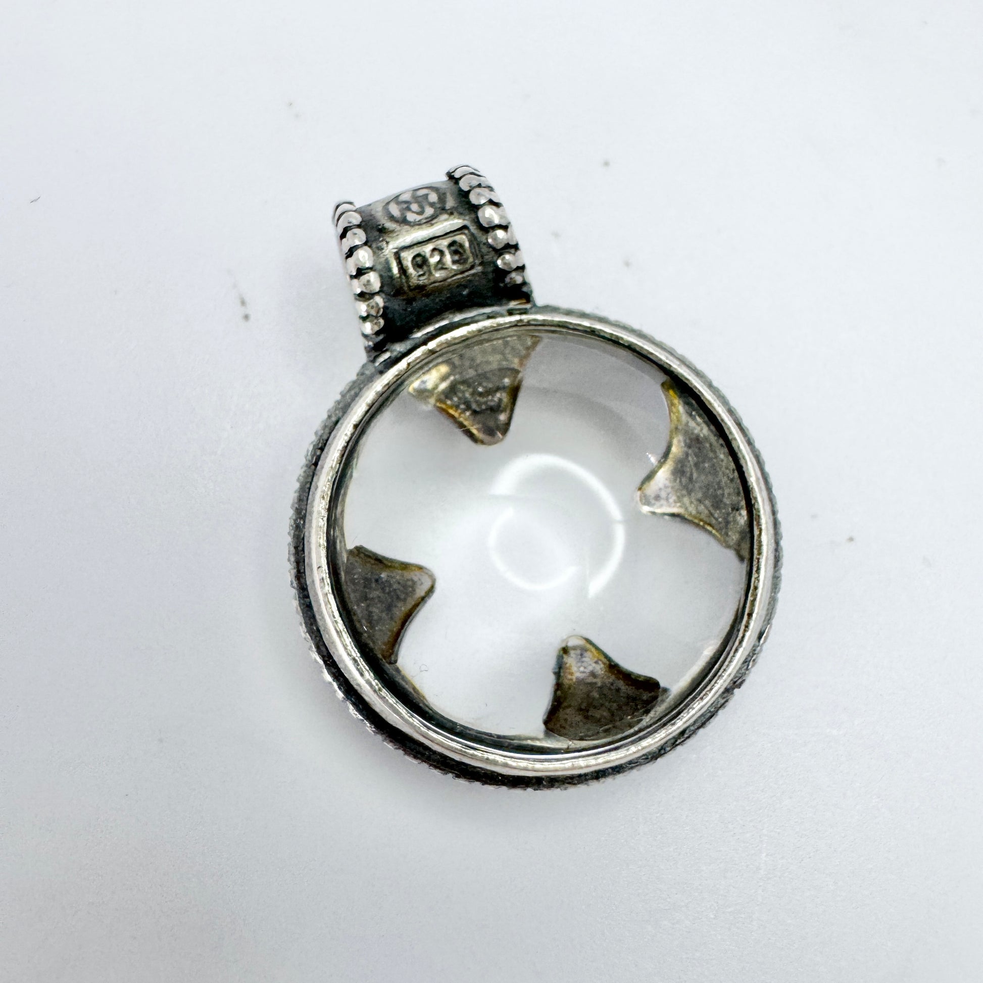 Kalevala Koru, Finland. Vintage Viking Copy Sterling Silver Rock Crystal Pendant.