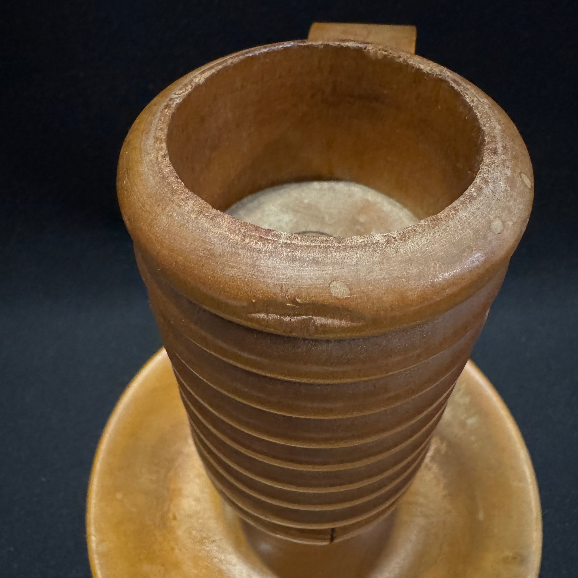 Charming and large vintage wood chamberstick. Scandinavia ca 1950-60s