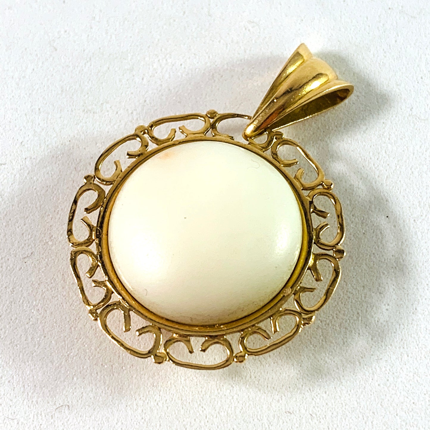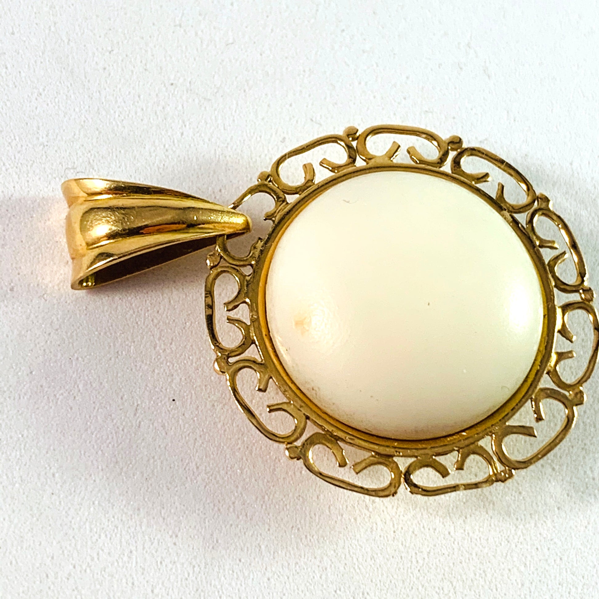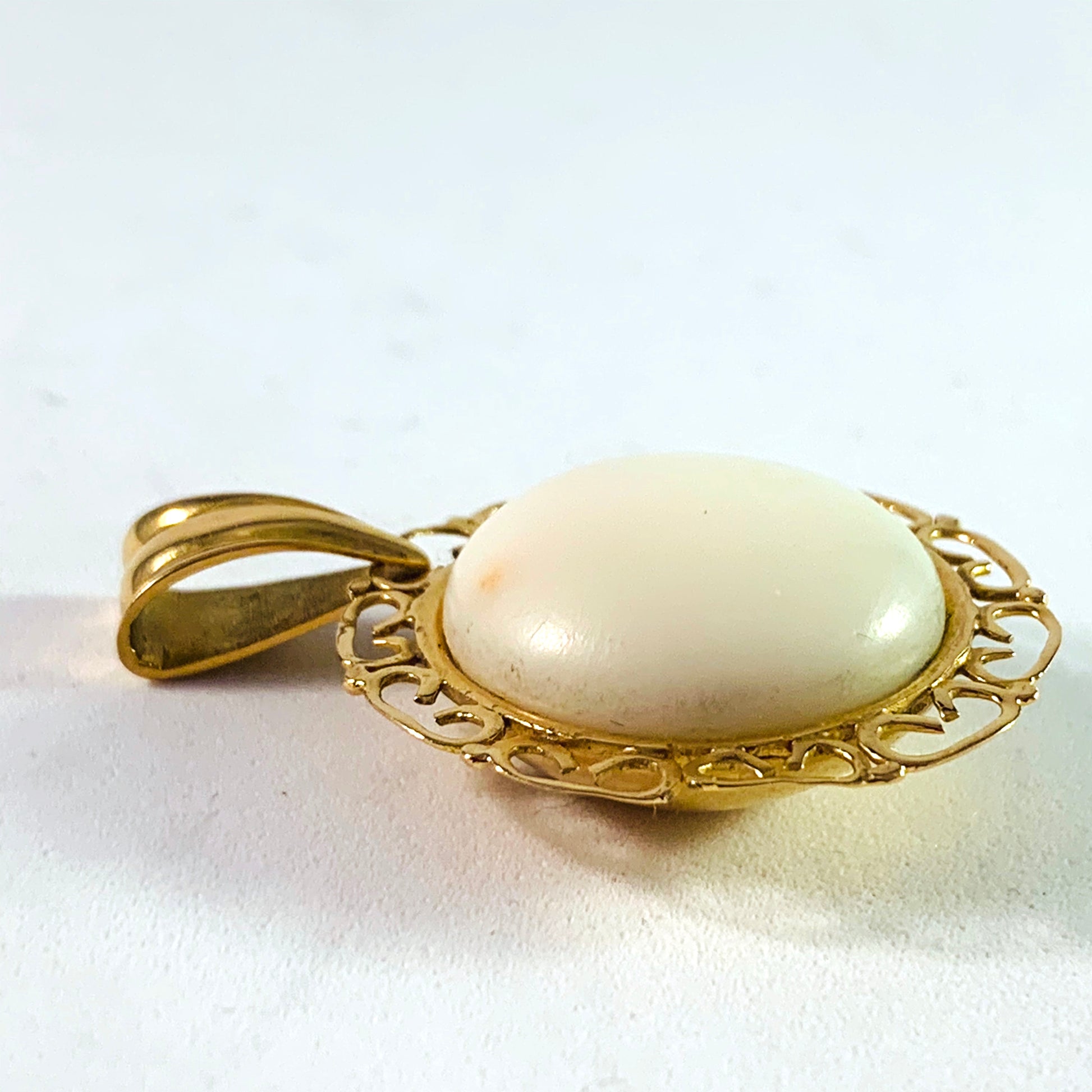 Mid Century 18k Gold White Angel Skin Coral Pendant.