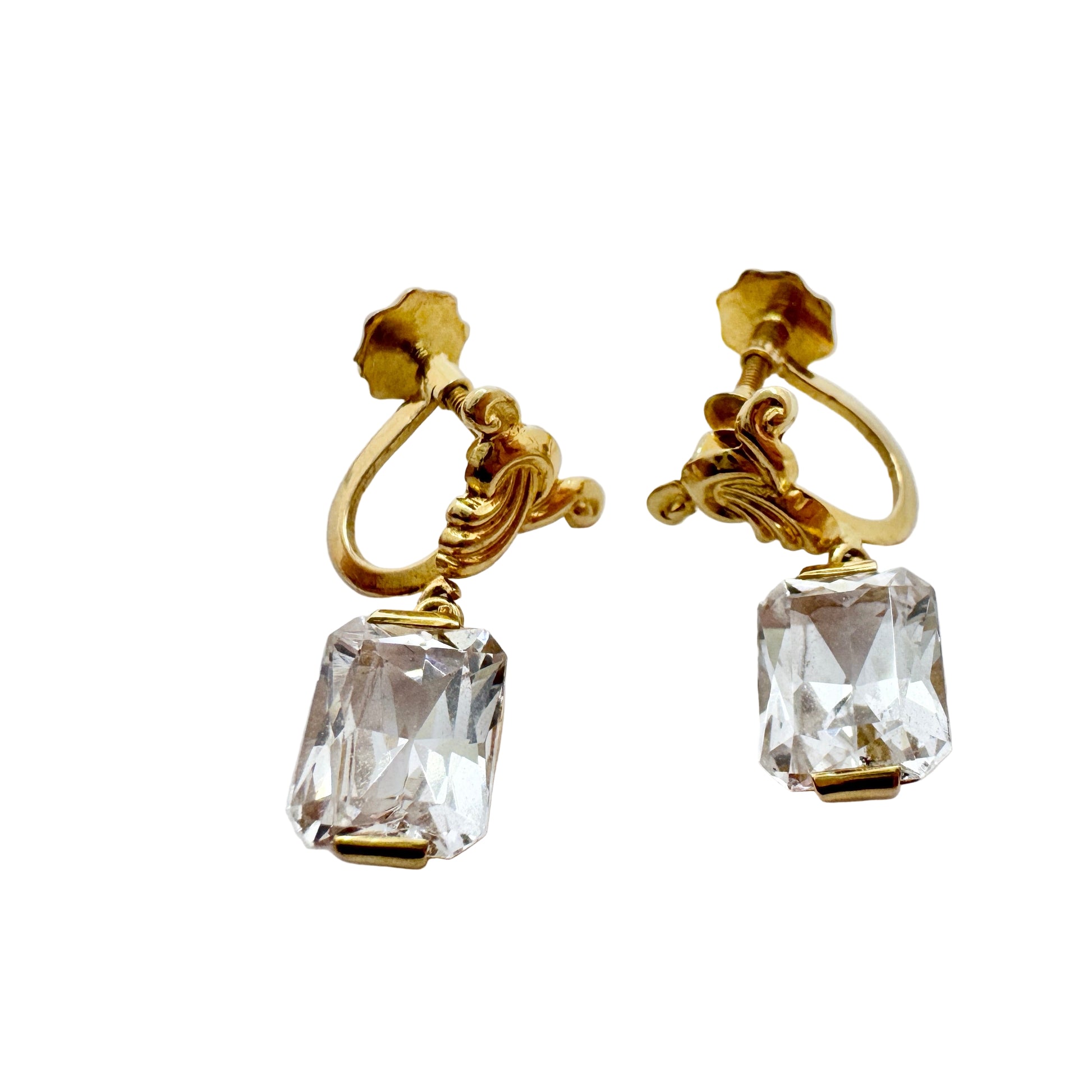 Wonderful vintage mid-century 18k gold rock crystal pair for earrings. Hallmarked for Oscar Waleby, Stockholm, Sweden year 1953.
