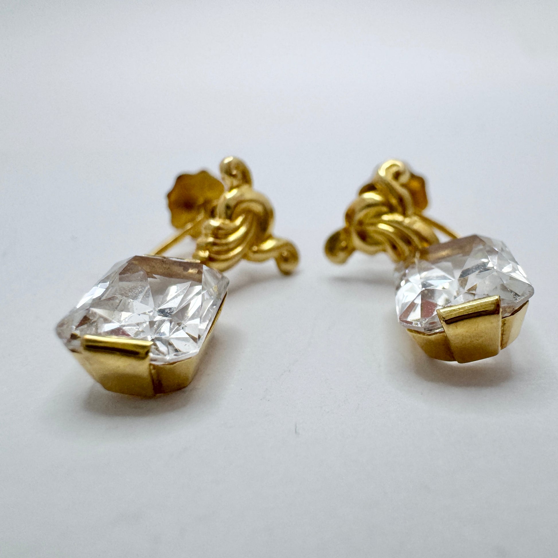 Oscar Waleby, Sweden 1953. Vintage 18k Gold Rock Crystal Earrings.