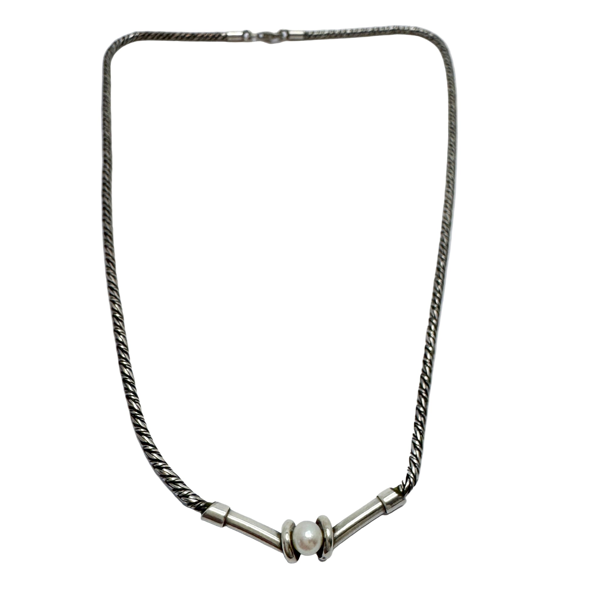 Beautiful vintage sterling silver cultured pearl necklace. Hallmarked for Rauff, Denmark.