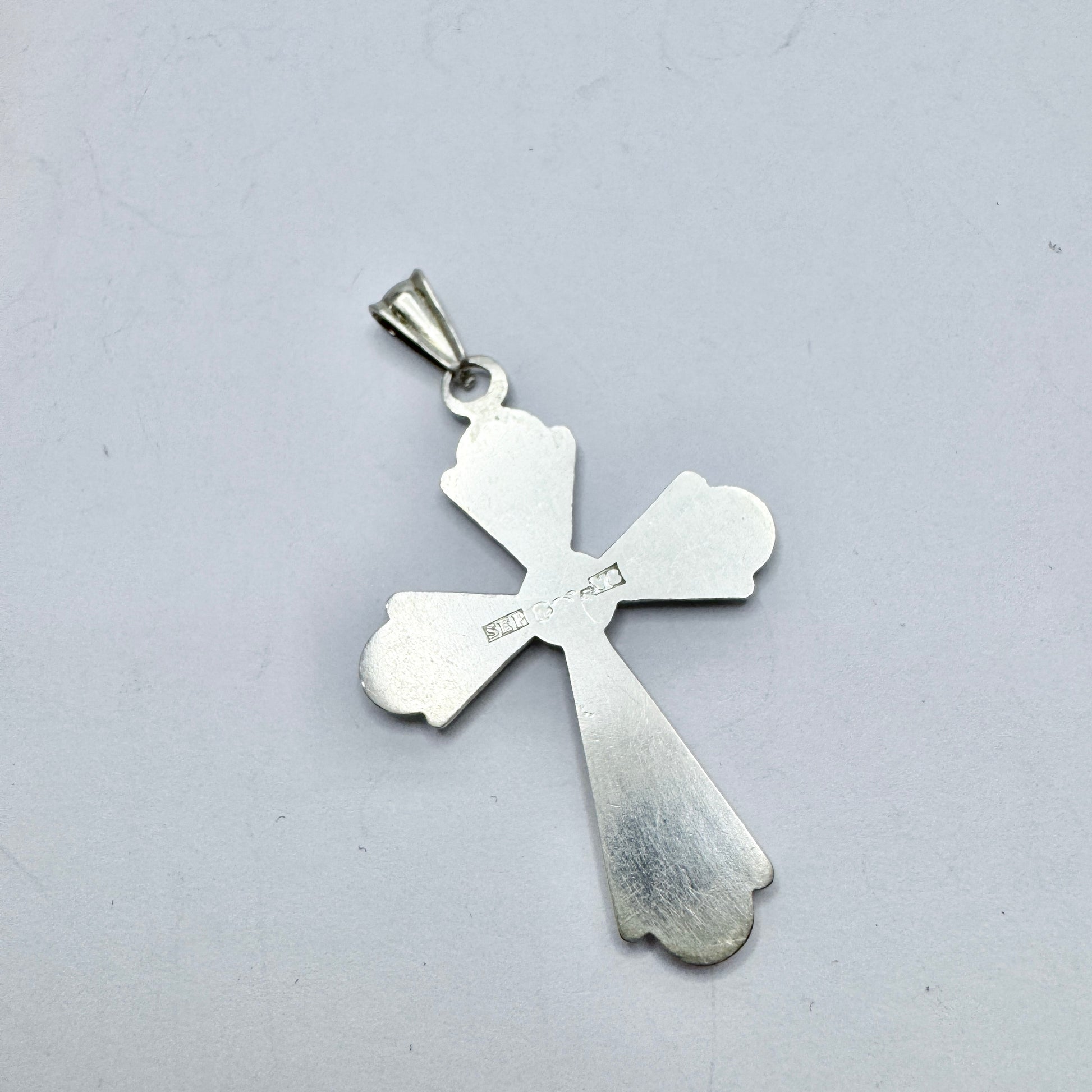 Very charming vintage solid silver cross pendant. Hallmarked for S Peterson, Sweden year 1947.