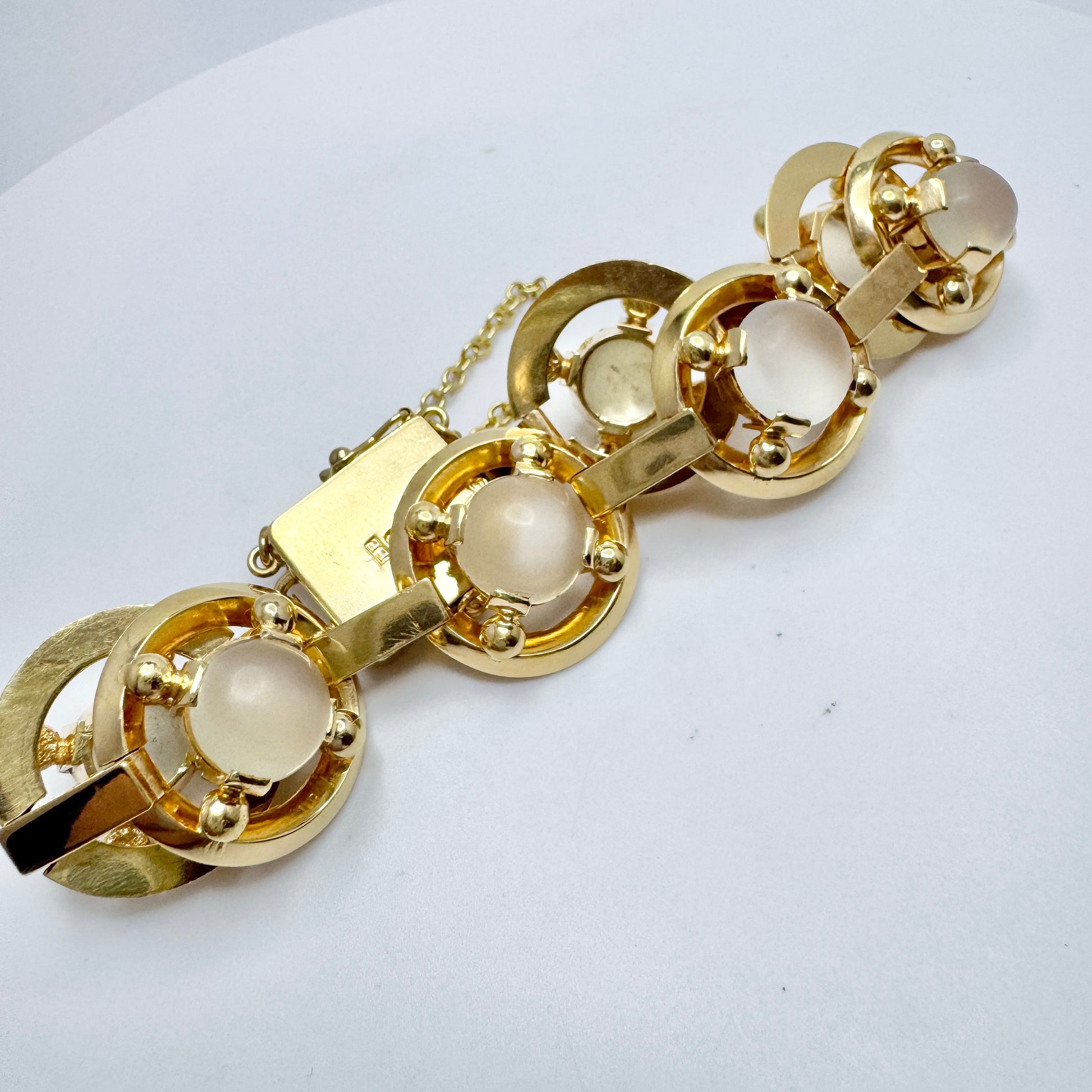 Smycka, Sweden 1973. Vintage 18k Gold Moonstone Bracelet. 52gram