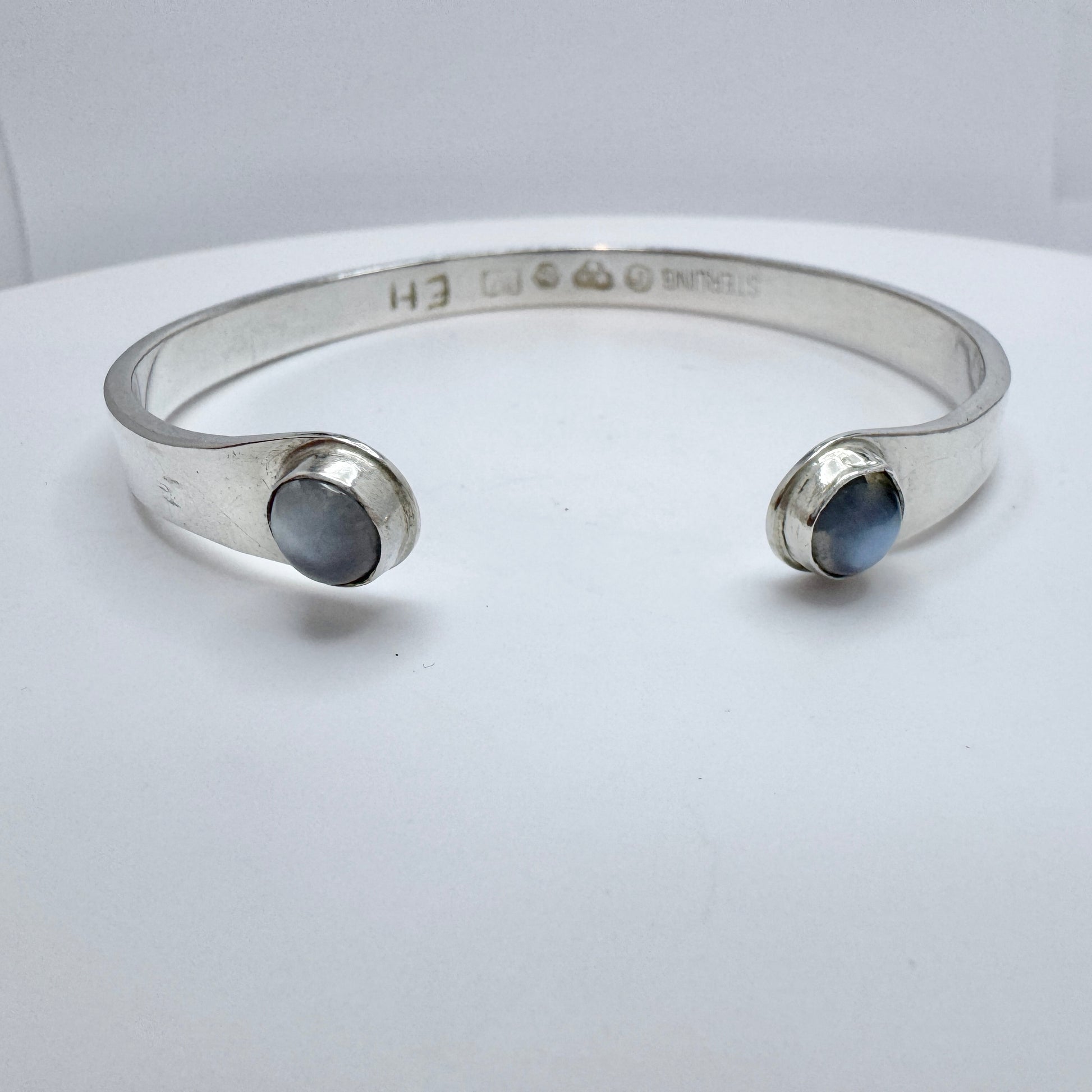 Beautiful vintage sterling silver moonstone bracelet / arm cuff. Hallmarked for maker EH, Sweden year 1961.