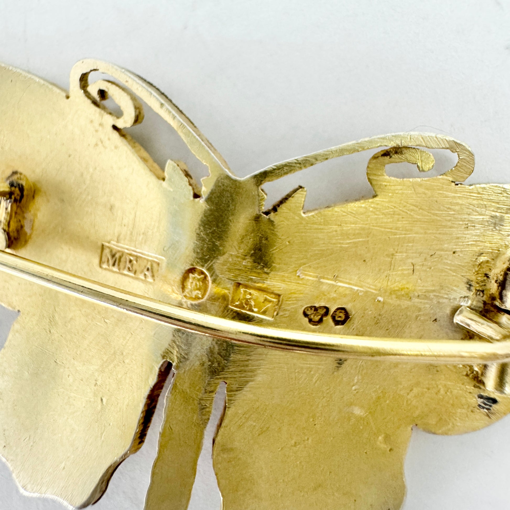 Sweden year 1919. Antique Sterling Silver Enamel Butterfly Brooch.