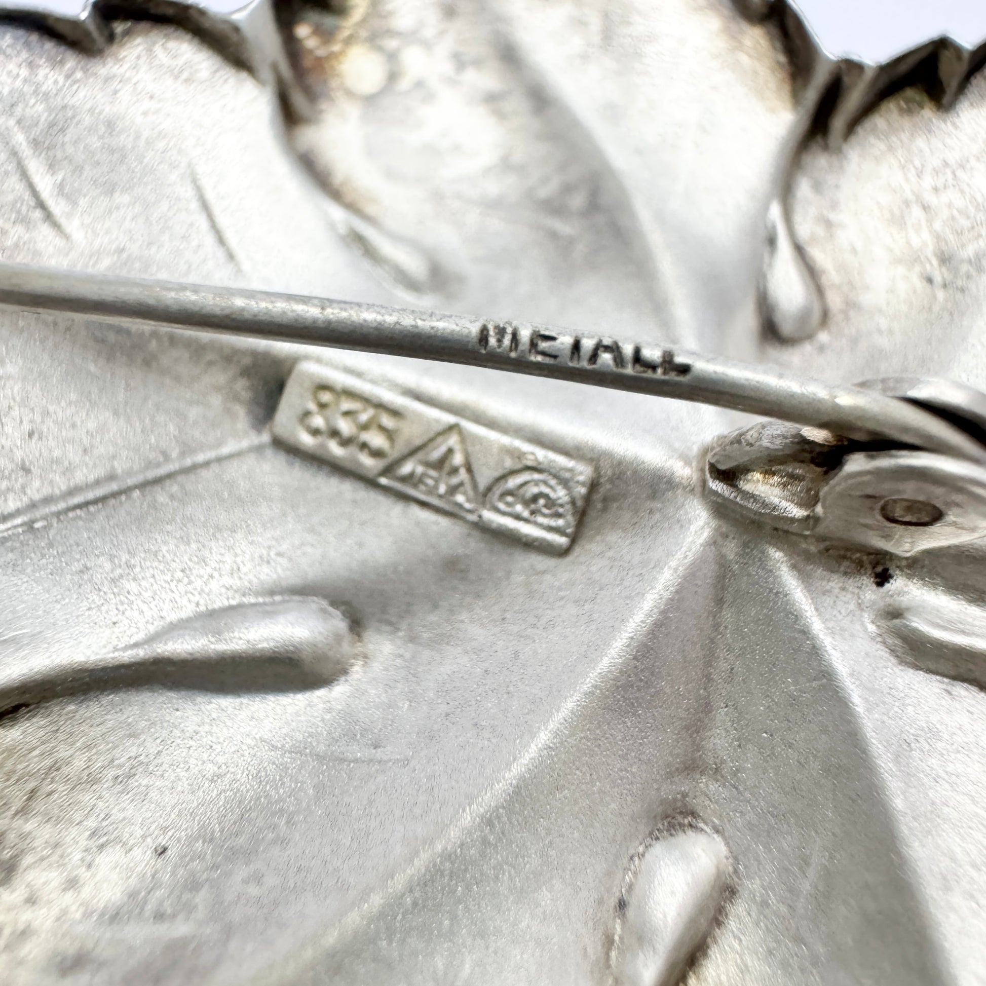 Charming vintage silver leaf brooch. Hallmarked for 835 silver (needle not in silver) TeKa, Germany ca 1950s