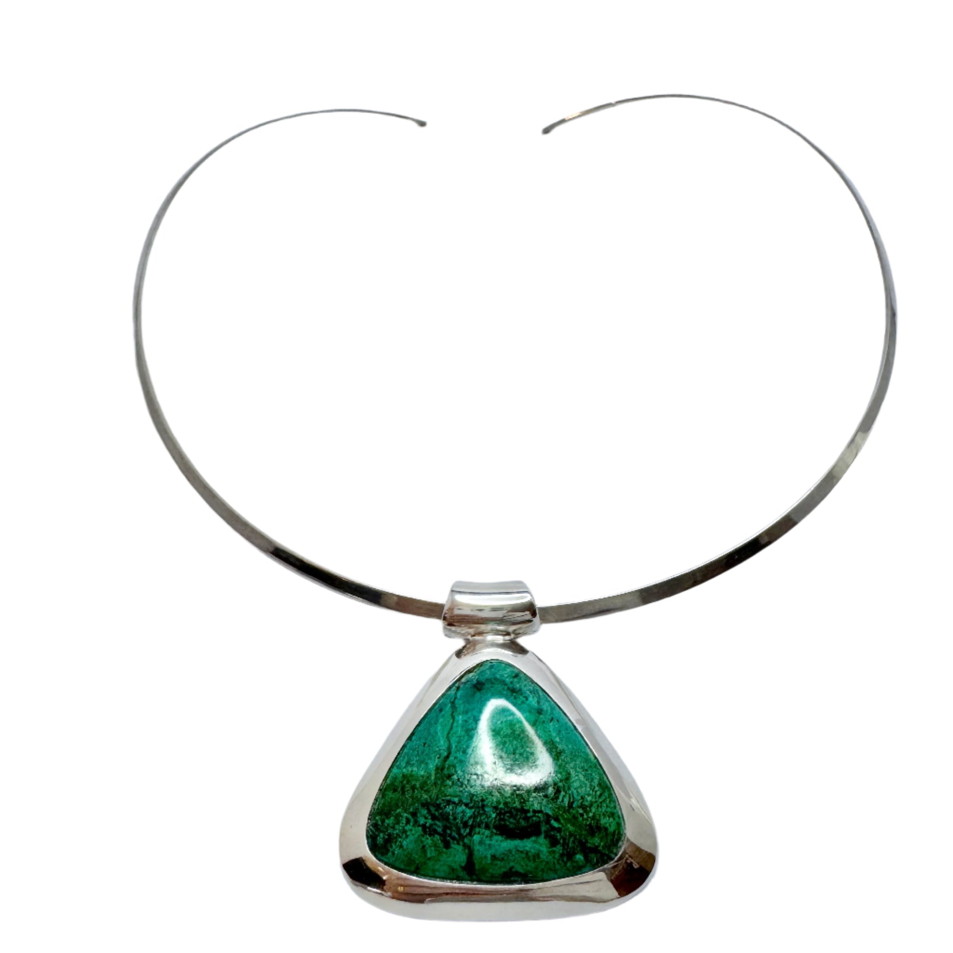 Beautiful vintage sterling silver Eilat stone pendant necklace. Pendant and torque hallmarked for 950 silver.