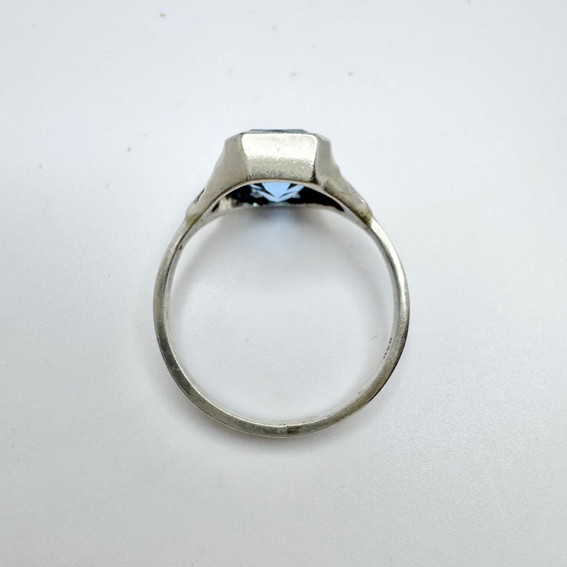 Wonderful and much sought after vintage solid silver synthetic spinel ring. Hallmarked for 830 silver and Swedish control marks, ca 1930.