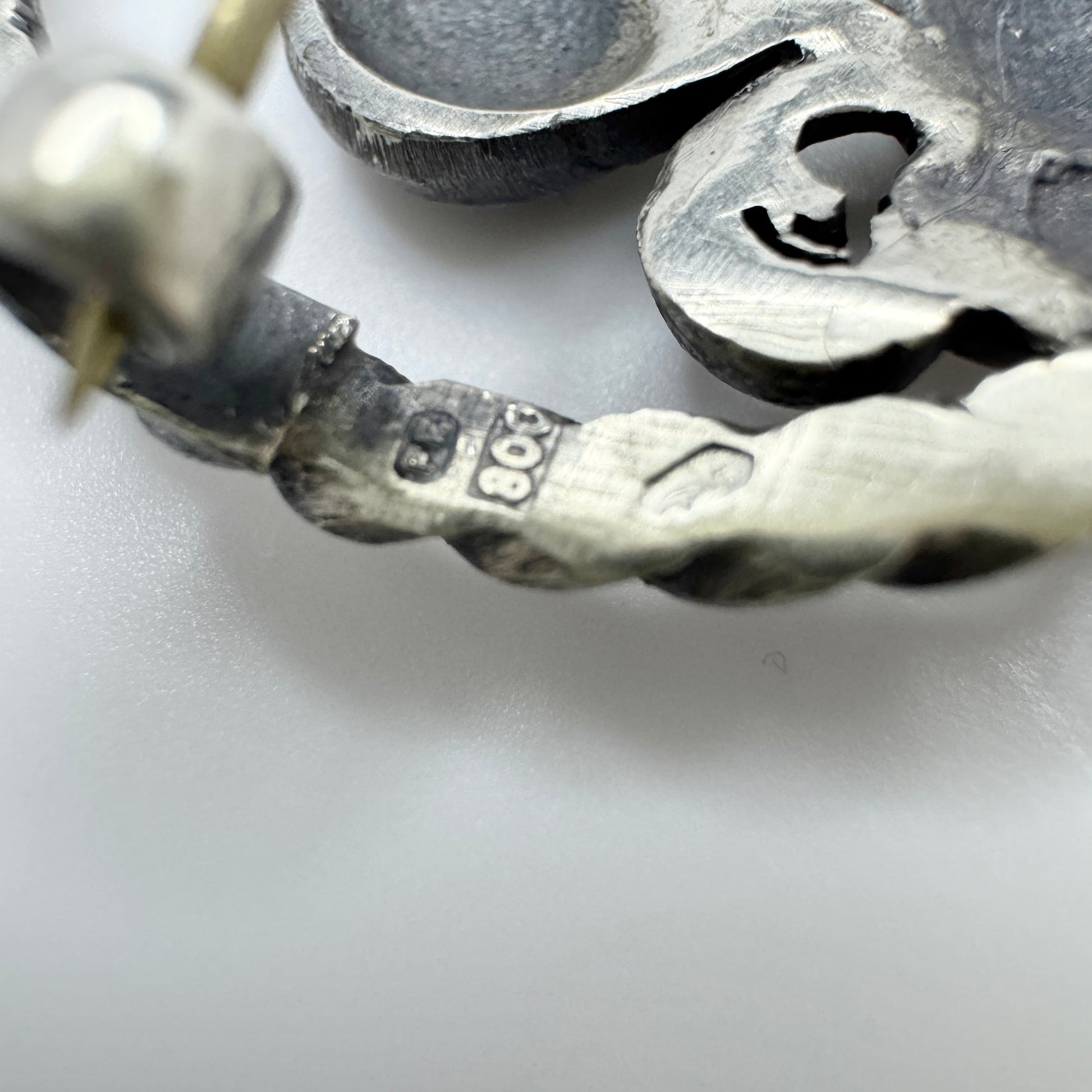Charming vintage solid silver flower brooch. Hallmarked for 800 silver and an unidentified makers mark. Continental Europe ca 1940s.