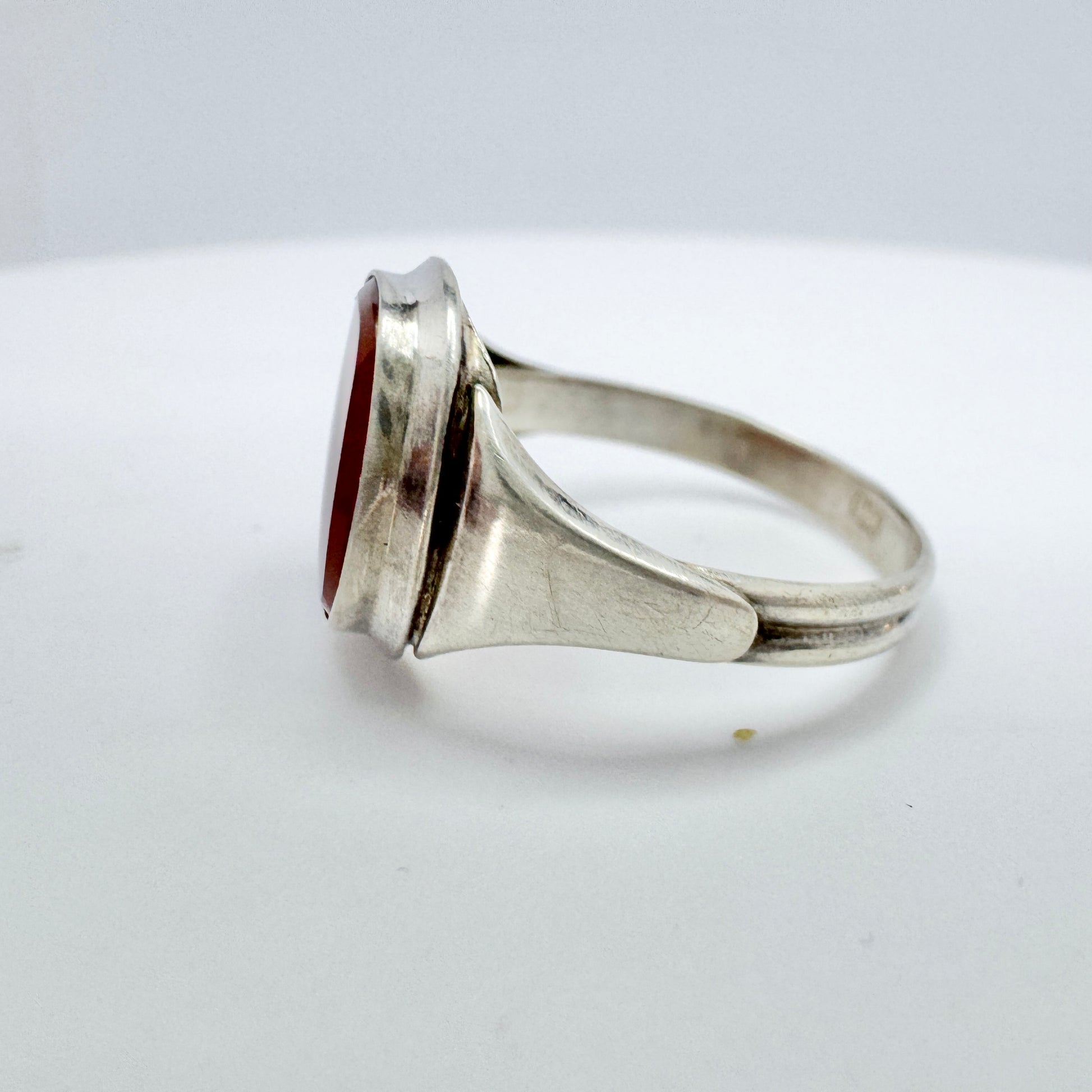 Charming vintage solid silver carnelian signet ring. Hallmarked for 830 and Swedish control marks ca 1950s.