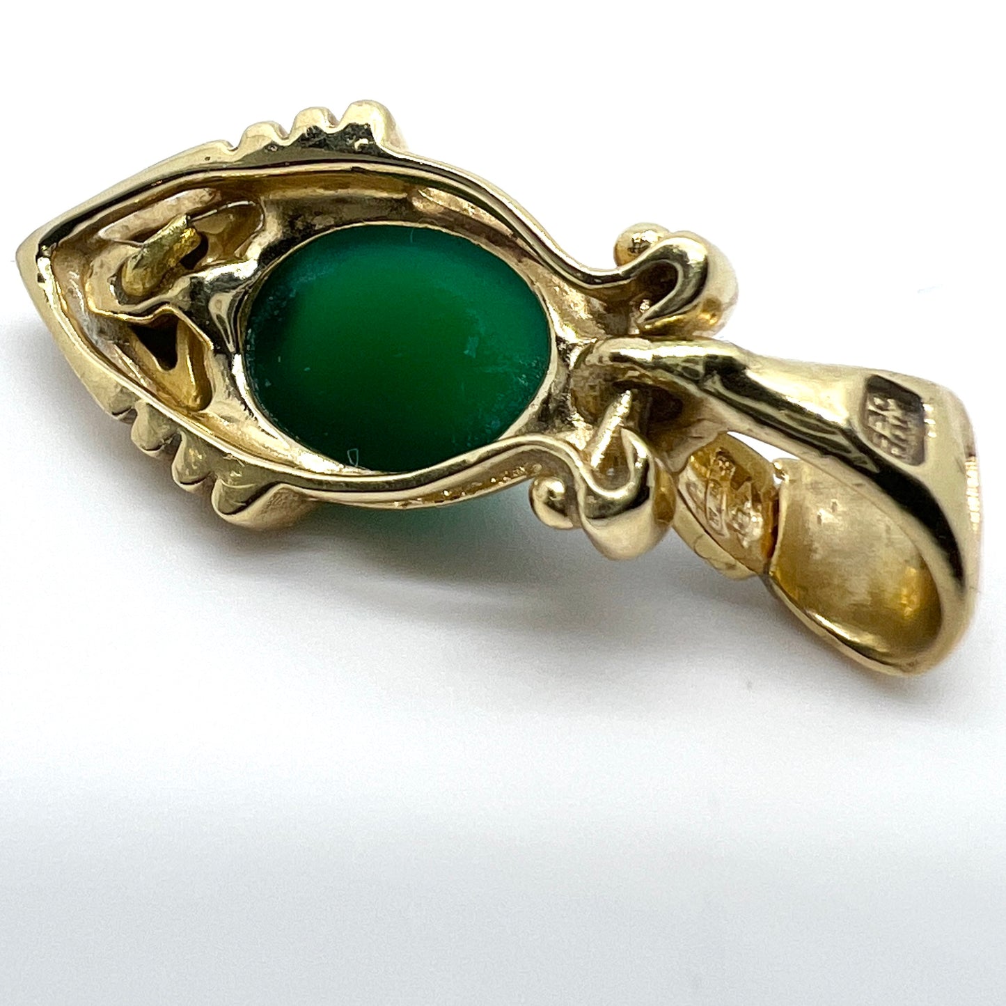 Wonderful vintage 18k gold chrysoprase pendant. Signed and fully hallmarked for maker Anfora, Arezzo Italy.
