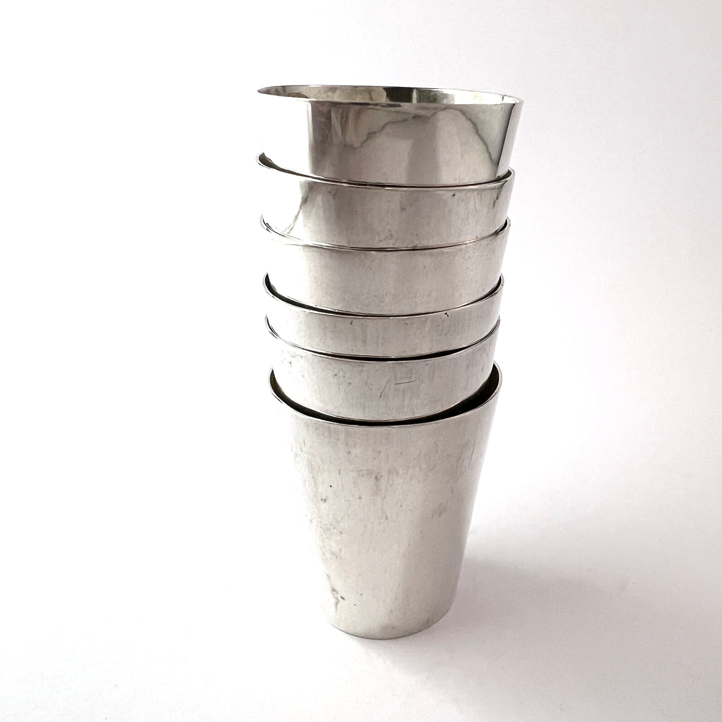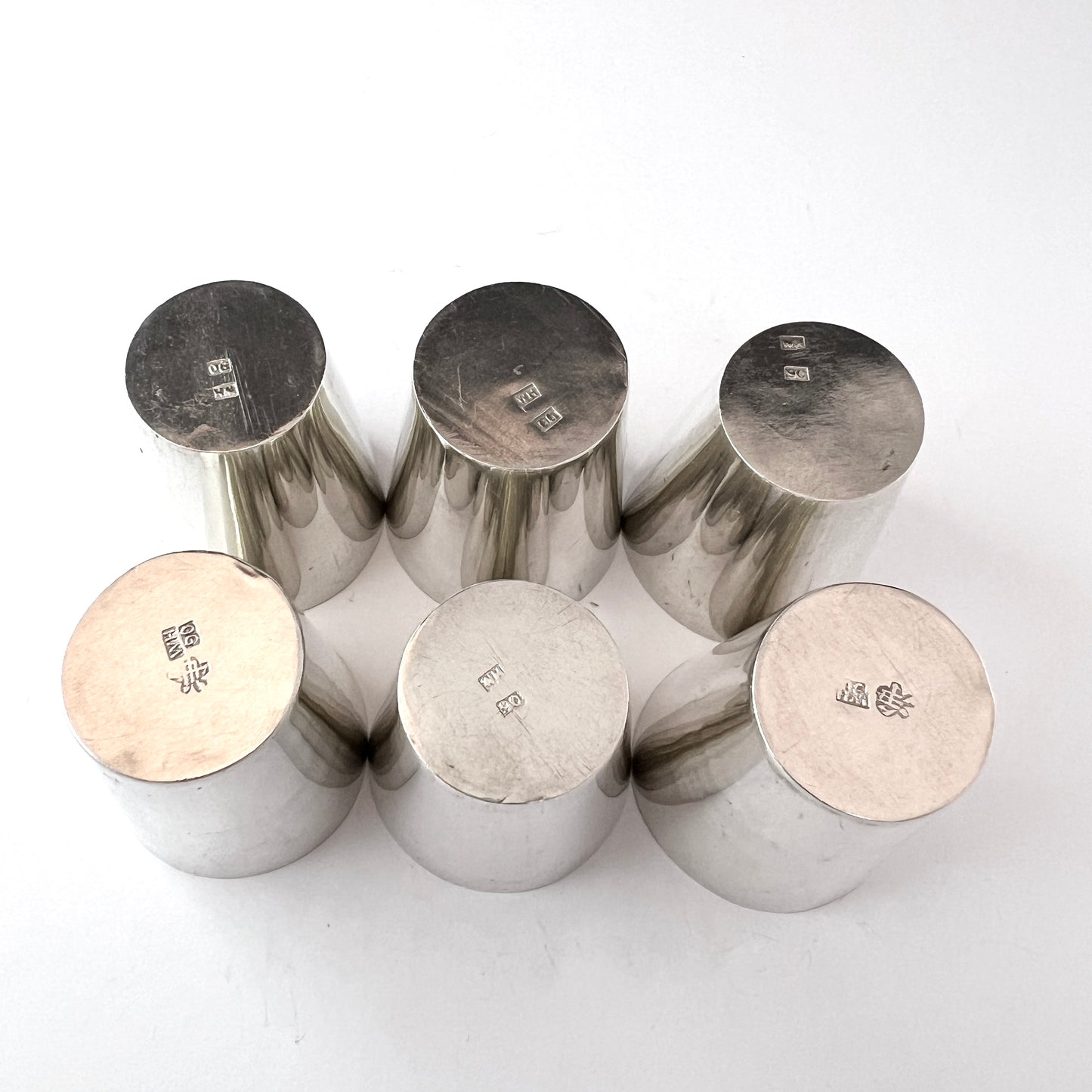 Antique Chinese Export Early 1900s. 6 Solid Silver Hunting / Shots Beakers.