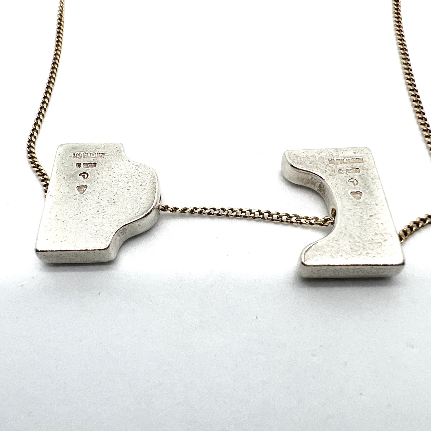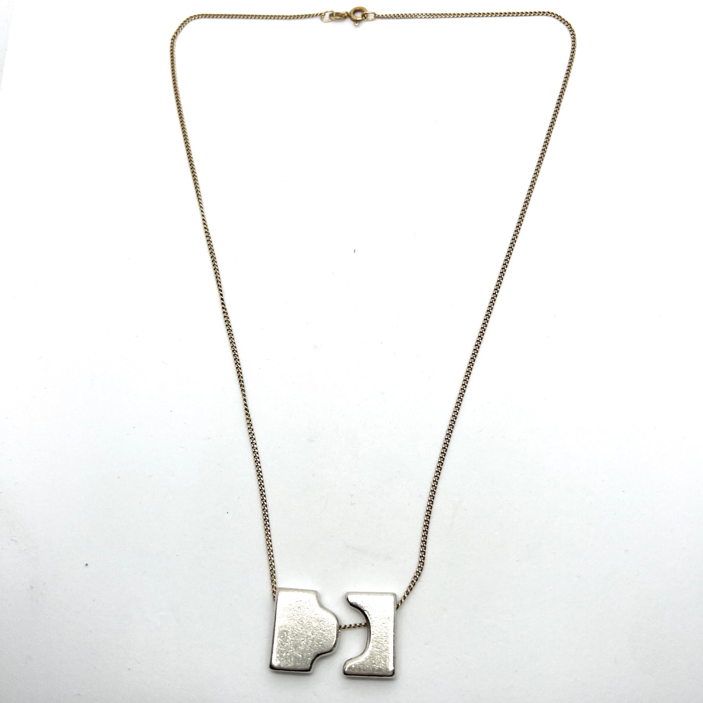 Beautiful vintage modernist sterling silver pendant on a 18k gold chain. Pendant hallmarked for sought after Anton Michelsen, Denmark 1960s. Chain hallmarked for 18k gold.