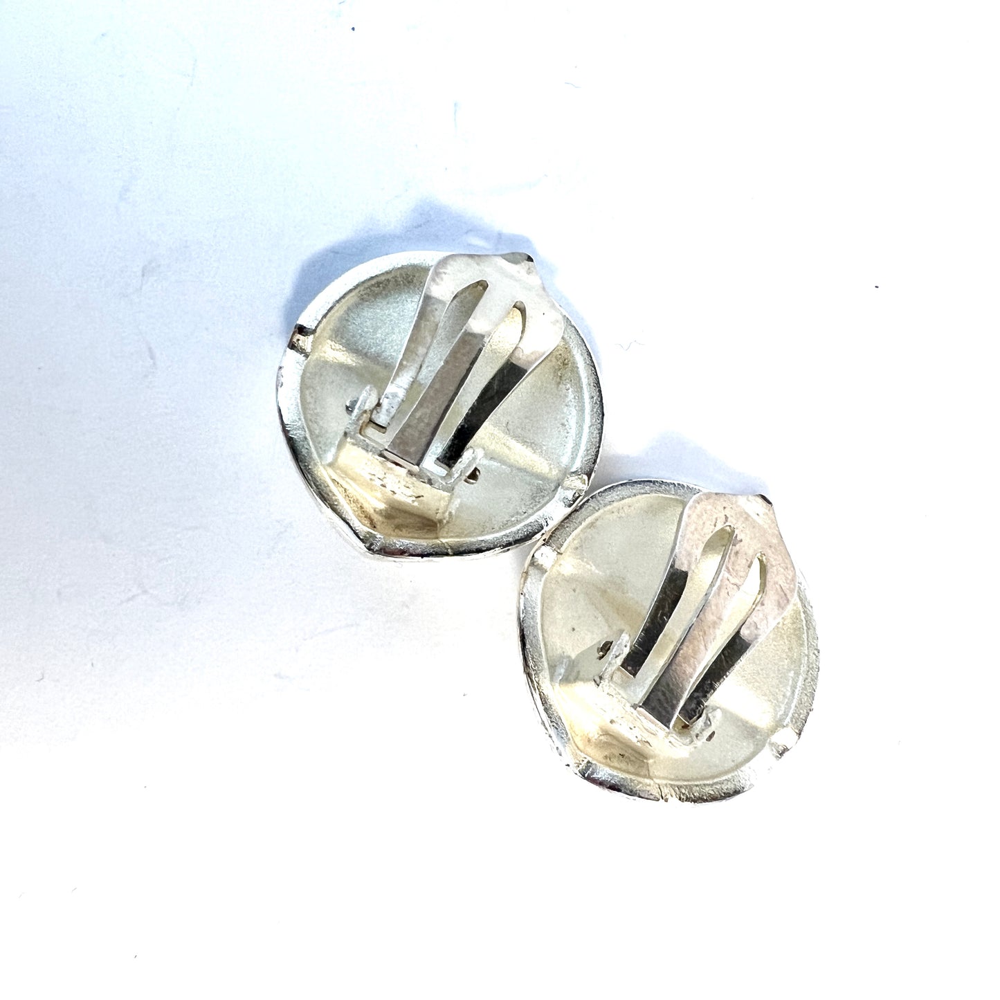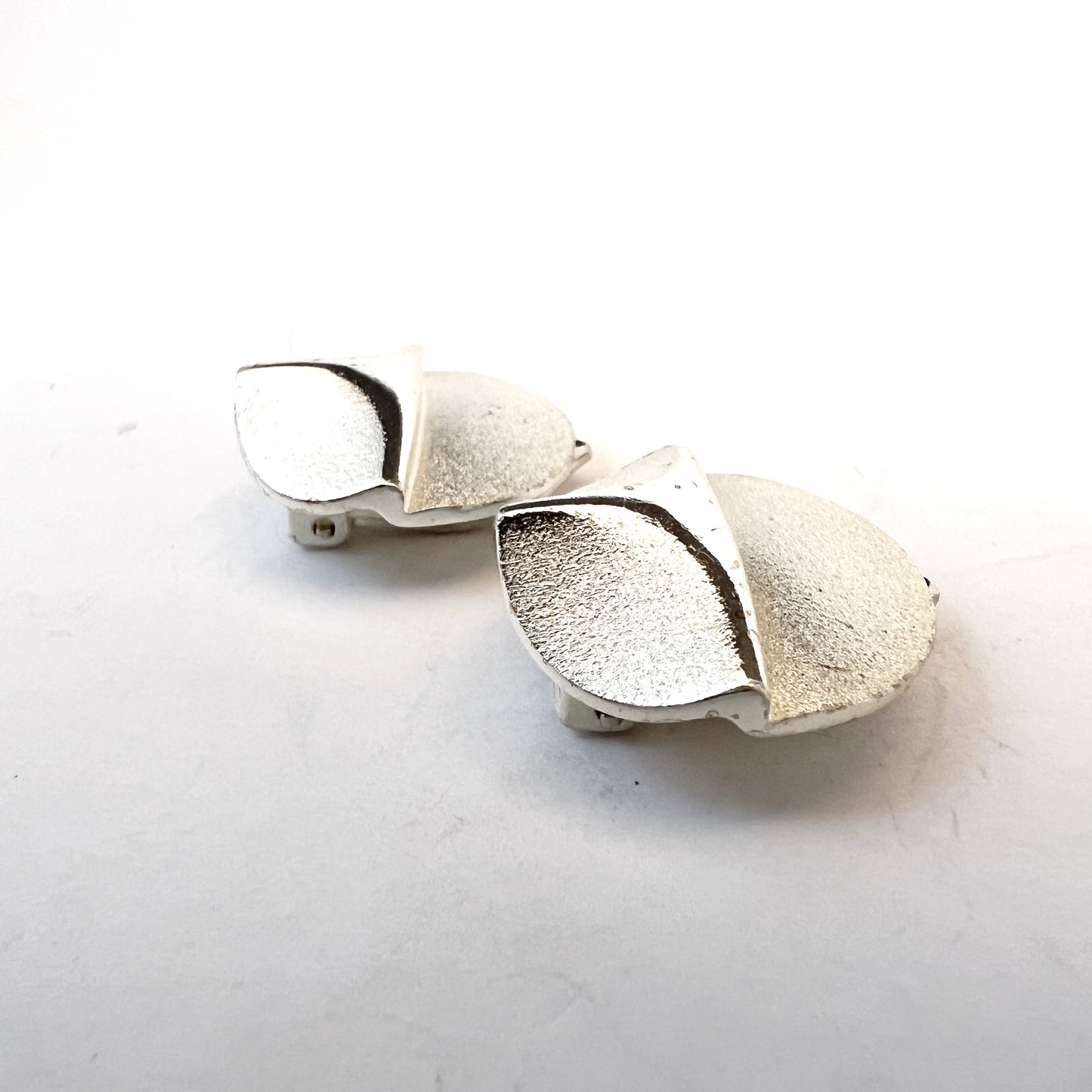 Beautiful vintage sterling silver designer clip-on earrings. Fully hallmarked for Lapponia, Finland year 1983. Design Southern Triangle, by renowned Bjorn Weckstrom.
