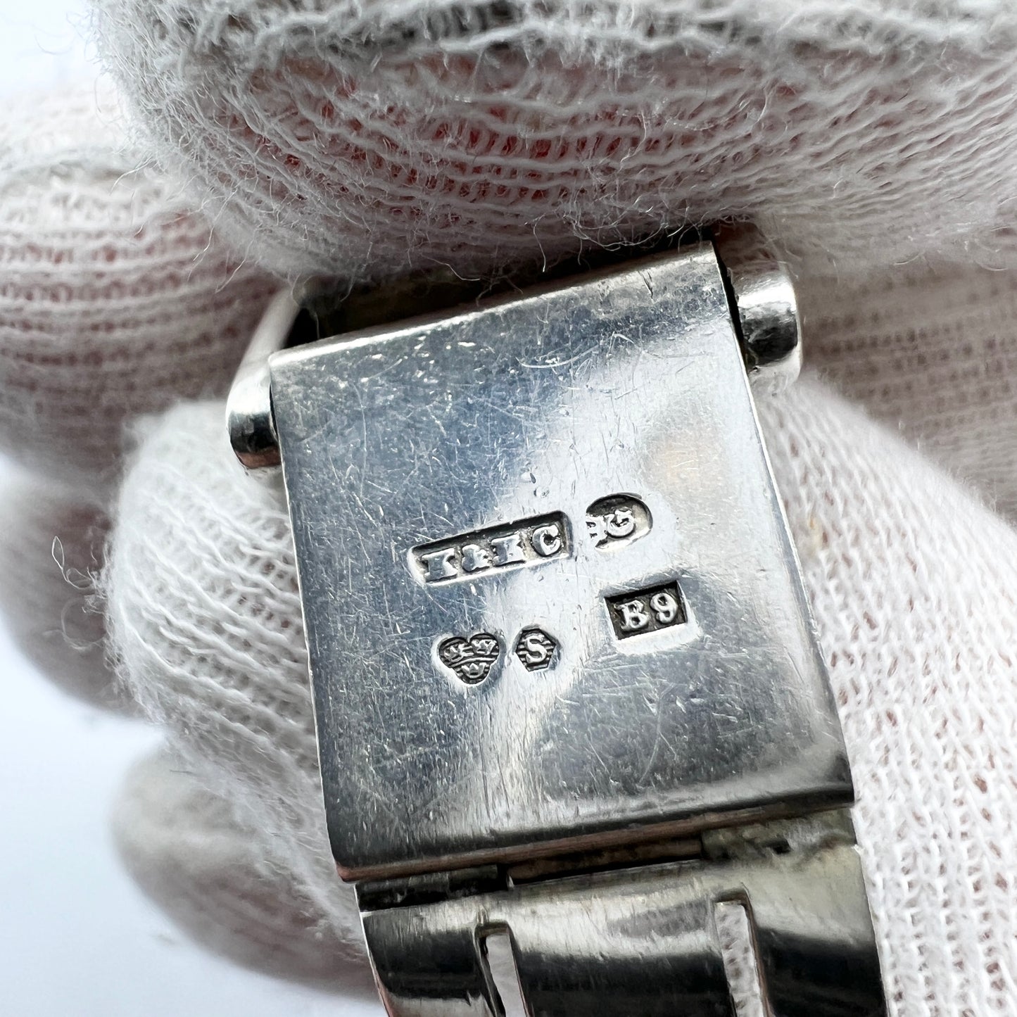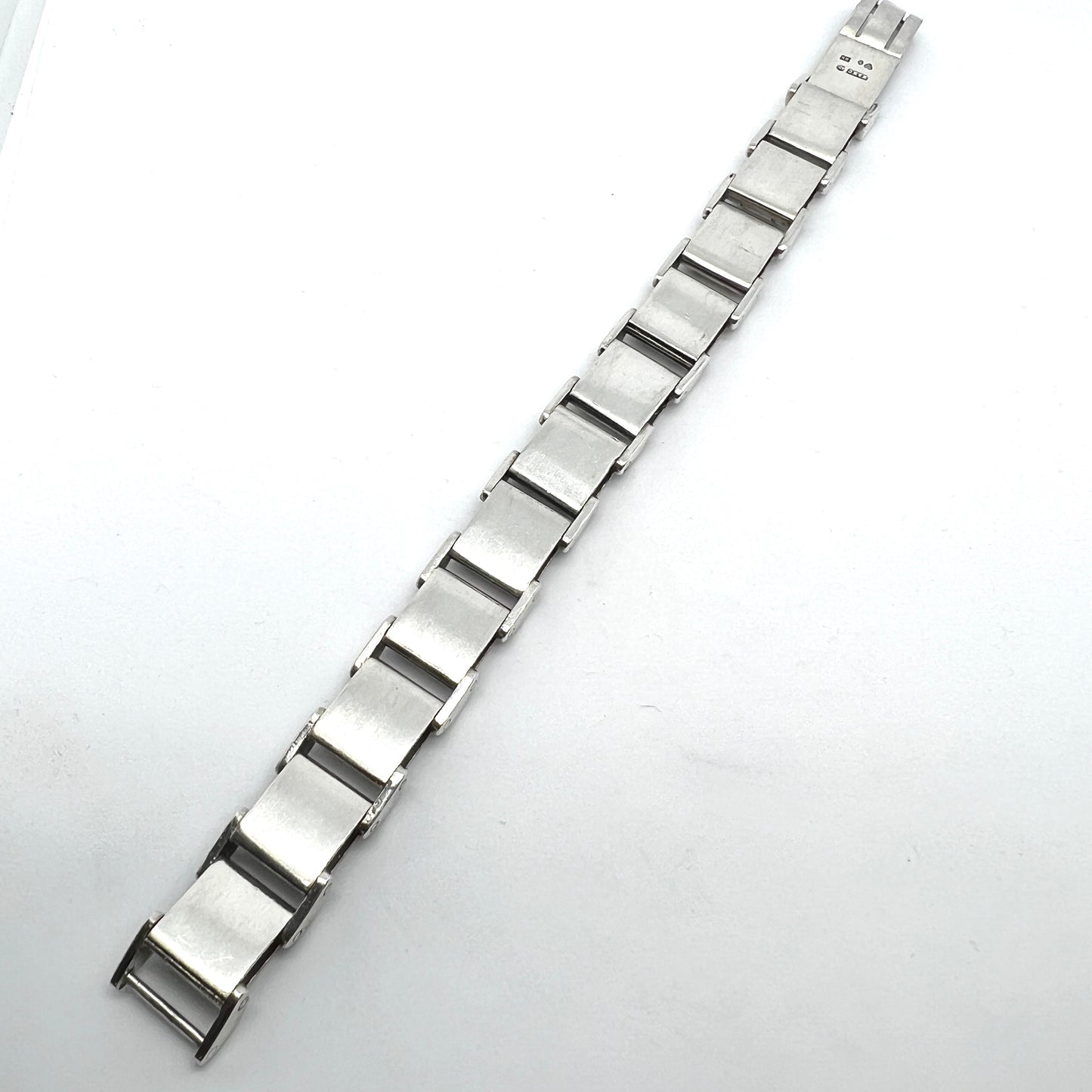 Wonderful vintage mid-century machine age sterling silver bracelet. Fully hallmarked for Ceson, Gothenburg Sweden year 1952.