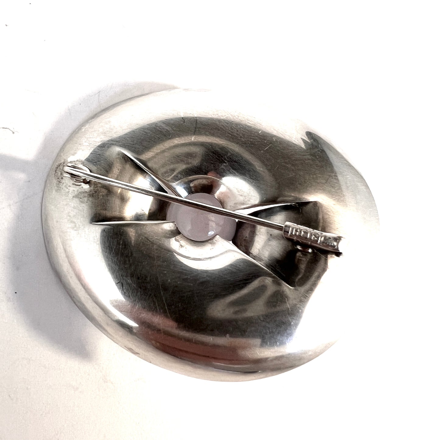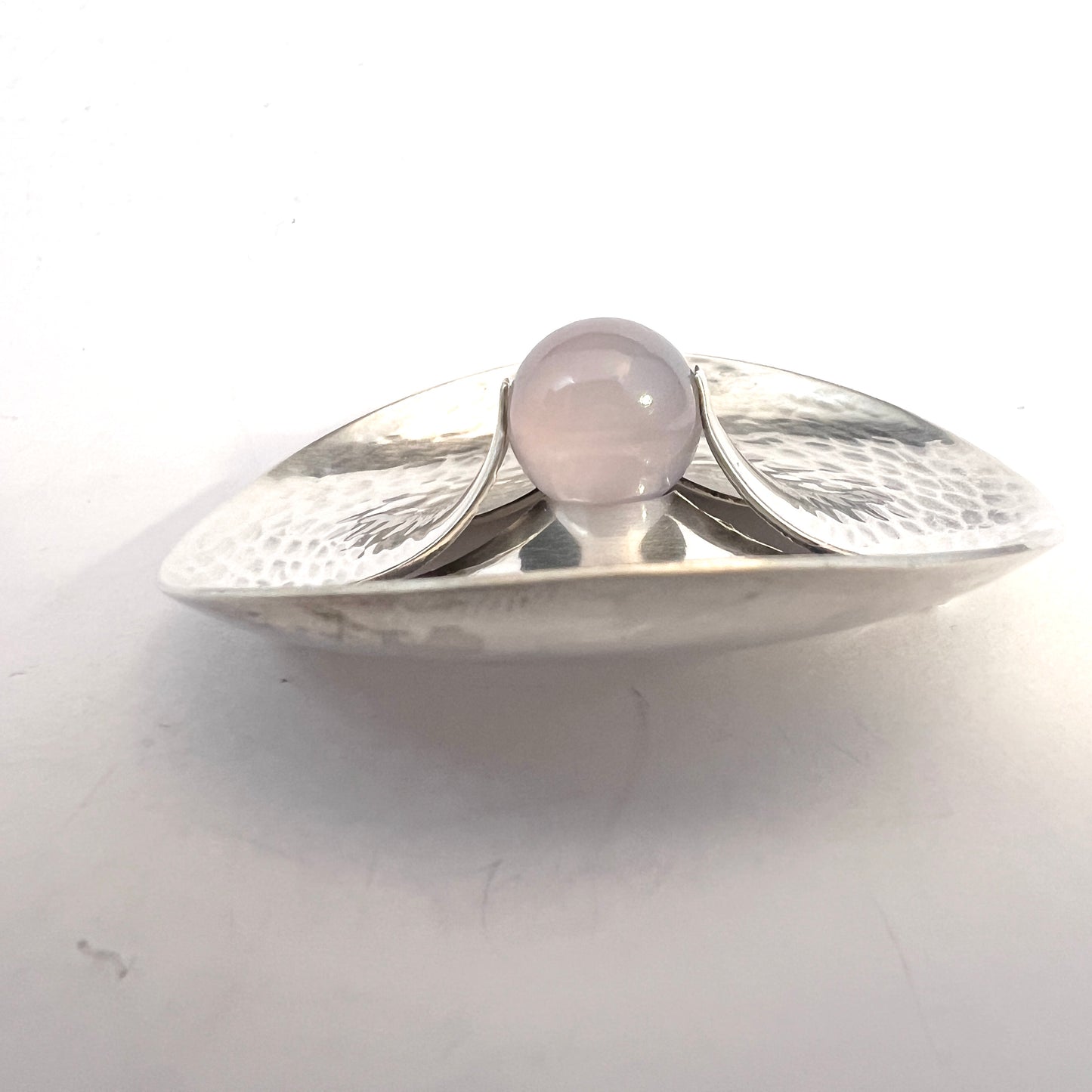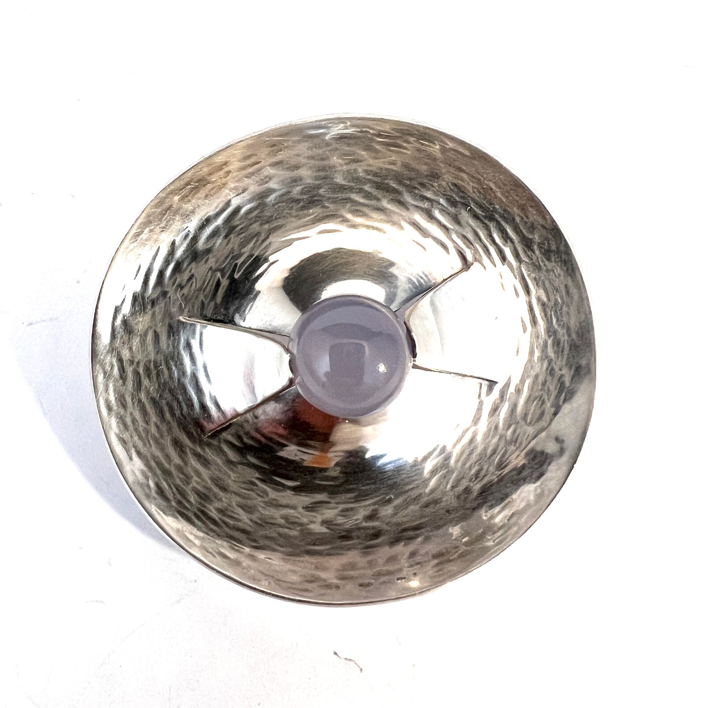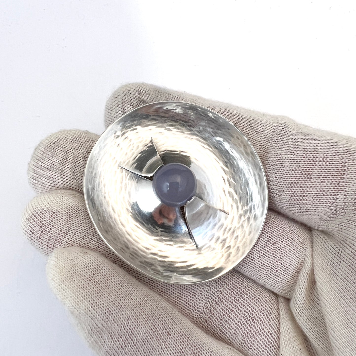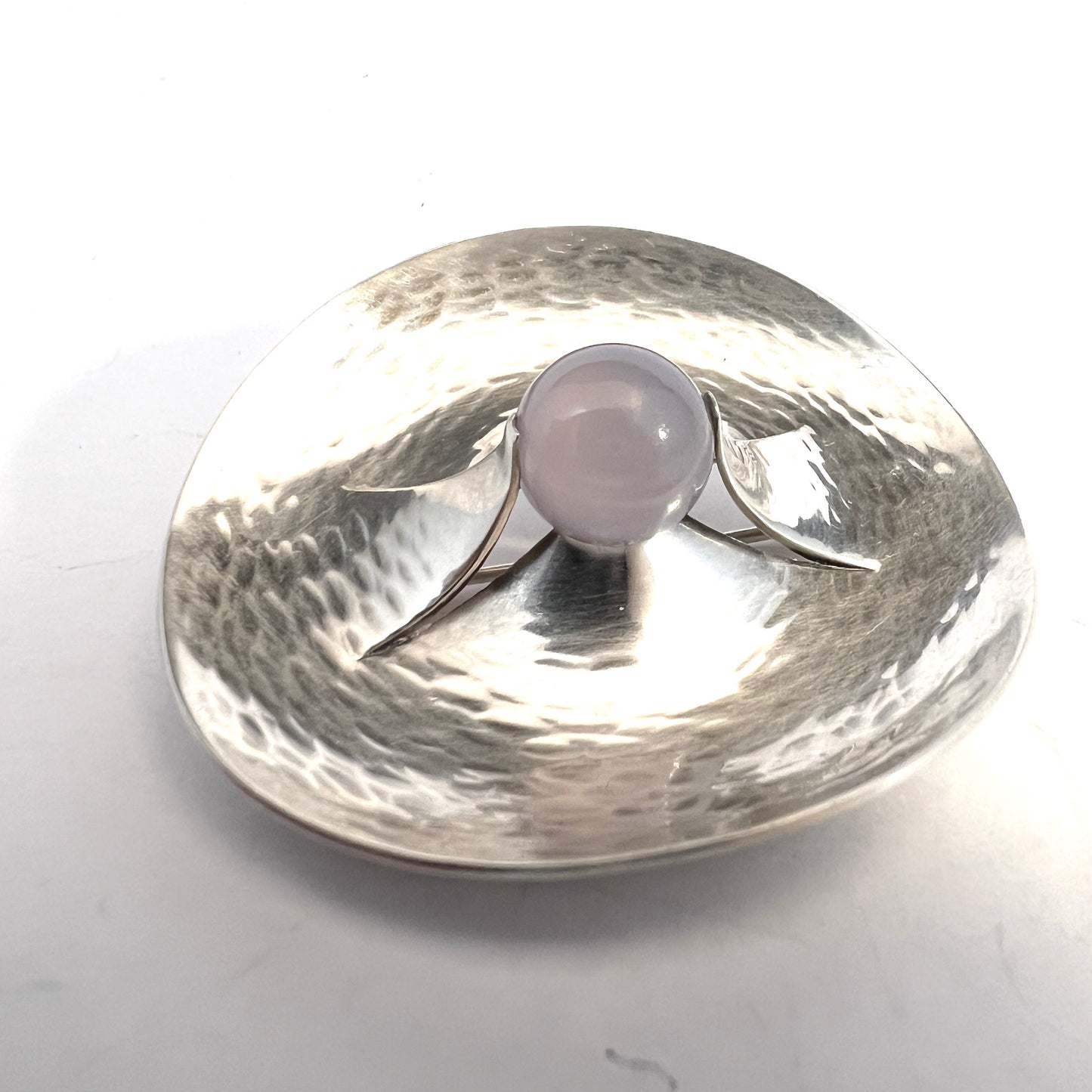 Elis Kauppi, Kupittaan Kulta Finland 1964. Vintage Solid Silver Chalcedony Brooch.