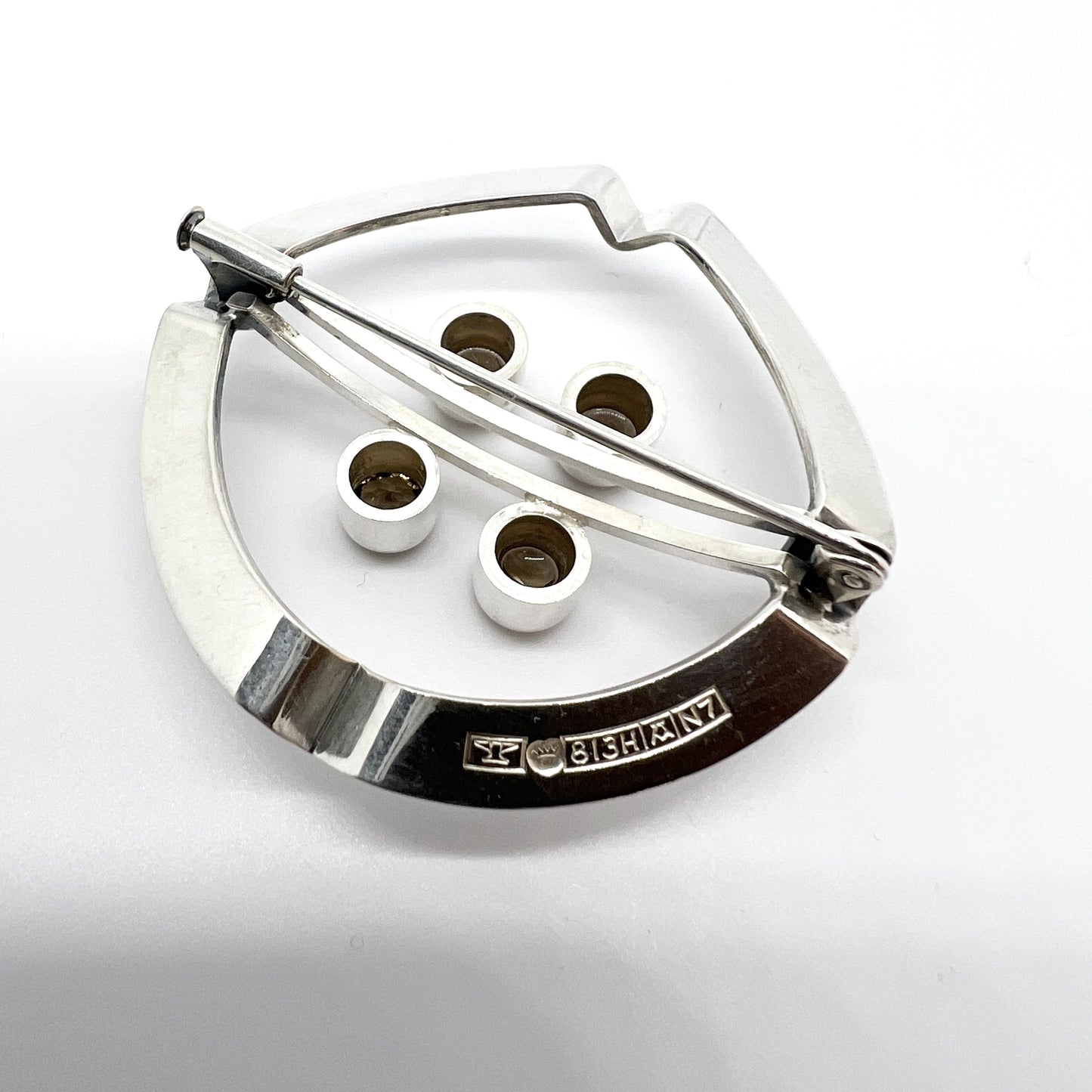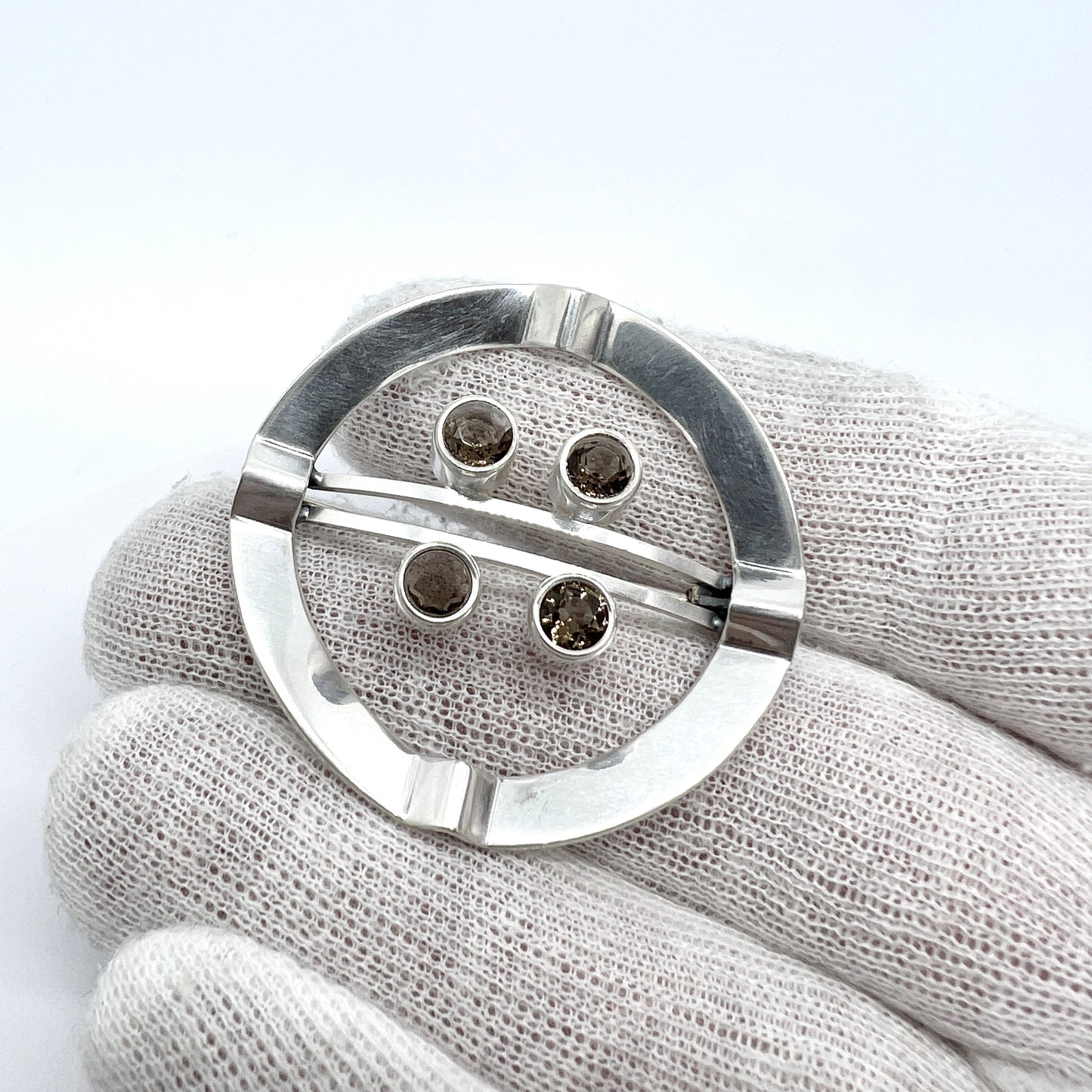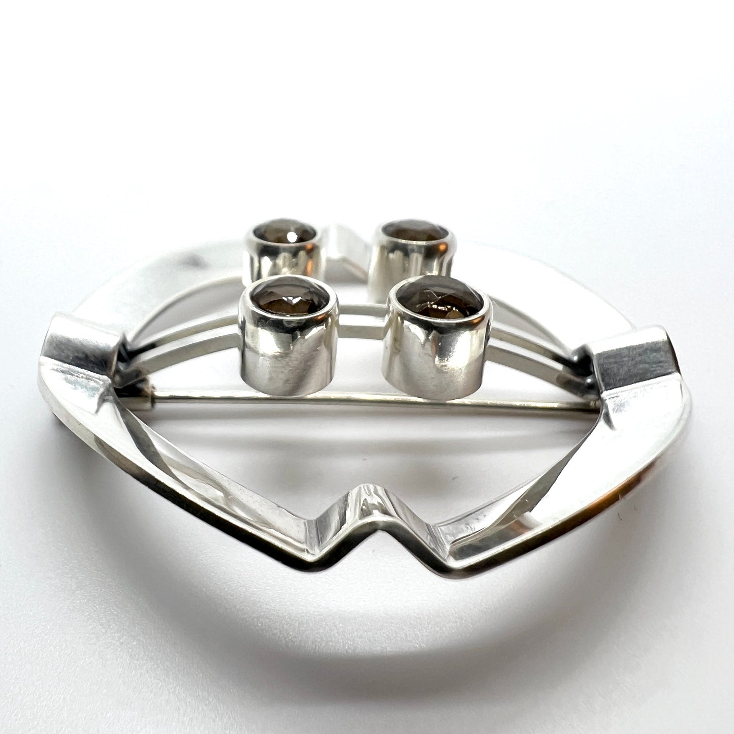 Elis Kauppi, Kupittaan Kulta Finland 1966. Vintage Solid Silver Quartz Brooch.