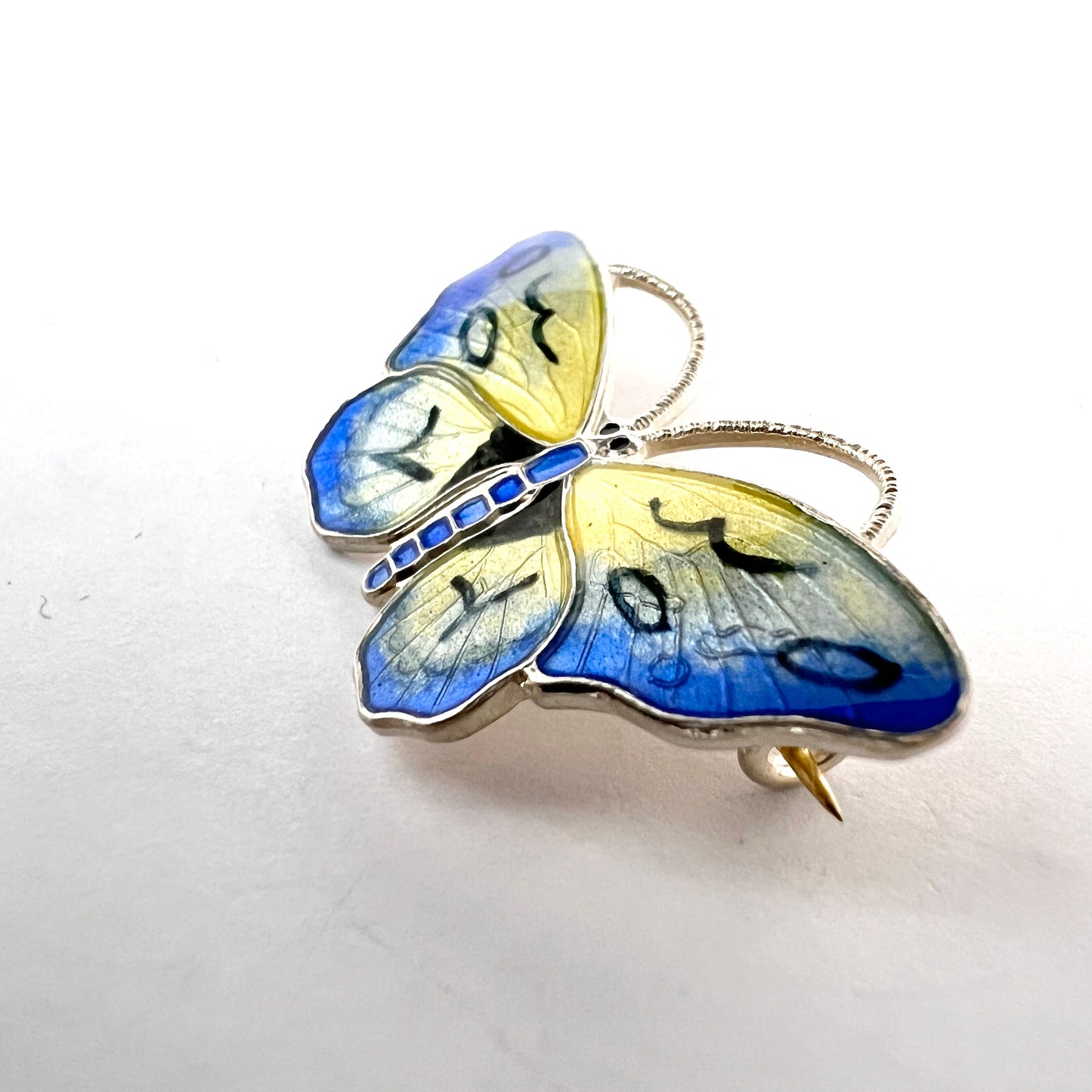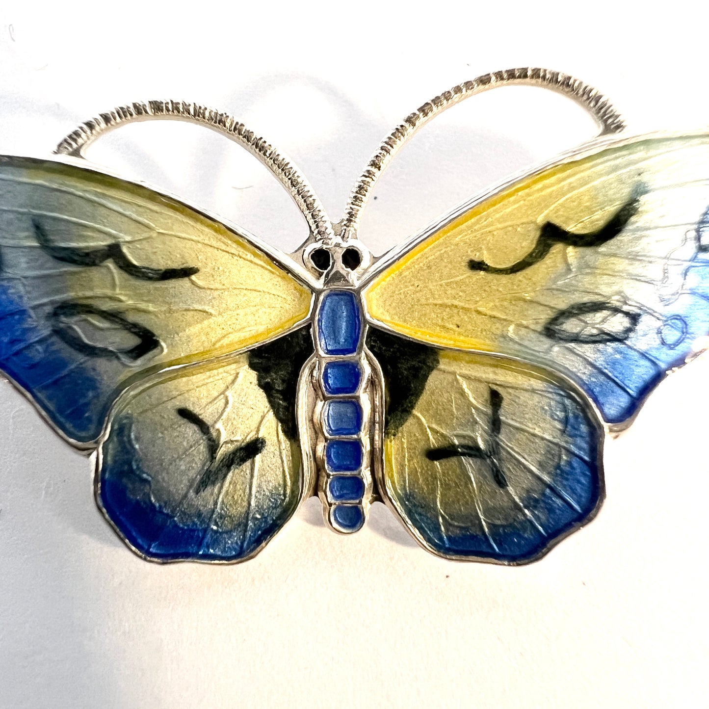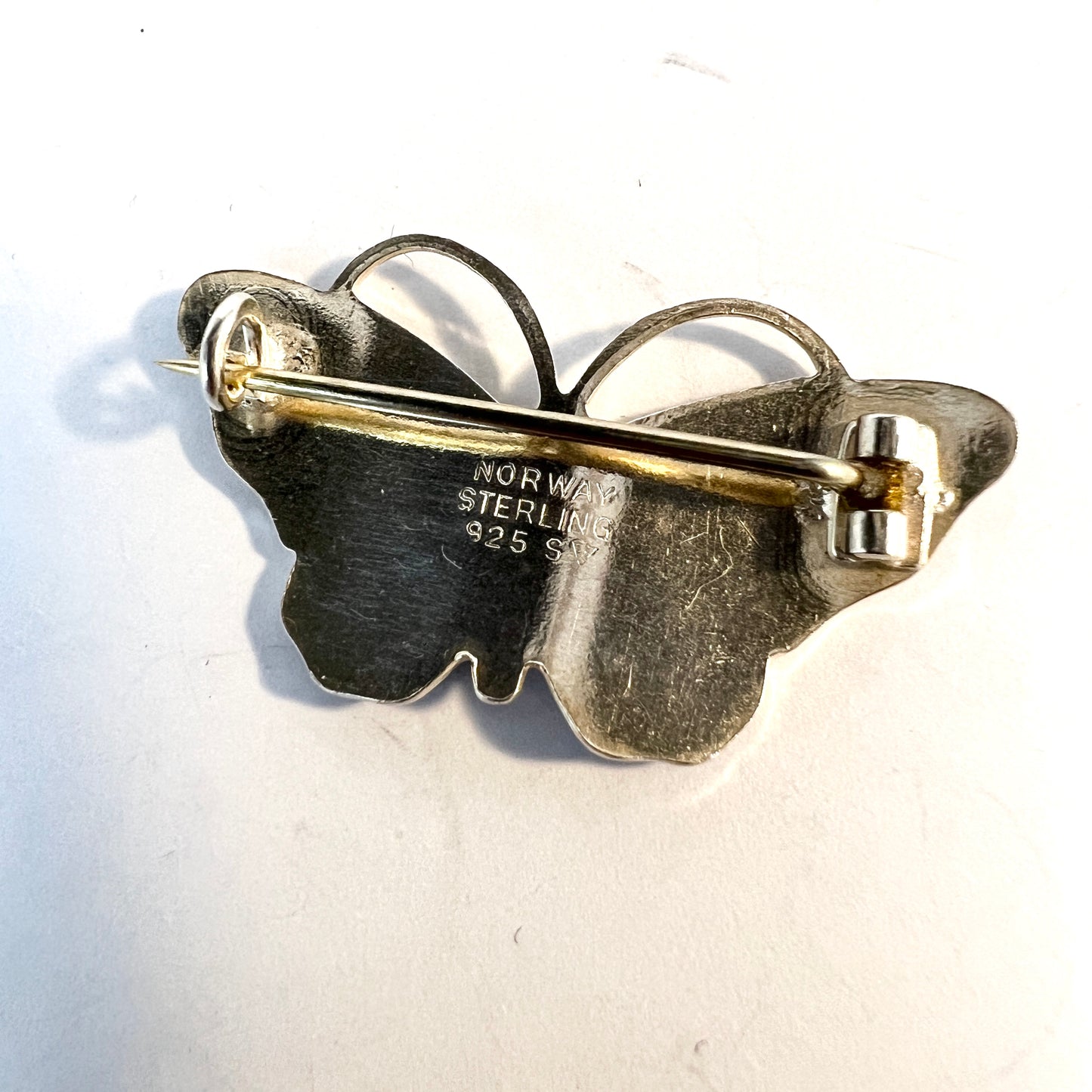 Finn Jensen, Norway. Vintage Sterling Silver Enamel Butterfly Brooch.
