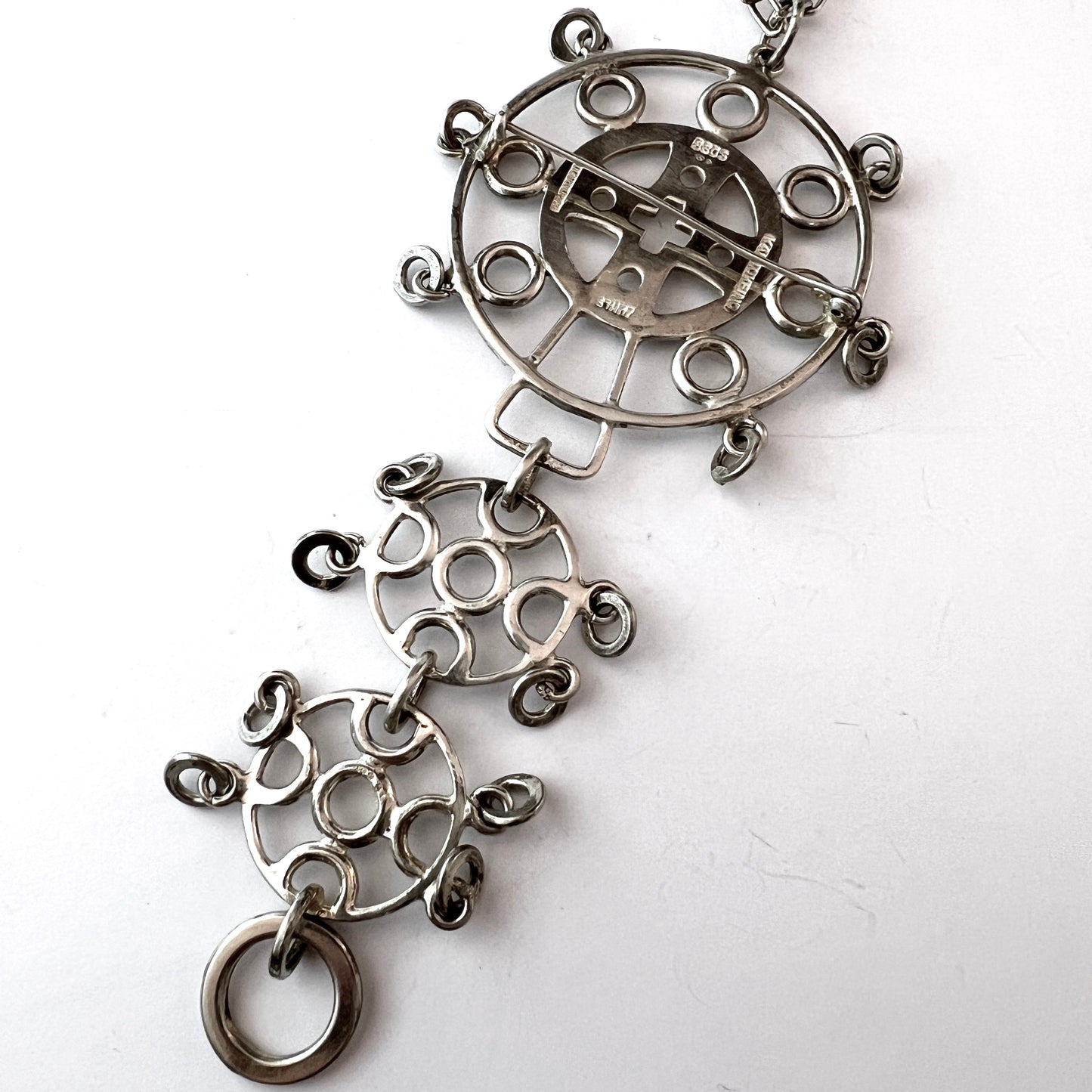 Wonderful and very large vintage solid 830 silver pendant necklace. Fully marked for renowned maker Frank and Regine Juhls, Norway Also marked for handmade and Swedish import marks.