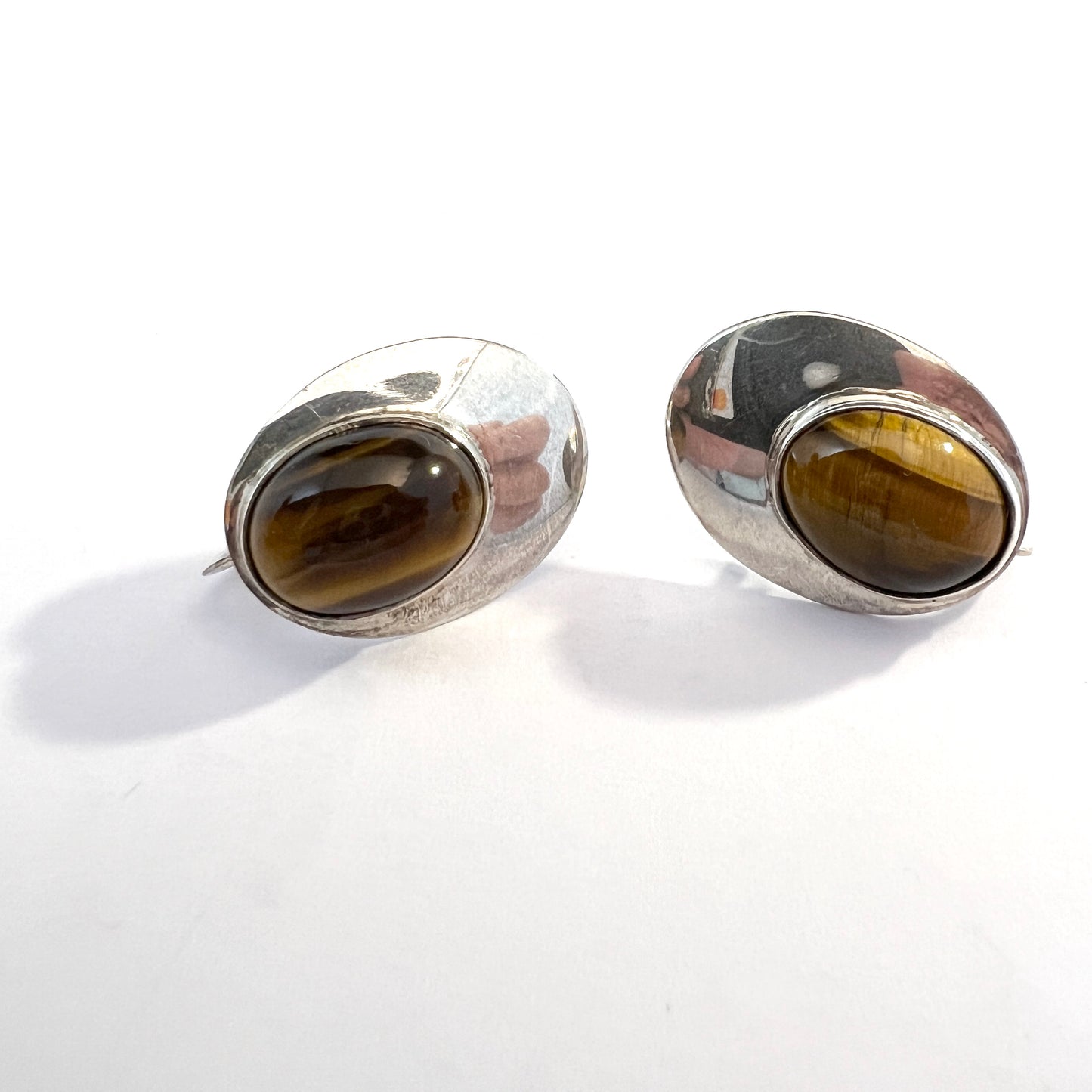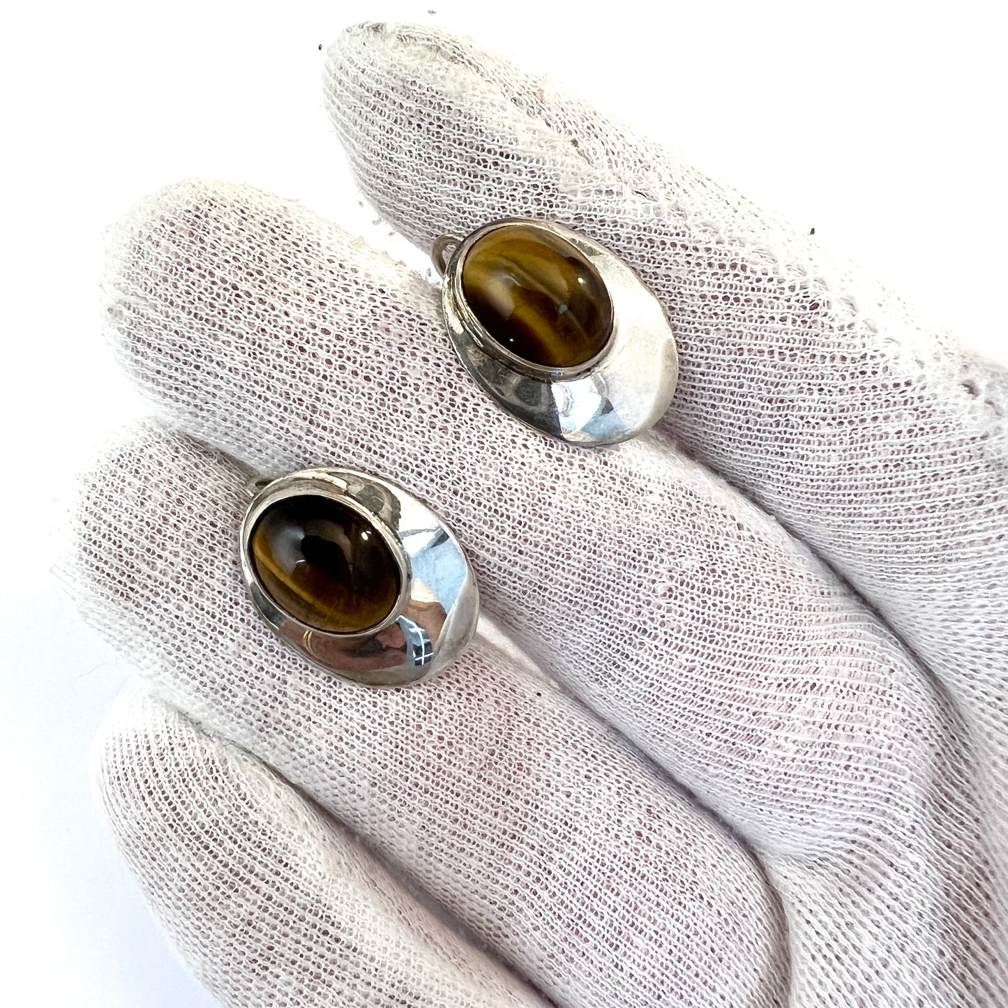 GUSSI, Sweden 1957. Vintage Mid-century Sterling Silver Tiger's Eye Earrings.
