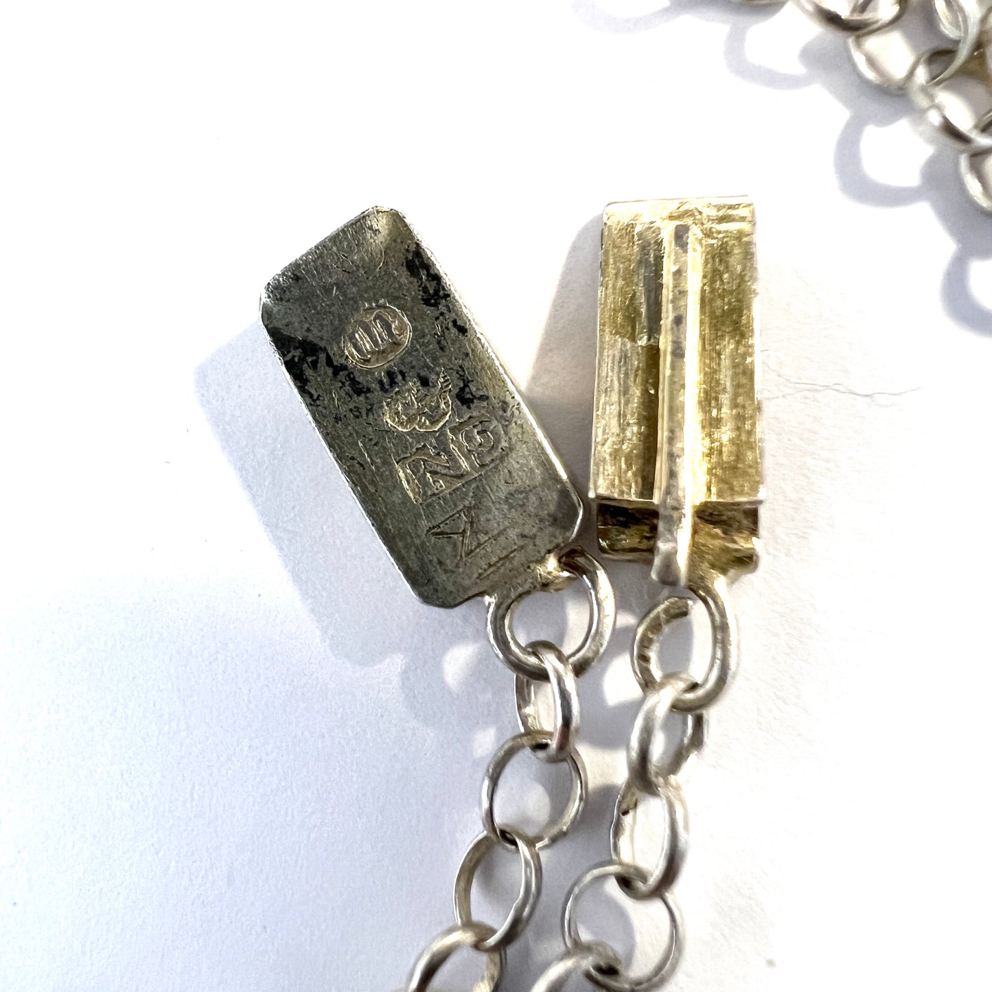 Gustaf W Nordström, Sweden 1824-74. Antique Solid Silver Longuard Chain Necklace.