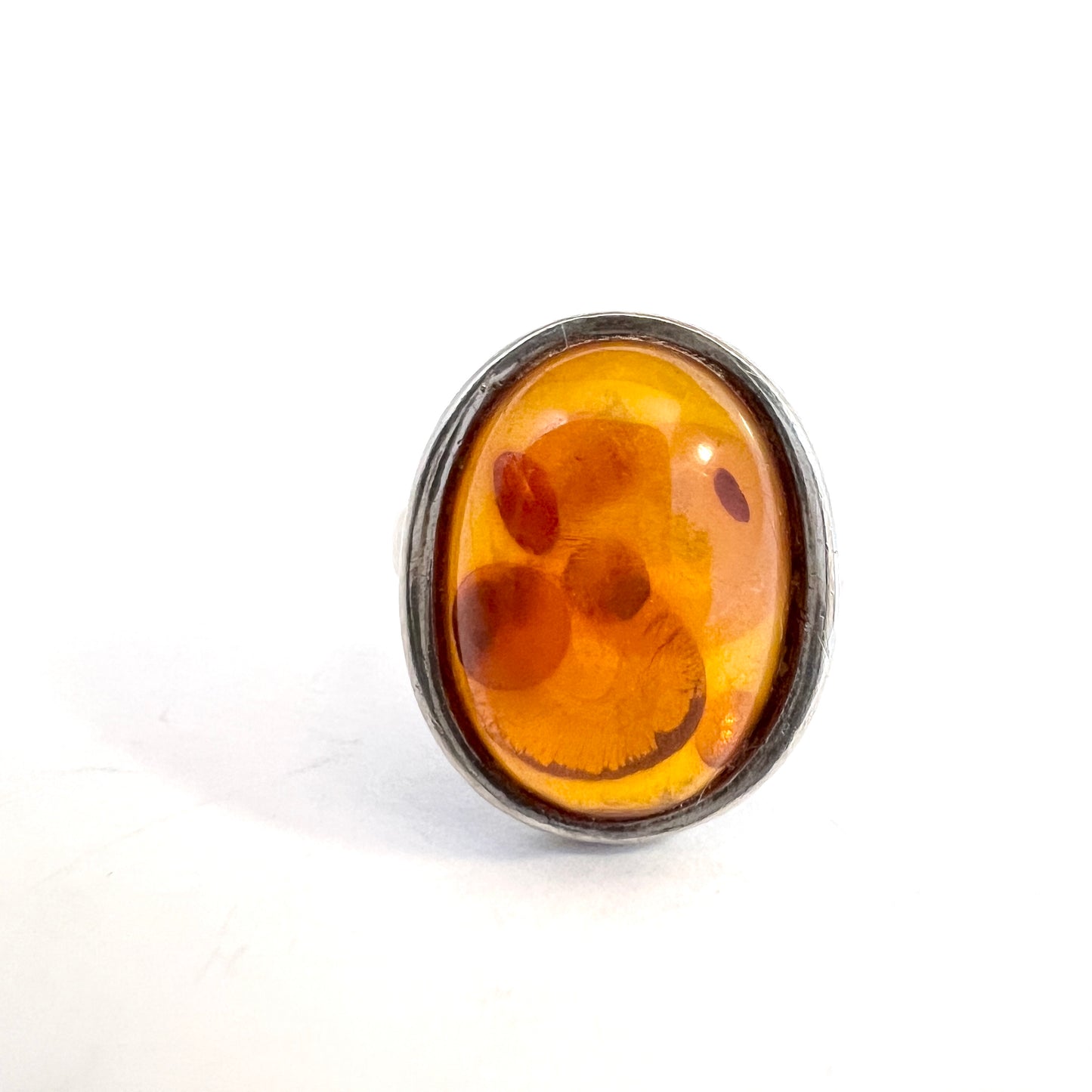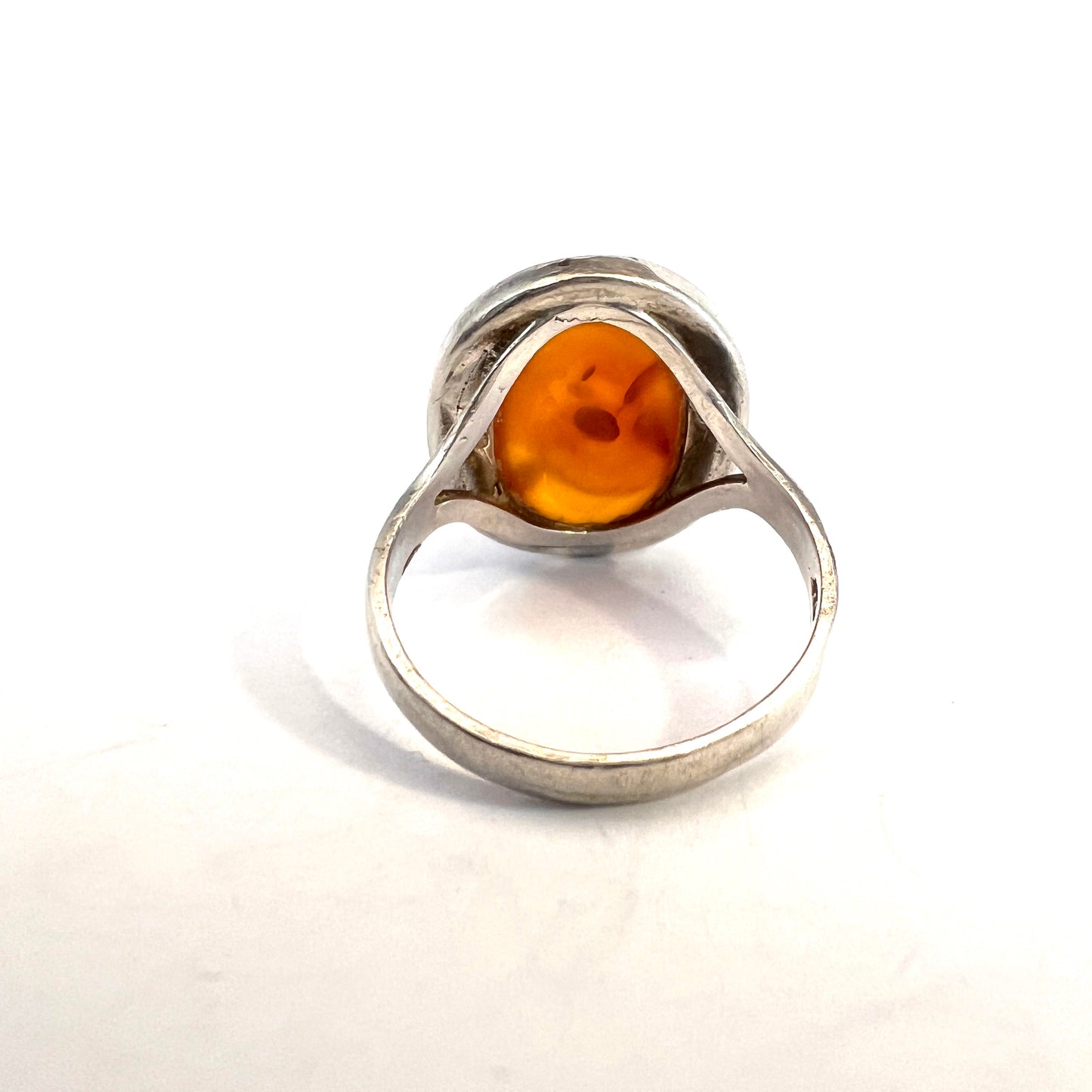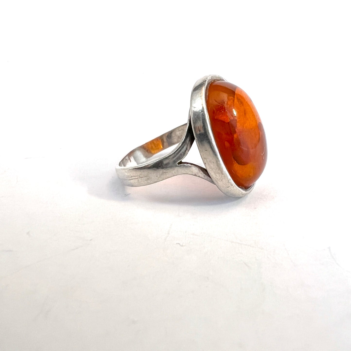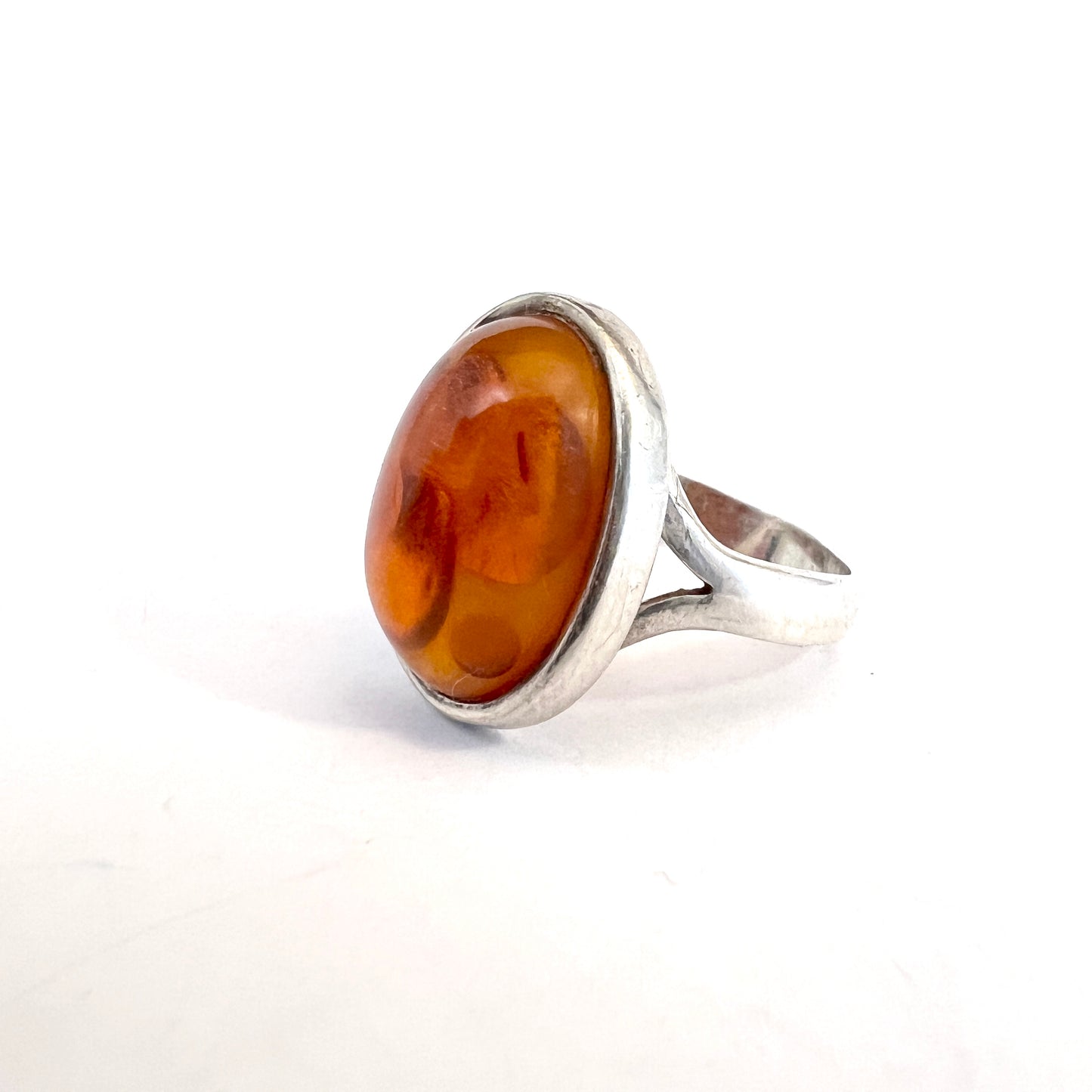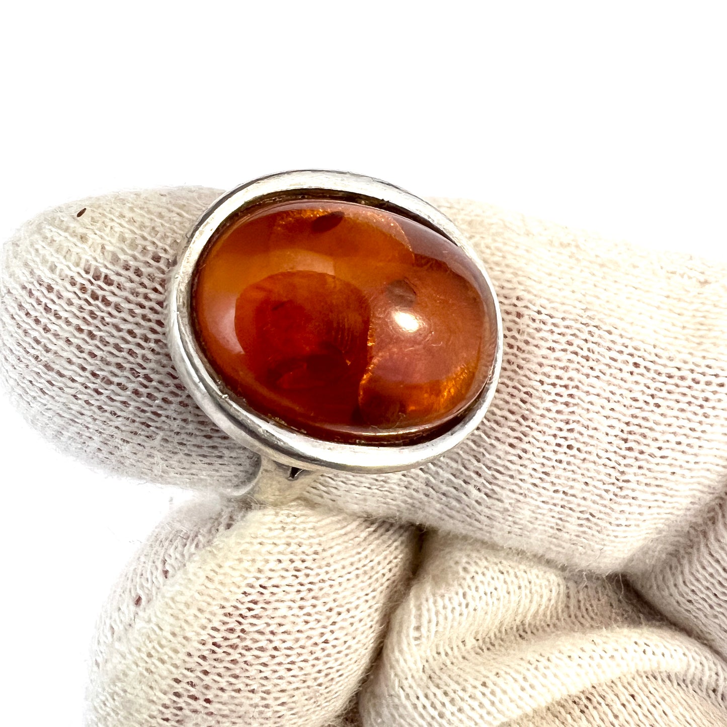 Herman Siersbøl Denmark c 1960s. Solid Silver Amber Ring.