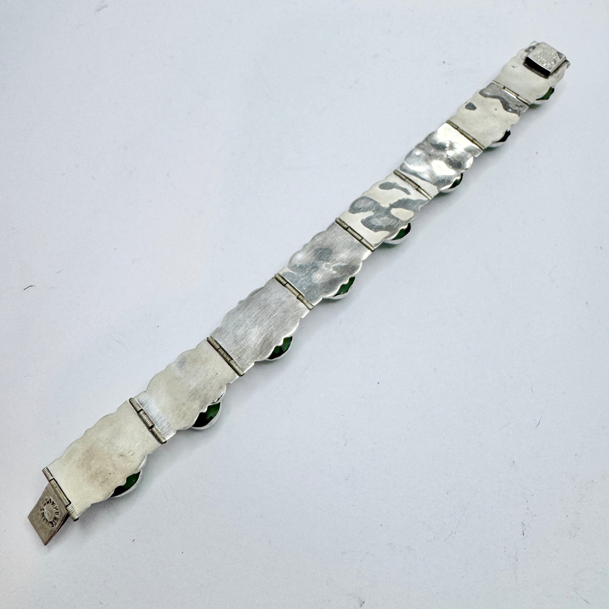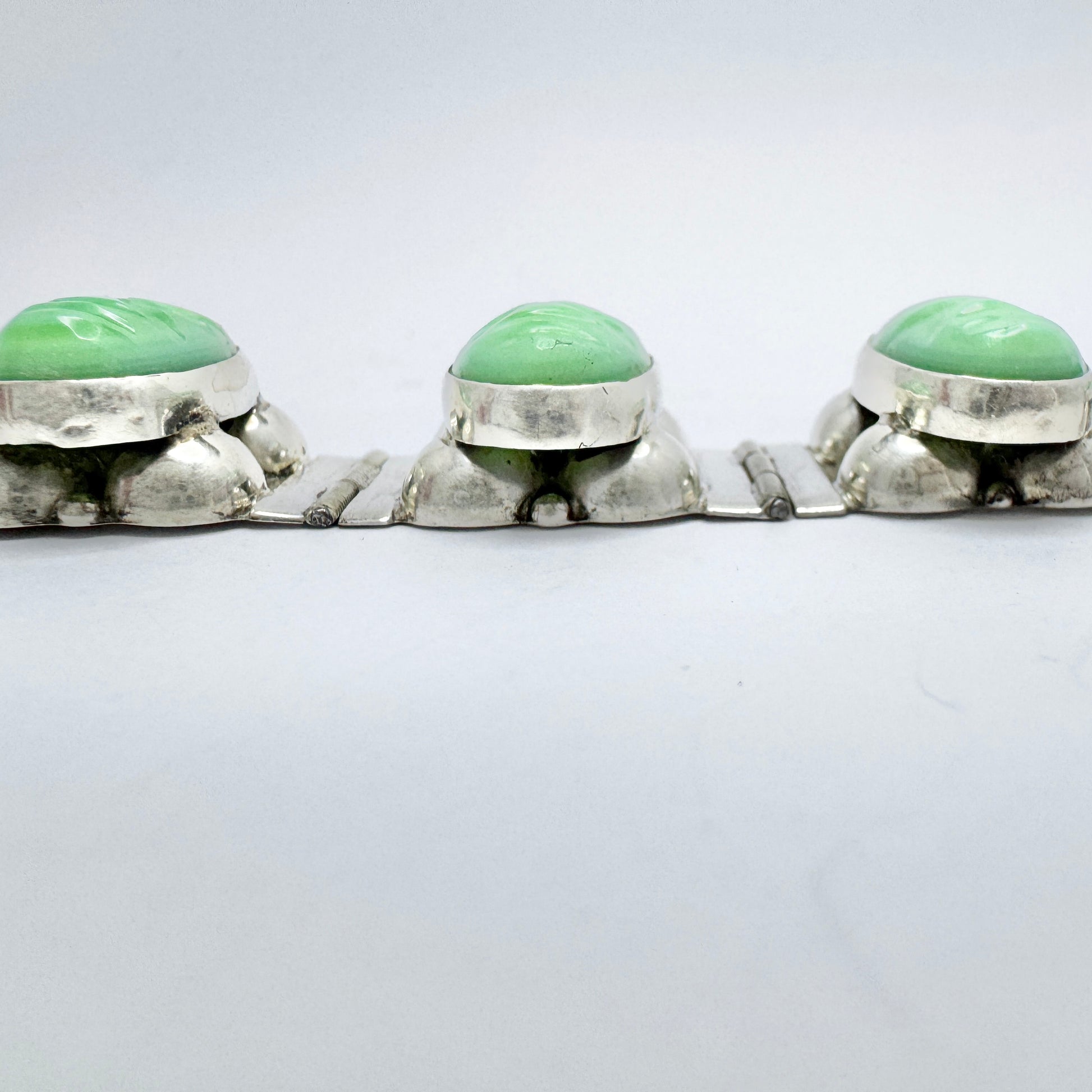 Mexico ca 1950. Vintage Sterling Silver Carved Green Onyx Bracelet.