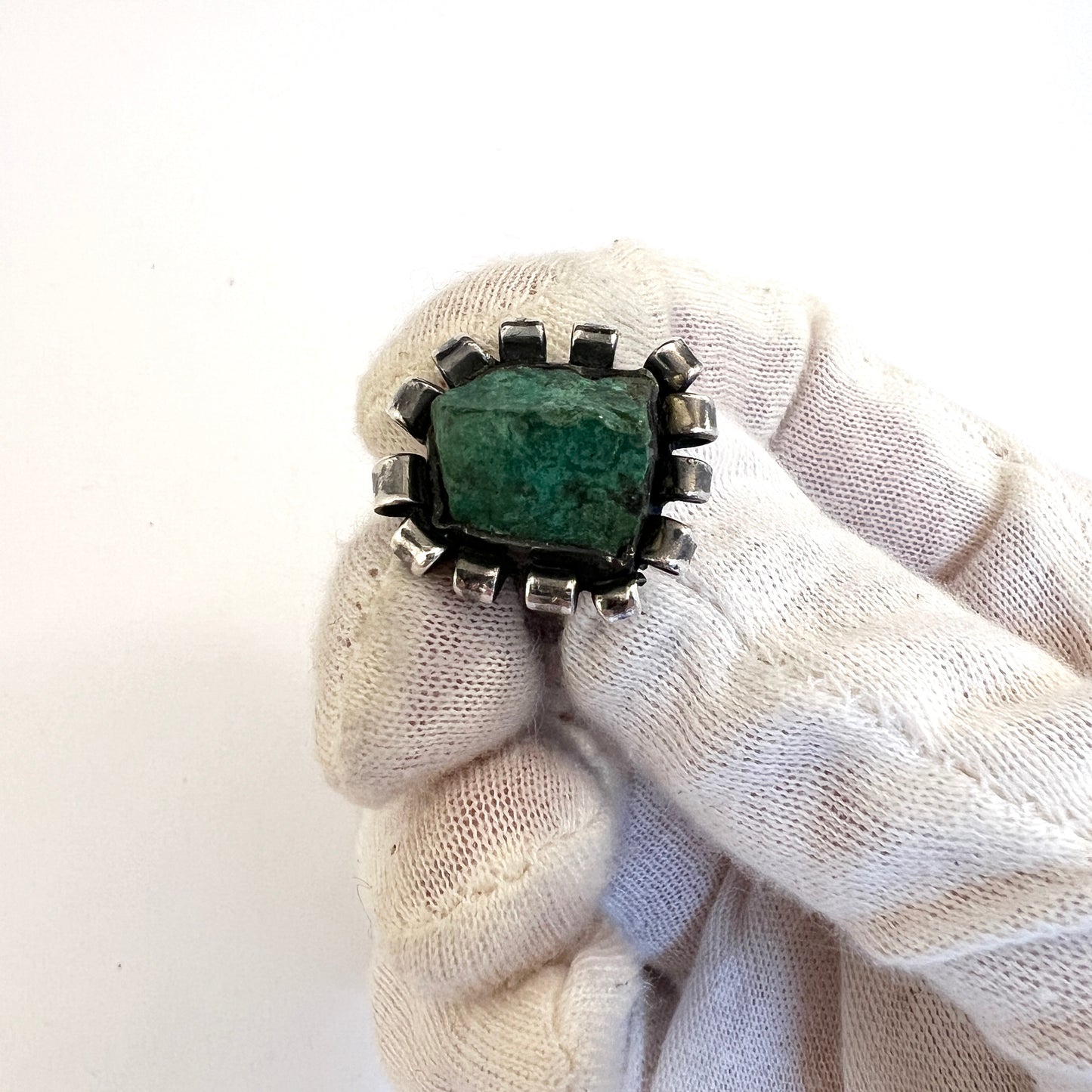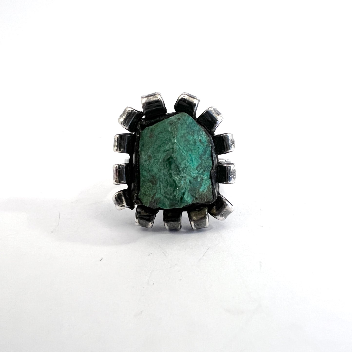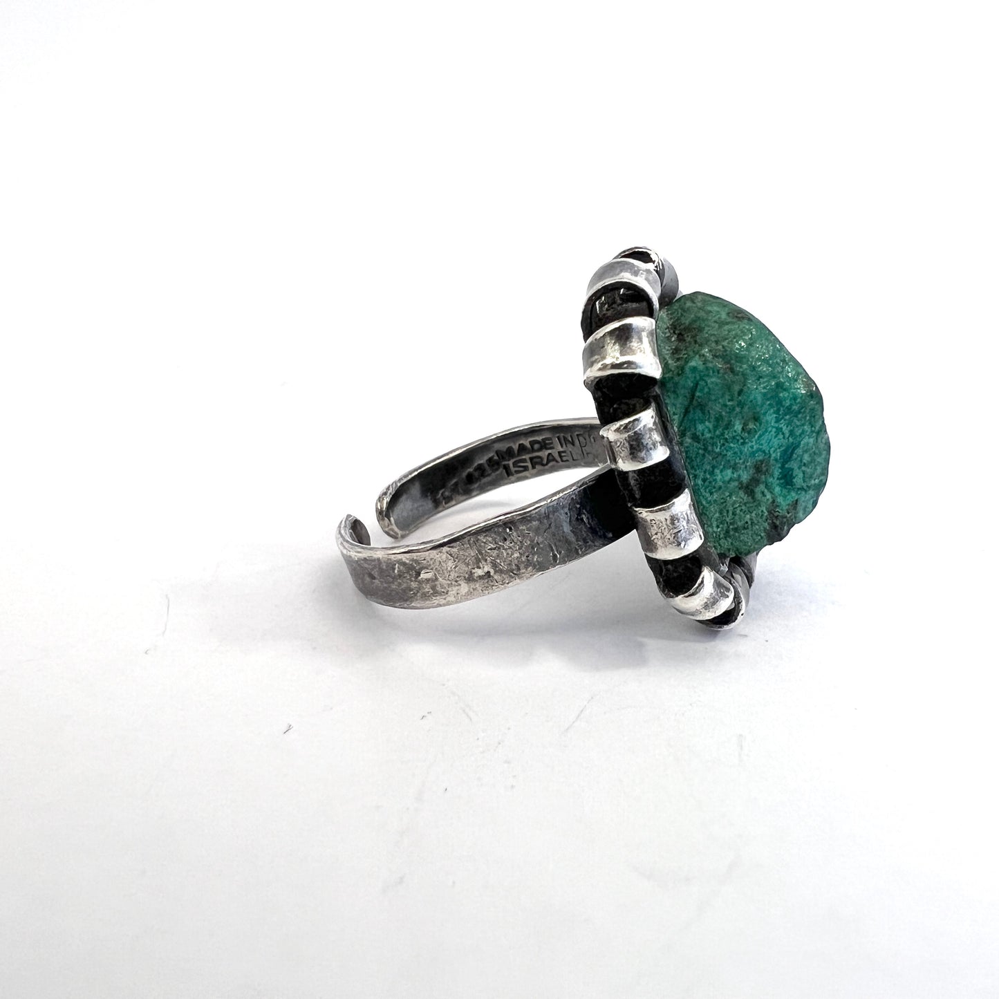 Peter Ein Hod, Israel c 1960 Vintage Modernist Sterling Silver Green Hardstone Ring.