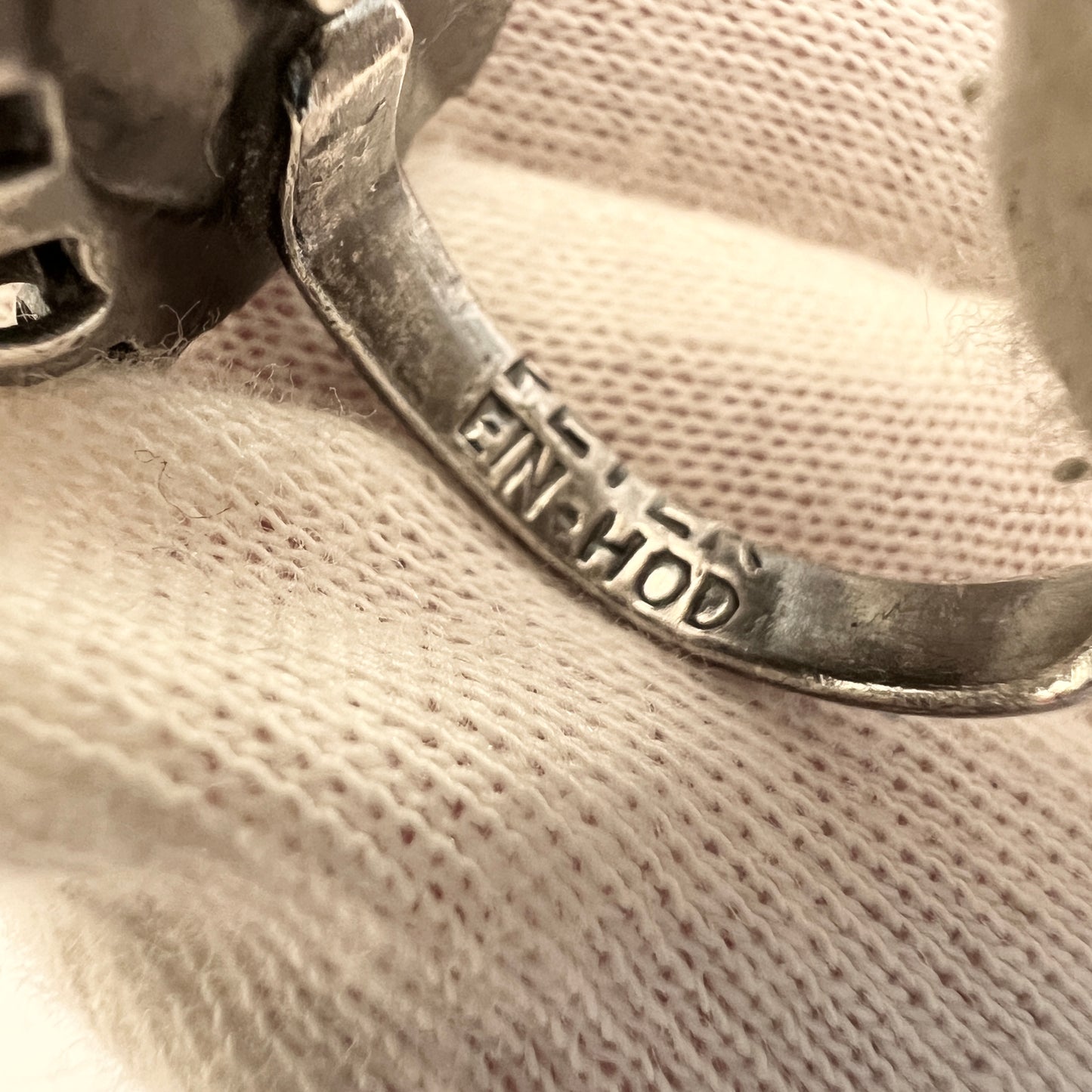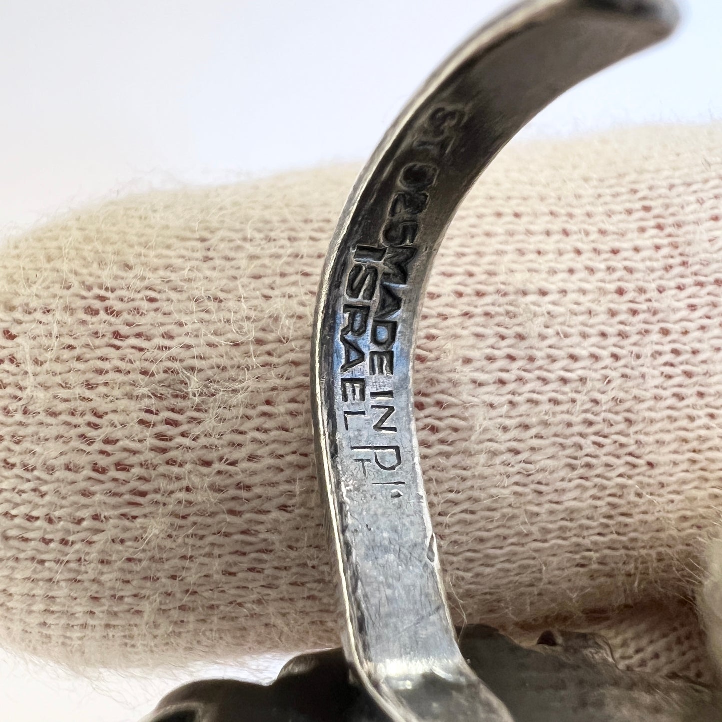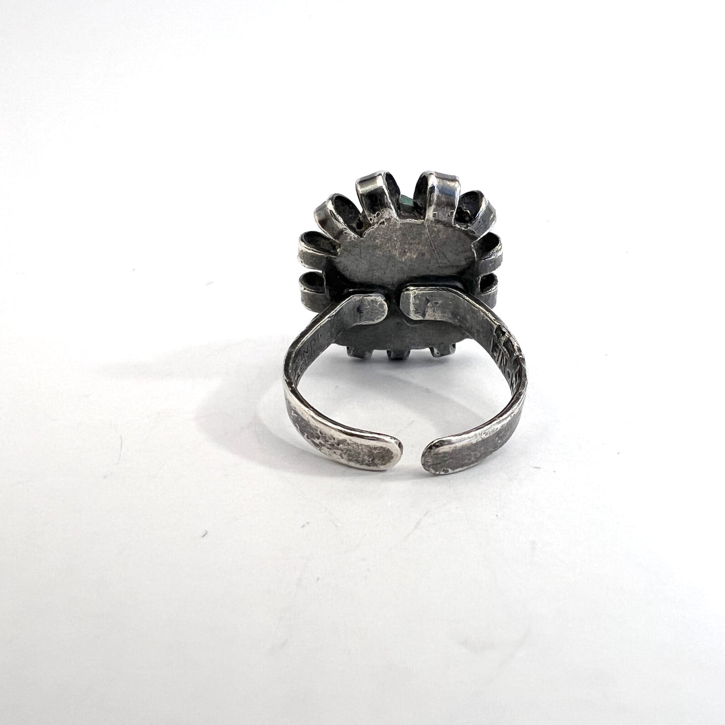 Peter Ein Hod, Israel c 1960 Vintage Modernist Sterling Silver Green Hardstone Ring.