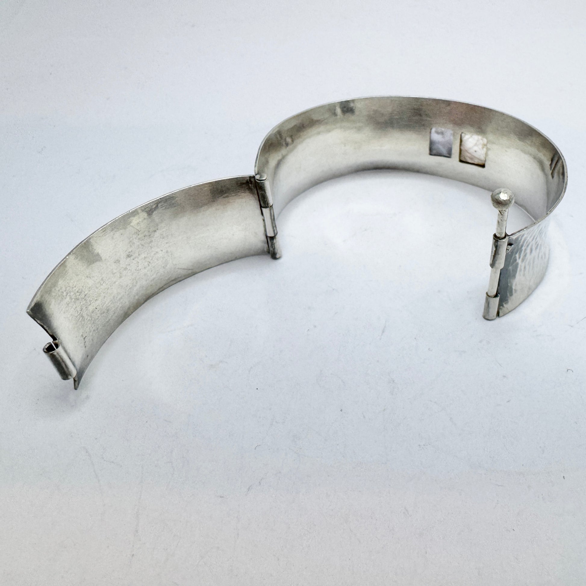 Wonderful and very rare vintage solid silver quartz hinged bracelet. Hallmarked for Pirkan Kulta, Finland year 1963.