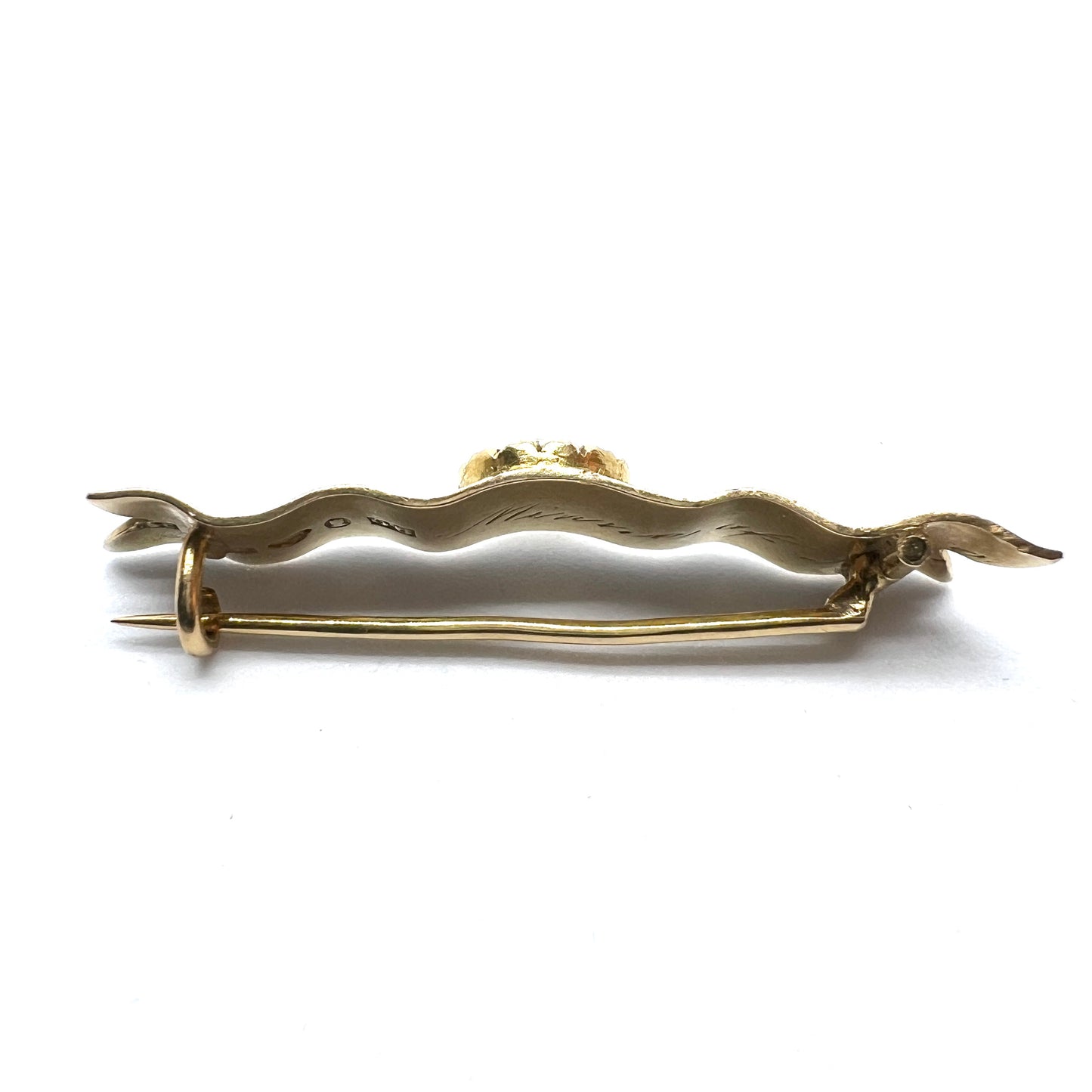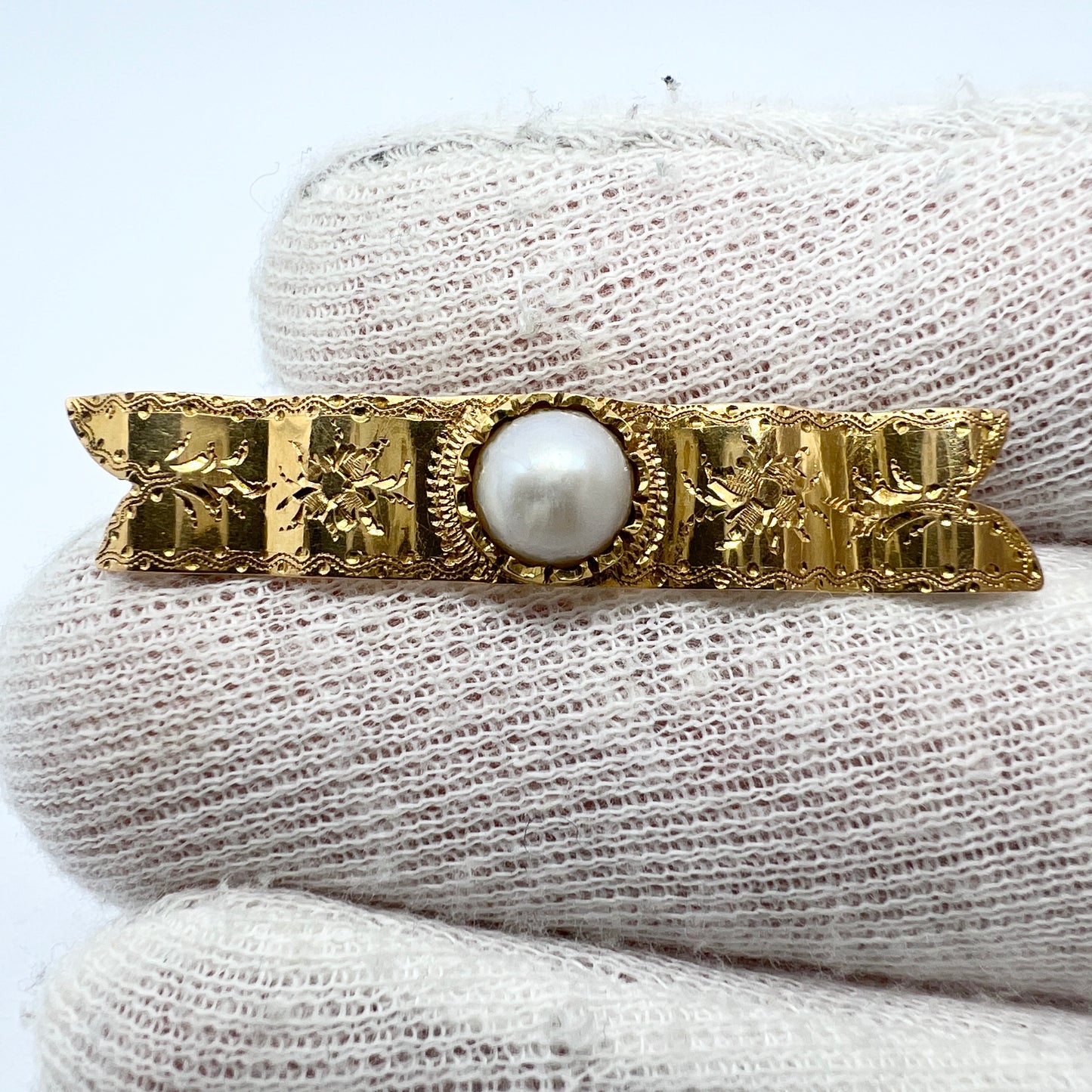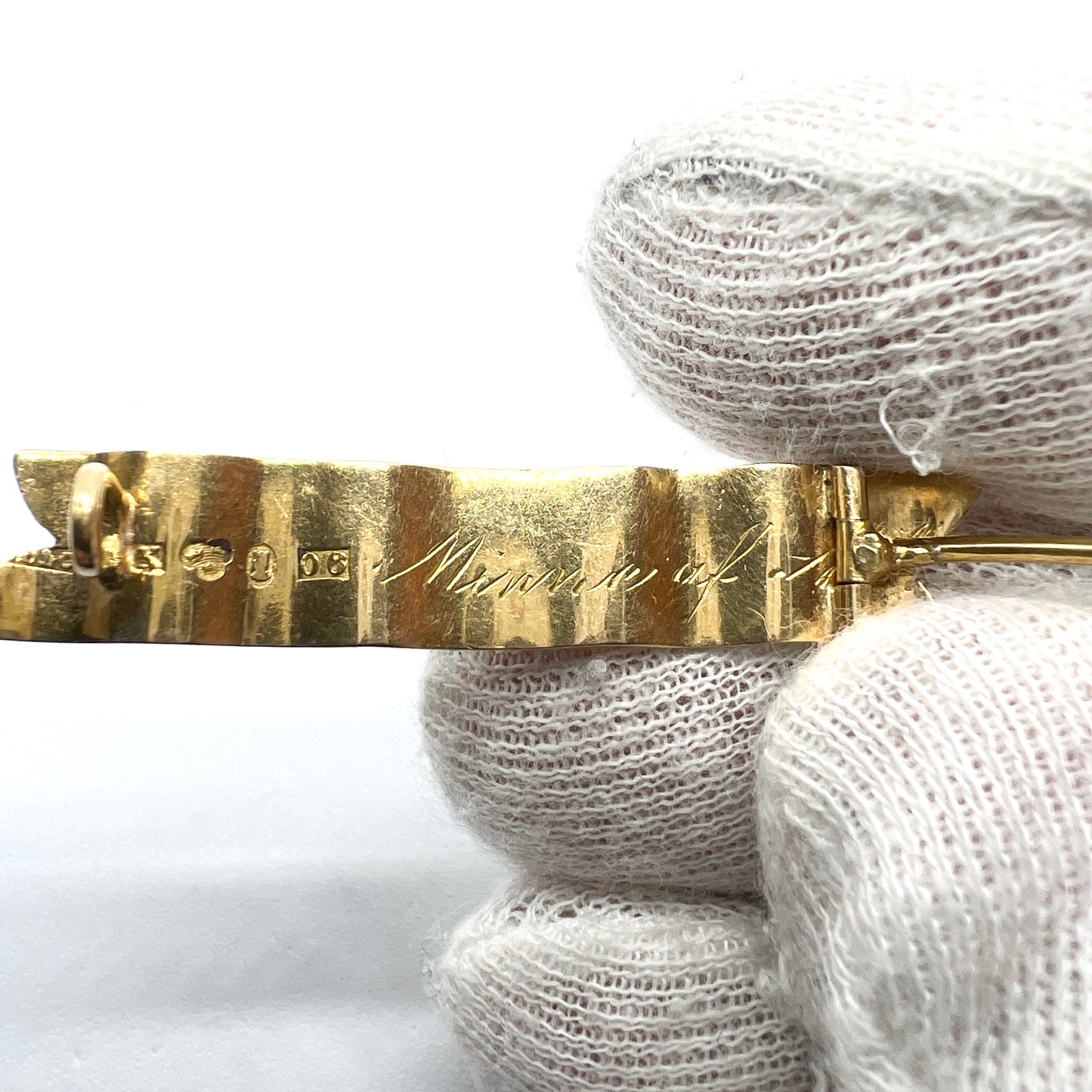 Sweden 1892, Antique Victorian 18k Gold Pearl Memory Pin Brooch.