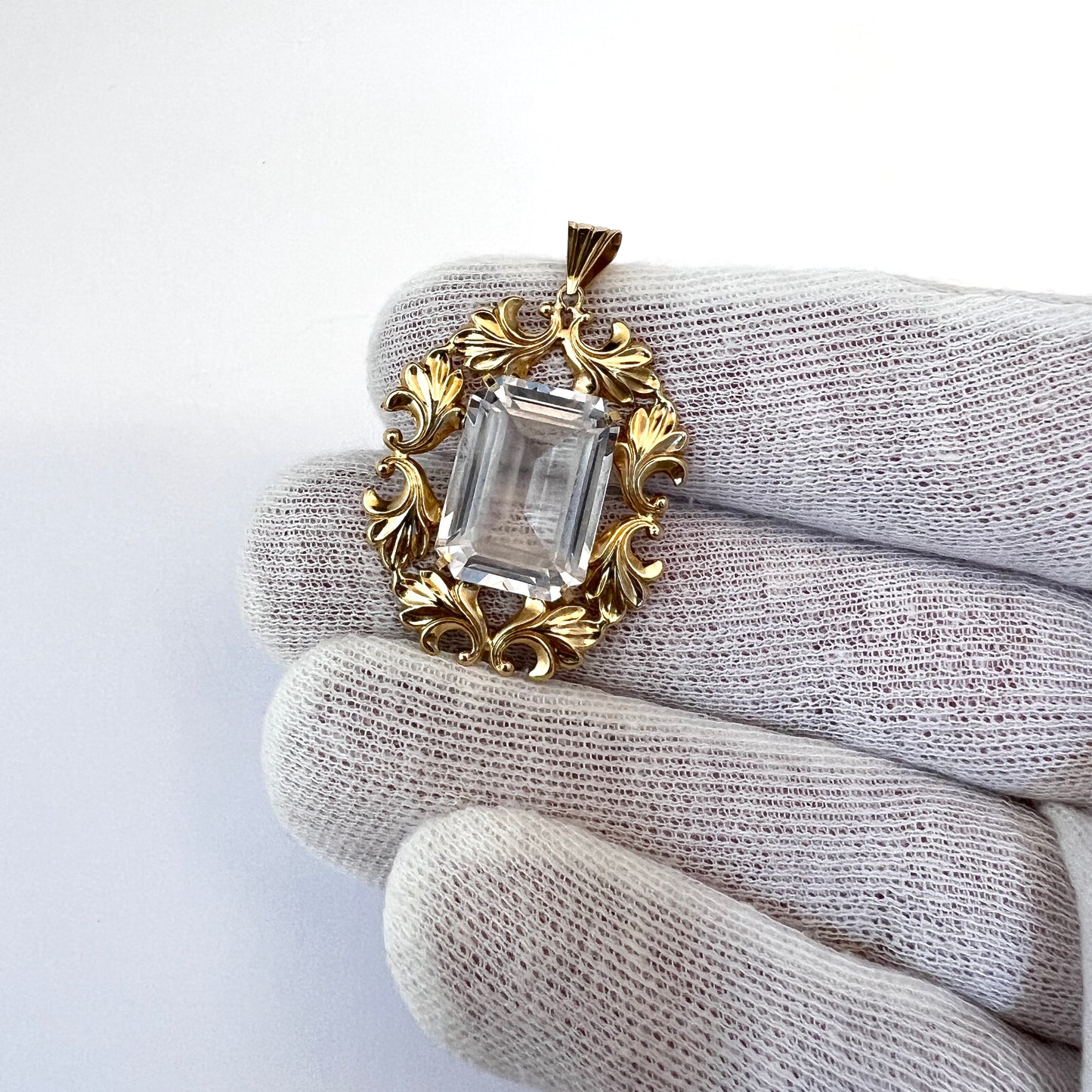 Stockholm, Sweden 1953. Vintage 18k Gold Rock Crystal Pendant.