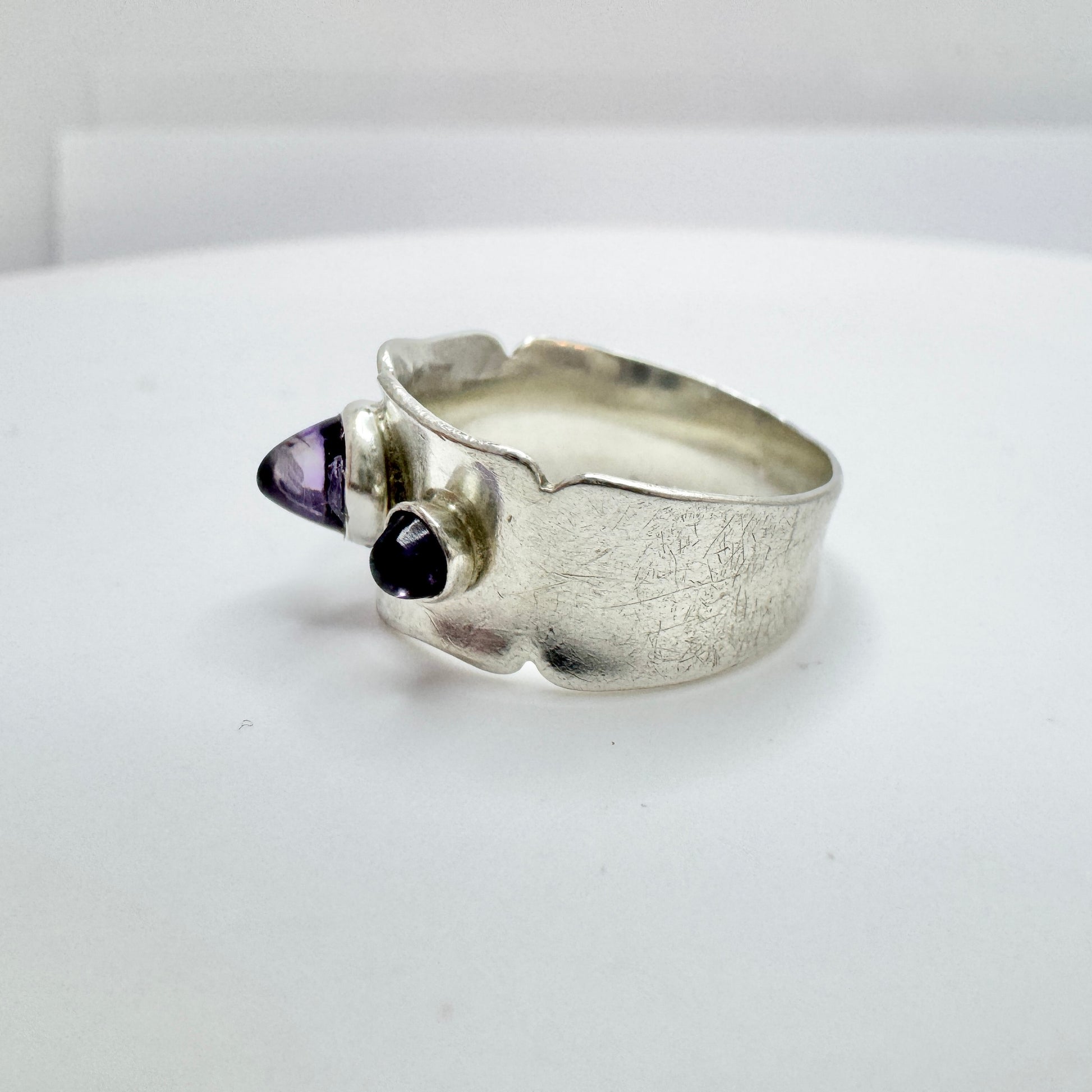 Wonderful vintage sterling silver amethyst ring. Hallmarked for Sweden year 1963. (indistinct makers mark)