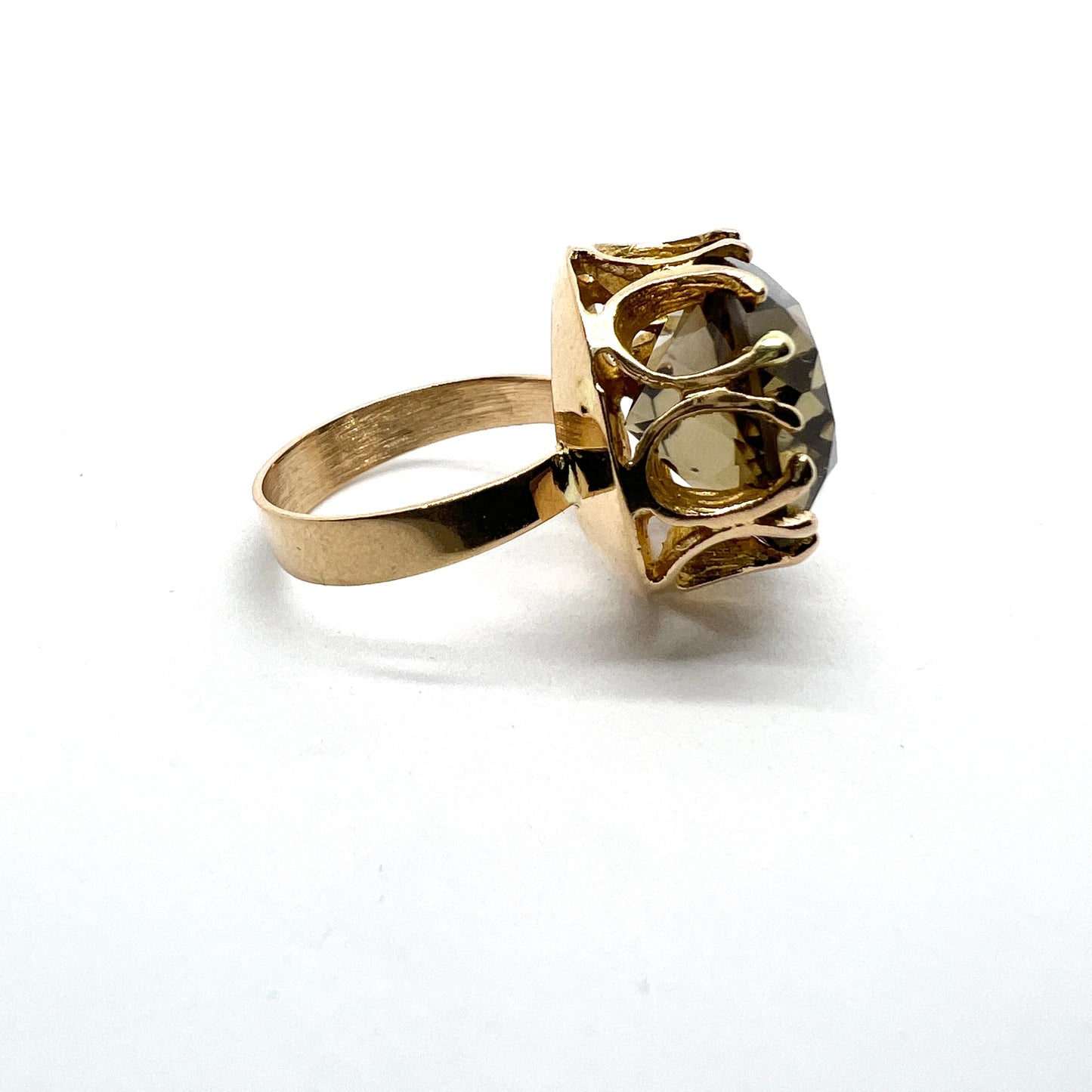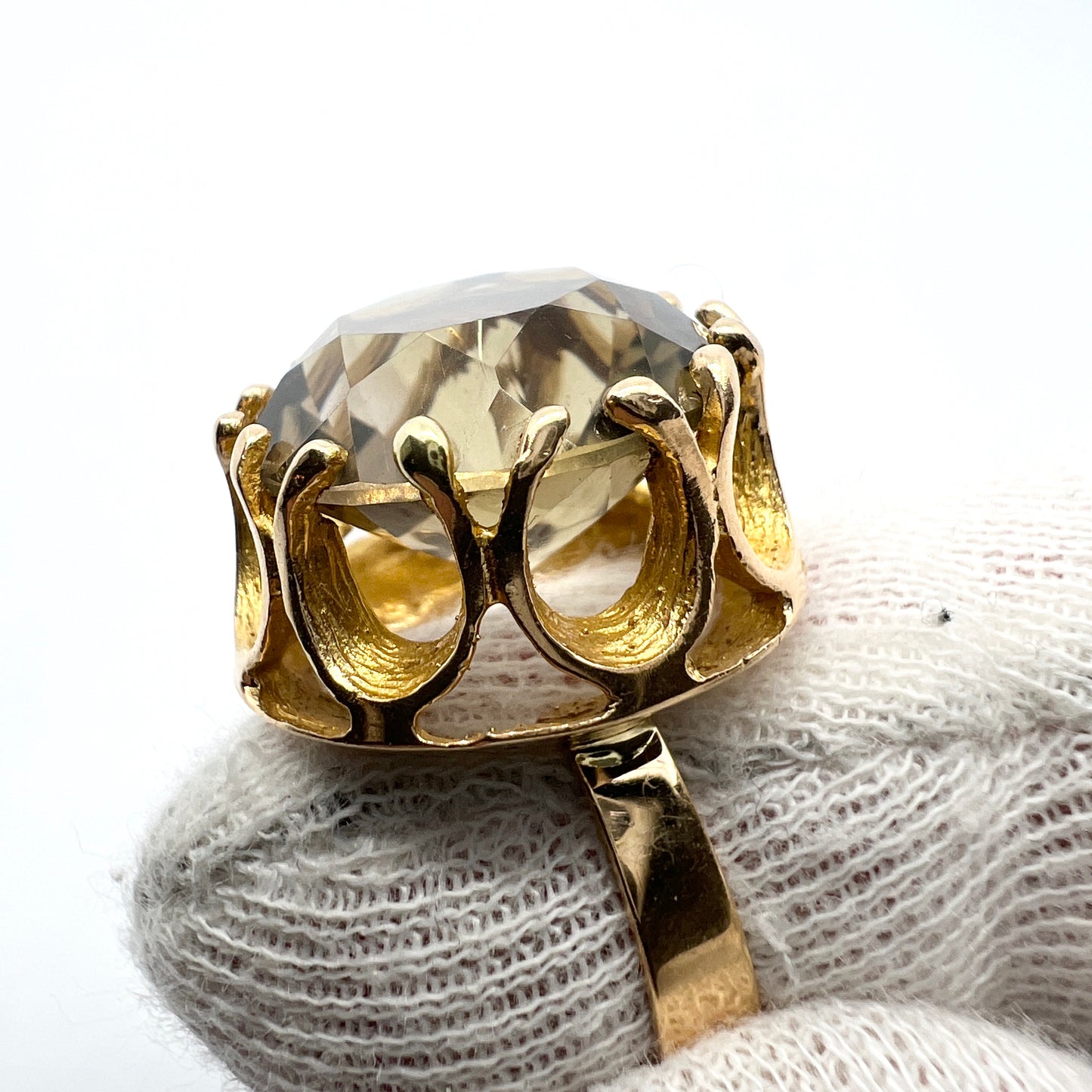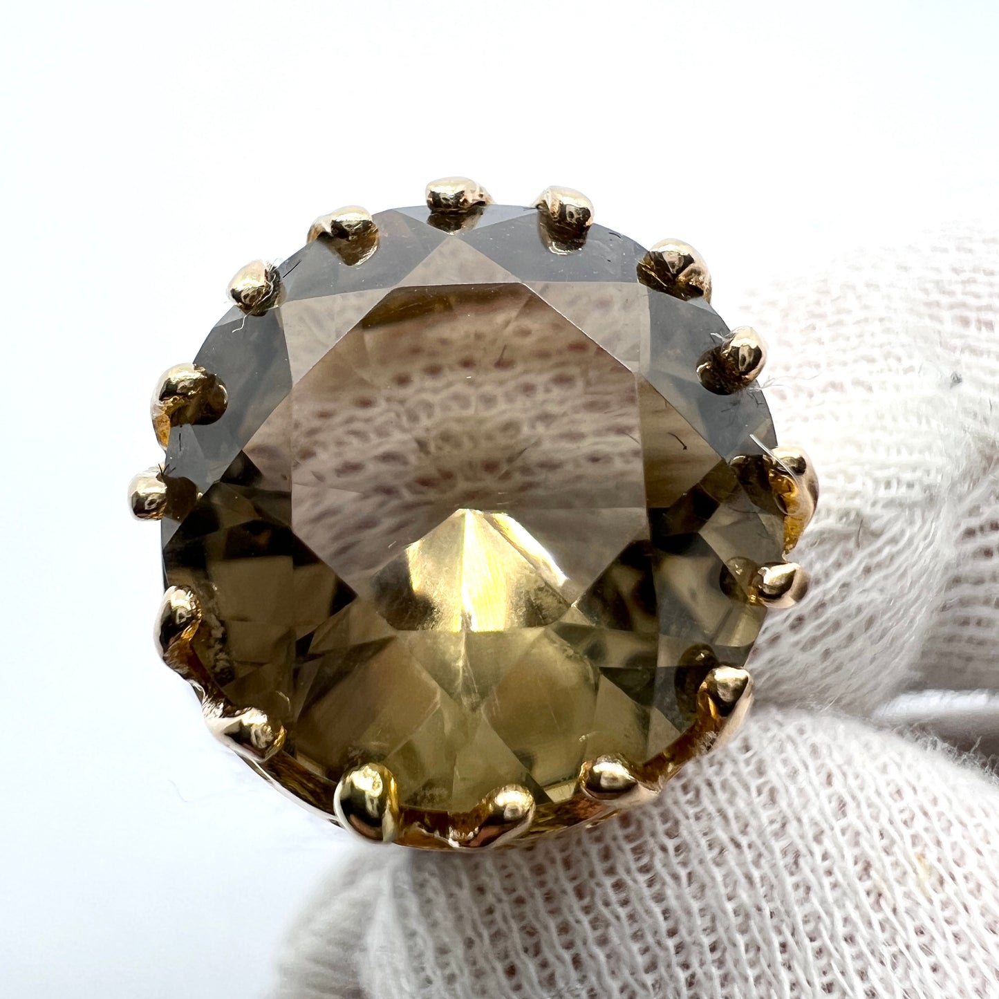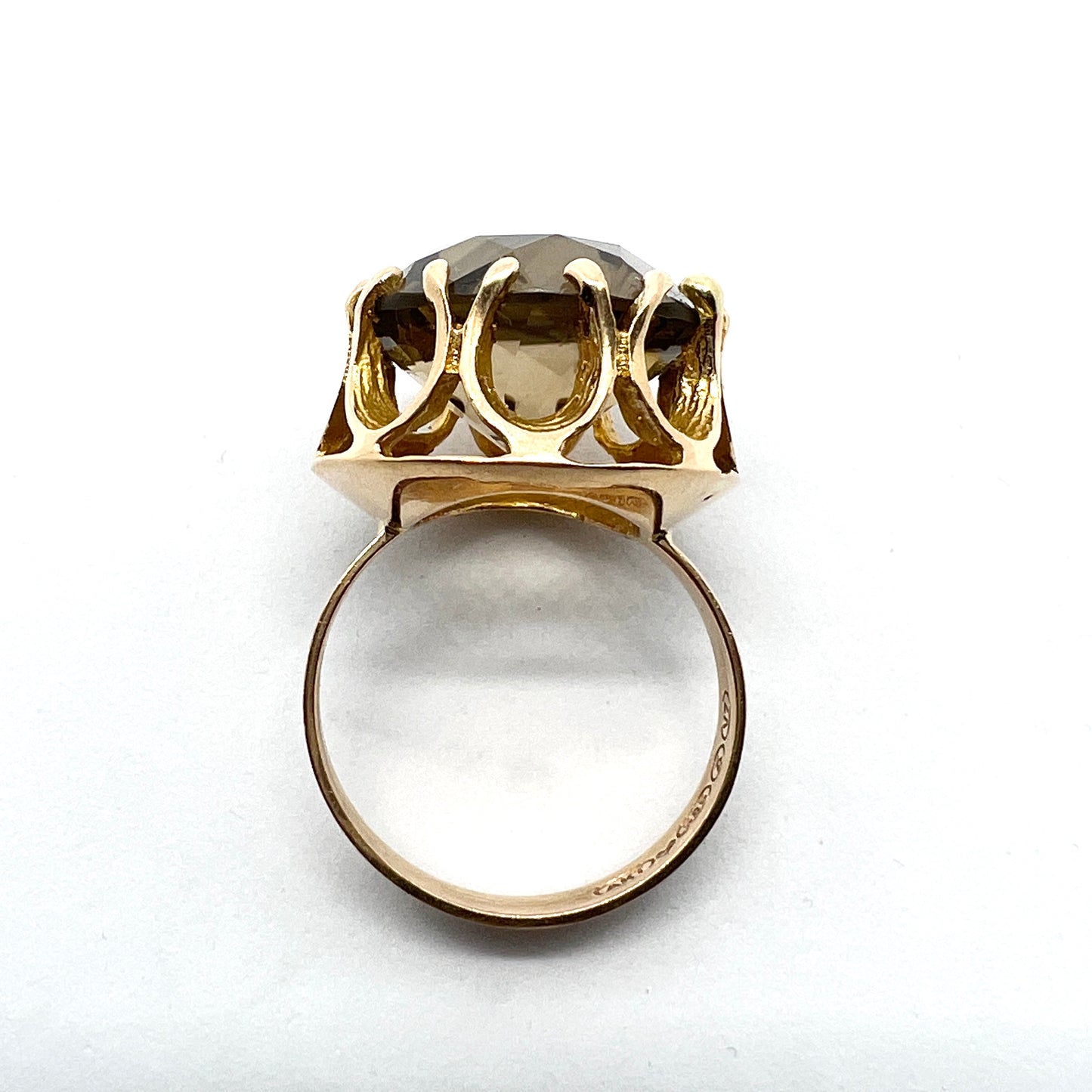 Tammen Koru, Finland 1974 Bold Vintage 14k Gold Smoky Quartz Ring.